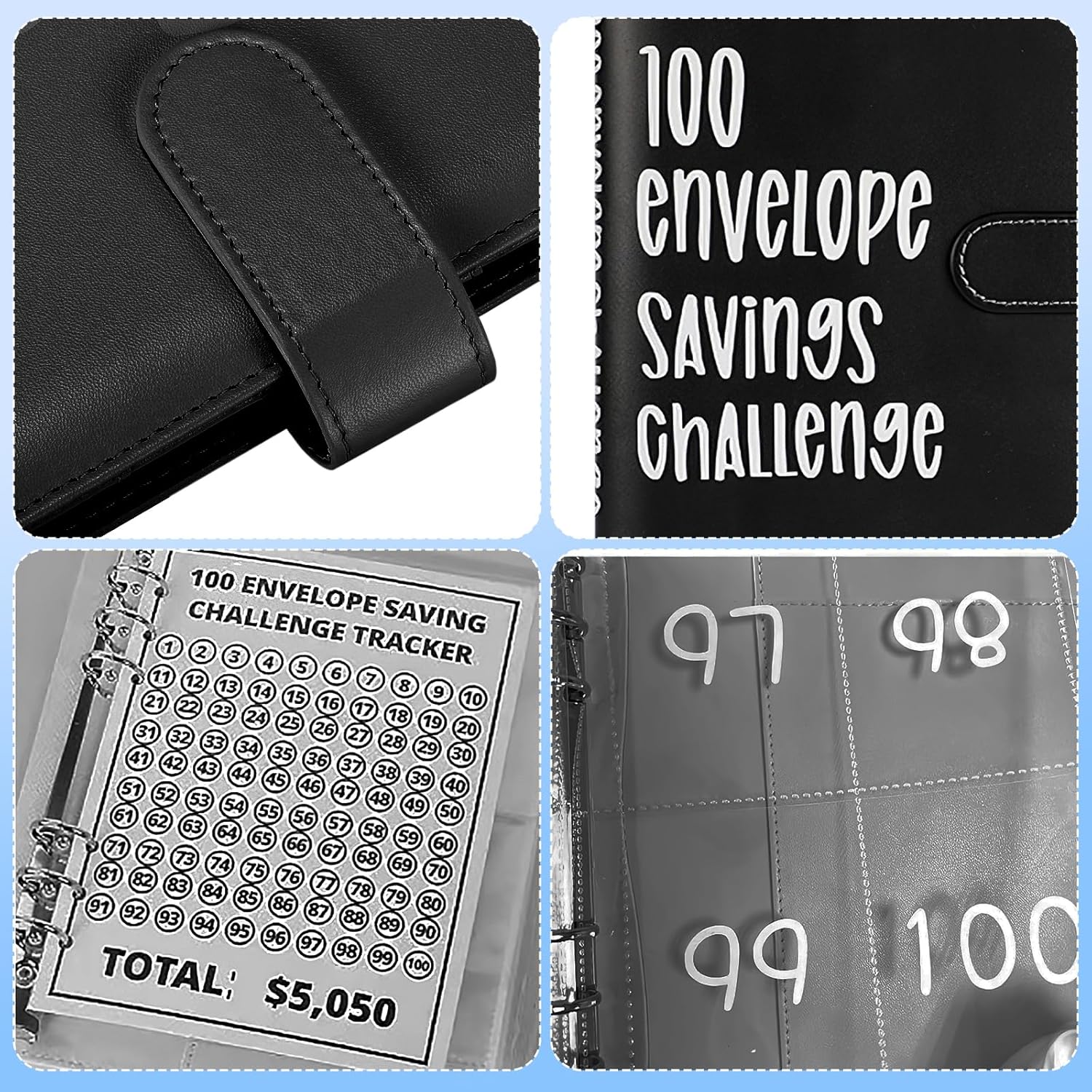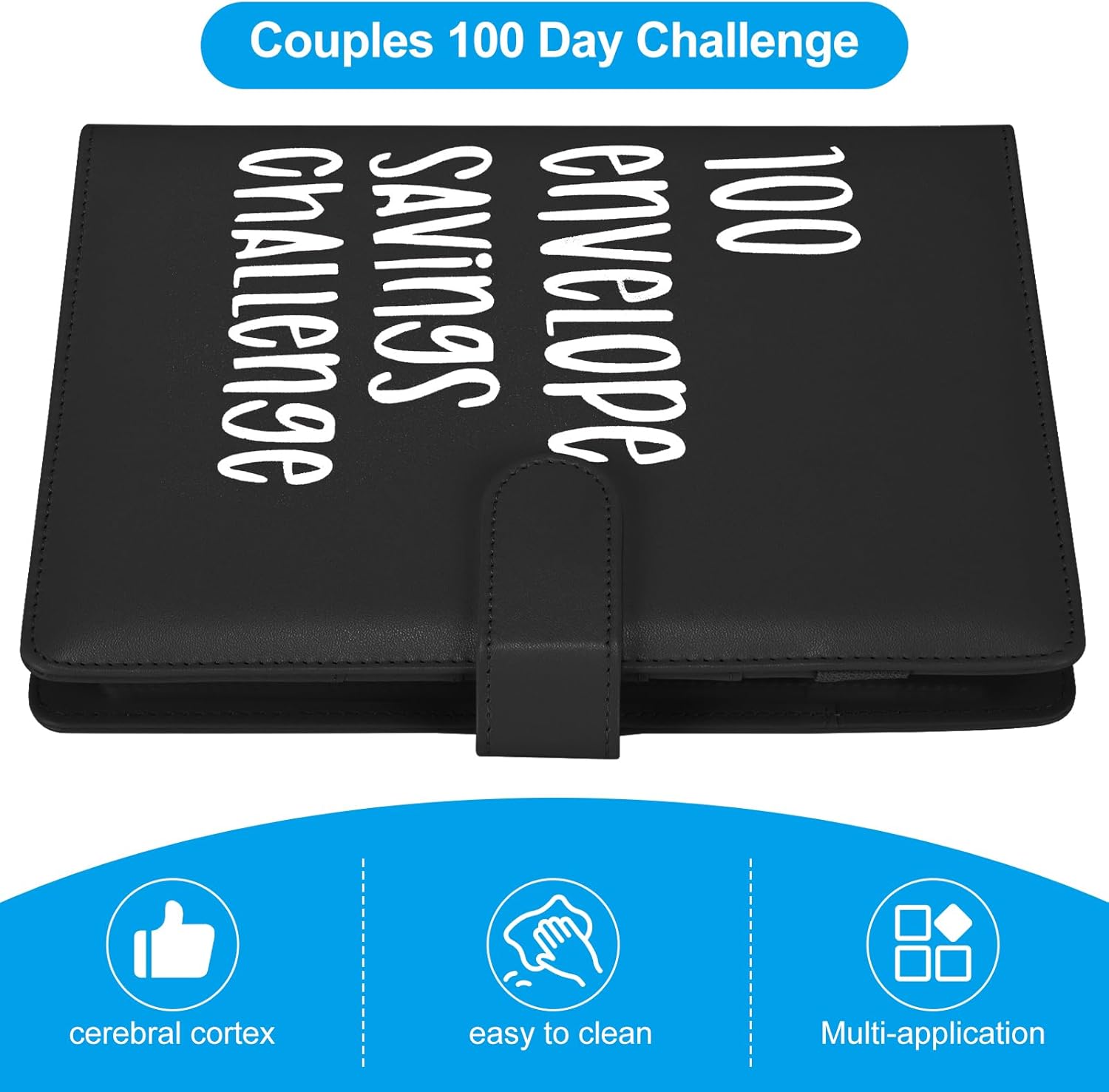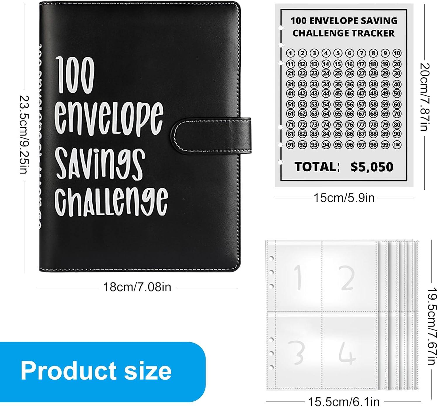 Cartella Sfida Risparmio da 100 Buste, 100 Buste Sfida Risparmio Cartella Risparmio Soldi Denaro A5 Pianificatore Budget per Coppie Uffici Casa Scuola Modo Dvertente per Risparmiare 5000 €