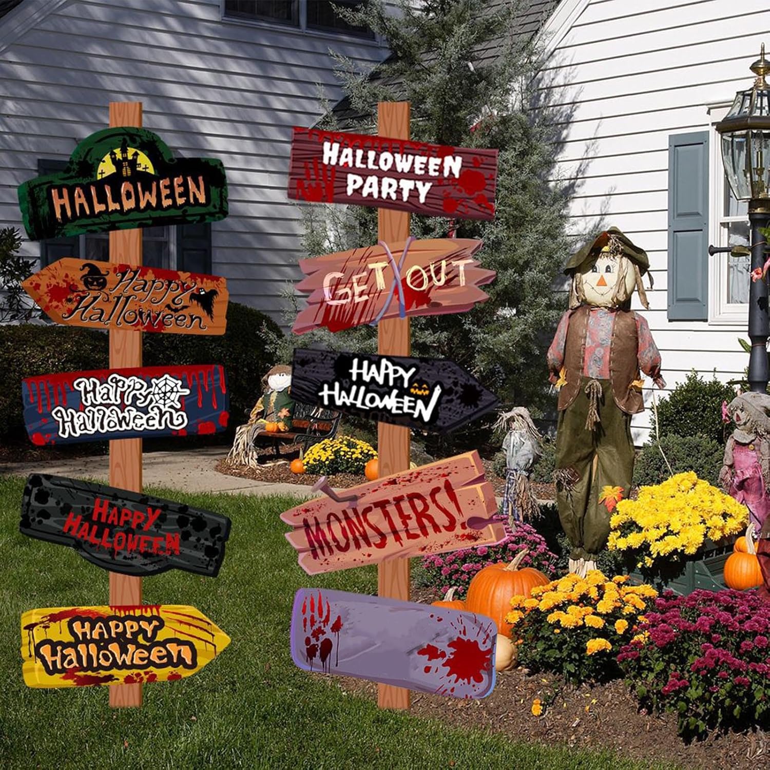 Effetto decorazione a strati: ottieni un aspetto multidimensionale combinando vari temi di Halloween con iconici detti all'ingresso del cortile, progettati per guidare perfettamente i percorsi arricchendo l'estetica della decorazione esterna. Conservazione dei colori vivaci: materiali di alta qualità e una superficie resistente alla luce solare assicurano che queste decorazioni da giardino di Halloween mantengano le loro tonalità vivaci anche sotto un'esposizione prolungata alla luce solare, mentre la resa realistica dei dettagli aggiunge autenticità a ogni pezzo, assicurata da una base in cartone spesso, rendendole ideali per estese decorazioni natalizie all'aperto. Creazione di un'atmosfera inquietante: motivi in stile scuro combinati con texture screpolate. crea un ambiente coinvolgente e trasforma qualsiasi giardino in un ambiente da brivido, rafforzando il tema horror per feste o eventi Ampia applicazione: con segnaletica direzionale e accessori fotografici creativi, questa decorazione di Halloween offre un'opzione di sfondo fotografico che supporta l'usabilità multi-scena e l'arricchimento delle attività interattive promuove celebrazioni stagionali indimenticabili