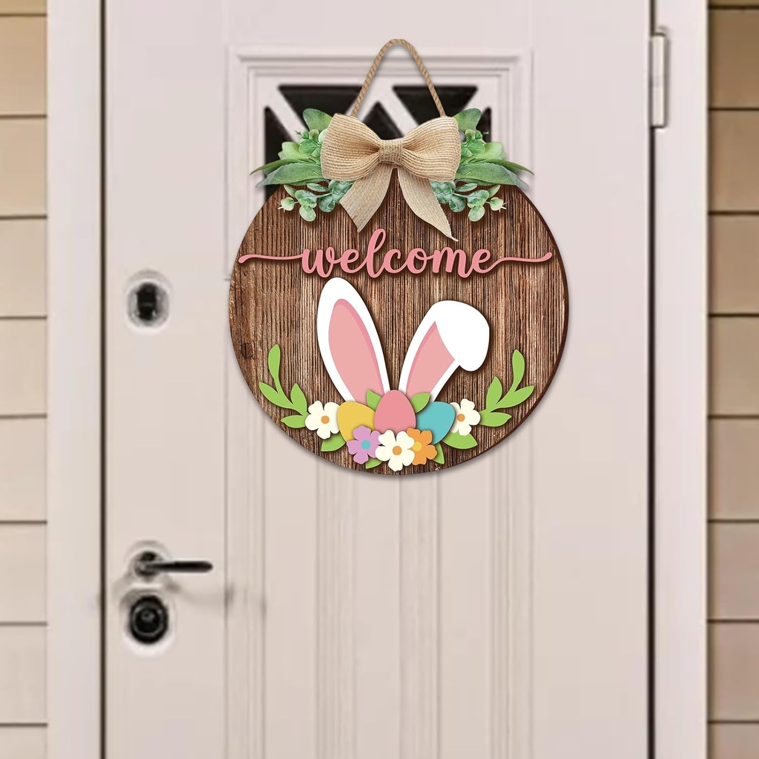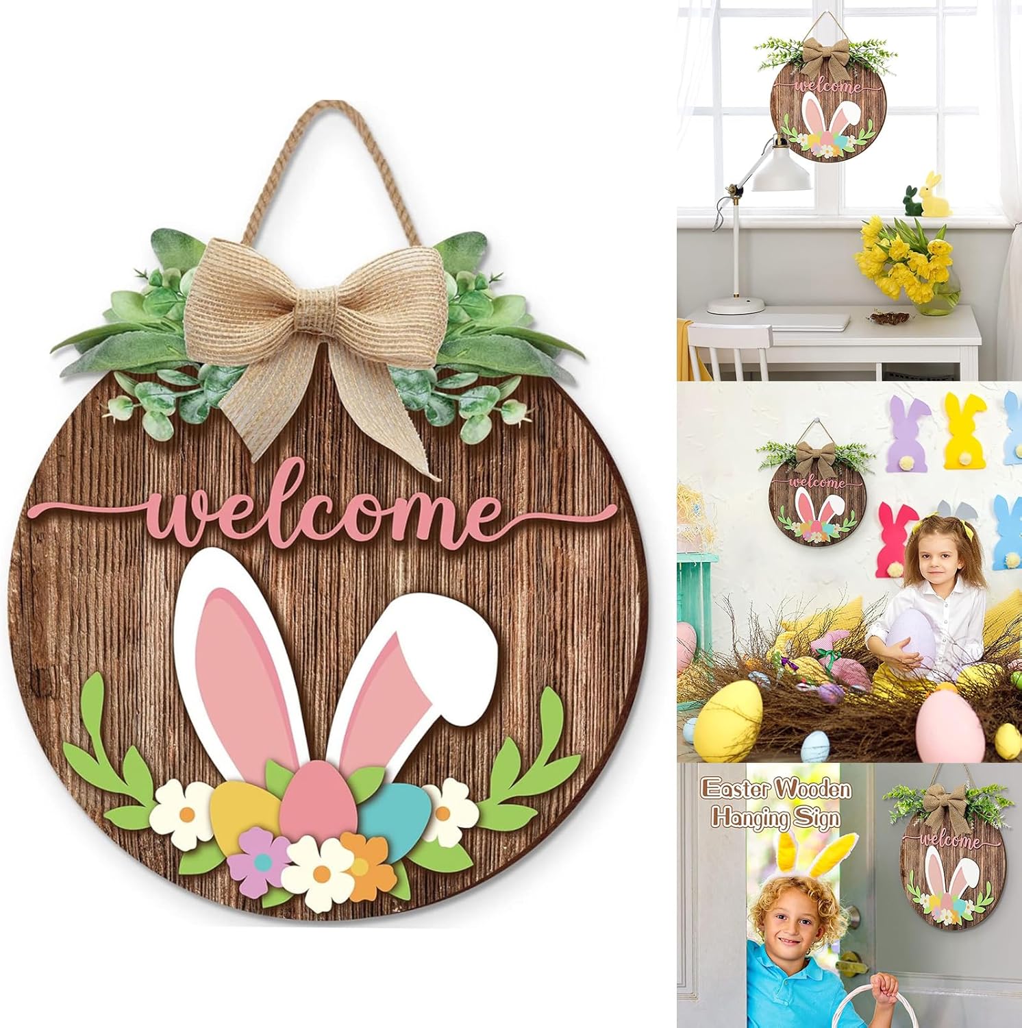 Realizzato in legno, questo cartello per porta di benvenuto del festival di primavera mostra squisita fattura, decorazione unica da appendere alla porta tra la decorazione della stanza Molto adatto per casalinghe e genitori, migliorare le loro riunioni domestiche, nonché appassionati che cercano un'elegante decorazione per la casa Migliora la decorazione della tua festa con il nostro cartello da appendere alla porta in legno con orecchie di coniglio, progettato per aggiungere un tocco di festa a qualsiasi spazio Ideale per decorare la porta d'ingresso, il soggiorno o la camera dei bambini, questo cartello di benvenuto da appendere alla porta in legno aggiunge un tocco divertente a celebrazioni di festival, matrimoni o feste di compleanno Sia che venga utilizzata come forniture fotografiche per feste o come appendiabiti, questa decorazione da parete attira l'attenzione