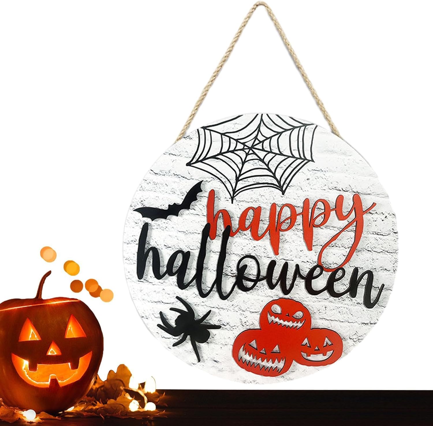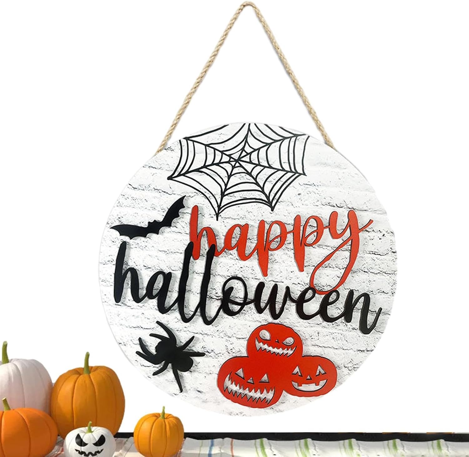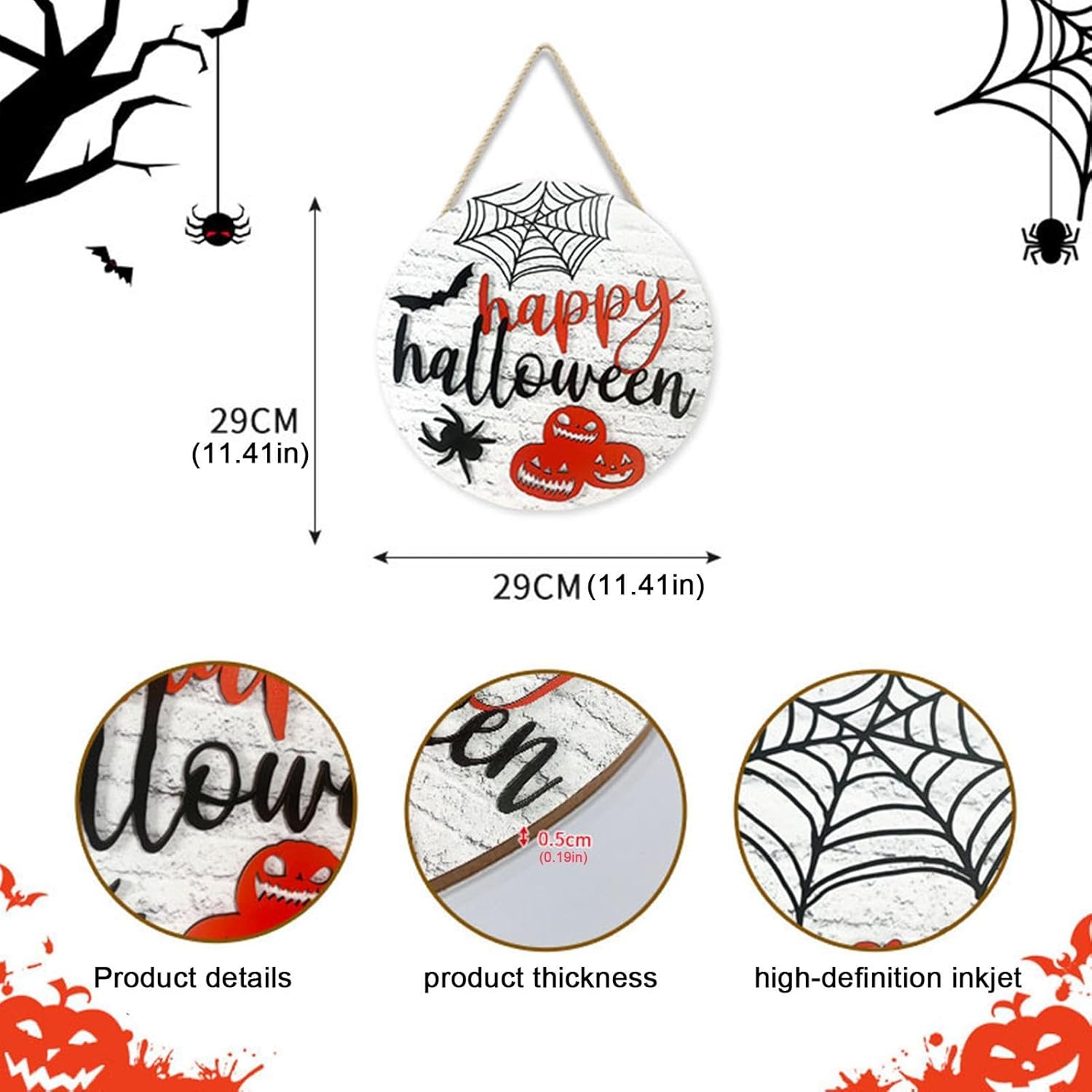Saluti spettrali: saluta i tuoi dolcetti o scherzetti con questo cartello per porta a tema ragno e zucca di Halloween con la scritta "Buon Halloween". Senti tutta la gioia e l'orrore delle feste e porta l'atmosfera di Halloween alla tua porta di casa. Ampia applicazione: con la nostra targa per porta di Halloween puoi aggiungere un tocco di festa a qualsiasi stanza: sulla porta, sul muro, sulla finestra, sull'albero o altrove. La sua versatilità e il suo fascino sono perfetti per qualsiasi festa di Halloween. Buona resistenza: realizzata con un materiale robusto e durevole, questa targa per porta di Halloween offre un'opzione sicura e affidabile per la decorazione della tua porta. La sua struttura forte e robusta assicura che non si rompa facilmente, rendendolo una buona scelta per qualsiasi celebrazione di Halloween. Realizzato con cura: questo cartello per porta di Halloween presenta una squisita fattura che fornisce una superficie liscia e fantastica senza sbavature. La sua durata e resistenza alla deformazione lo rendono una scelta che vale il tuo miglior aggiornamento di Halloween. Regalo meraviglioso: migliora le tue decorazioni natalizie con questo cartello per porta dal design unico, ottimo per diffondere le benedizioni di Halloween e l'amore ai tuoi amici, familiari e persone care. È ideale per i compleanni e un ottimo regalo per accogliere gli ospiti e creare un'atmosfera festosa per le vacanze