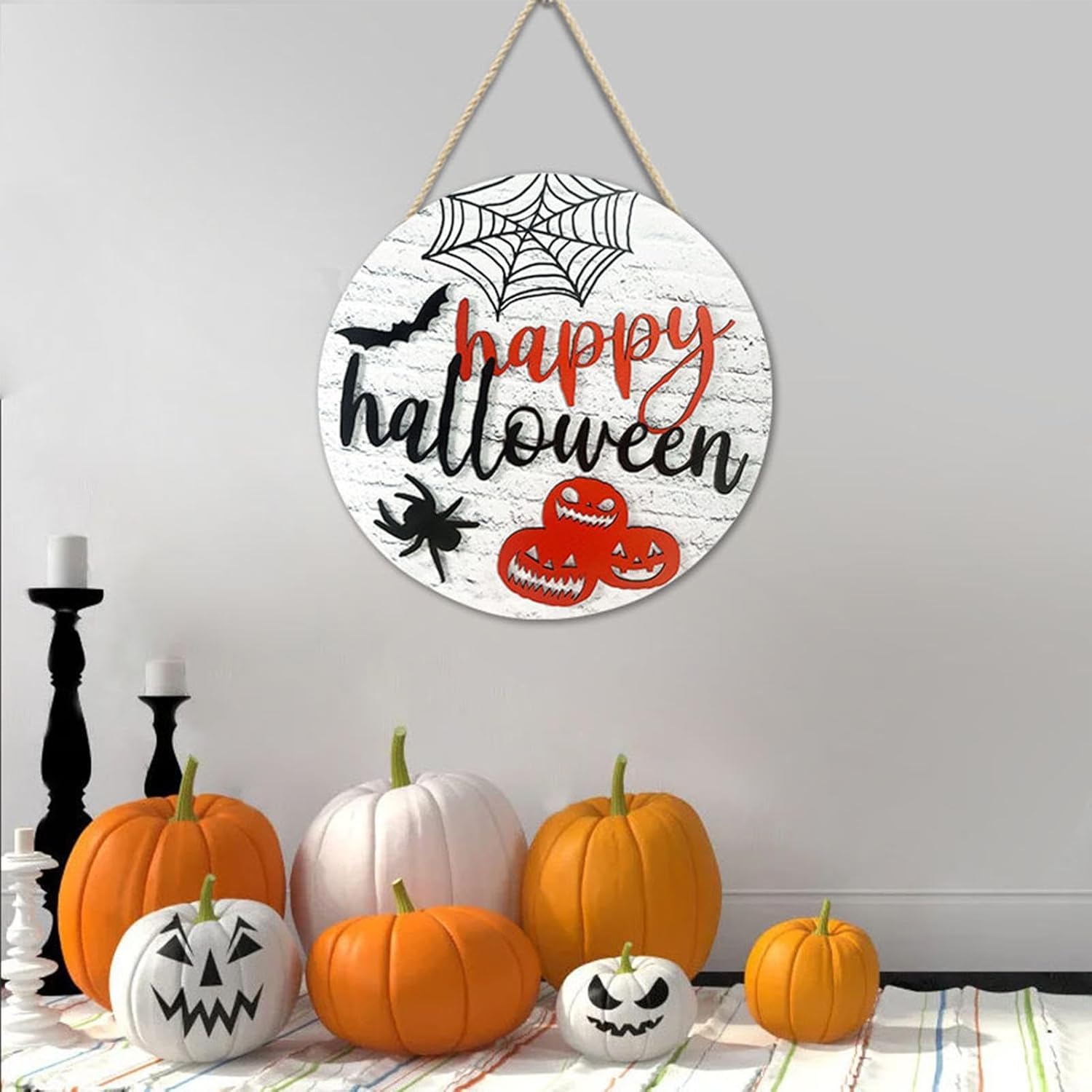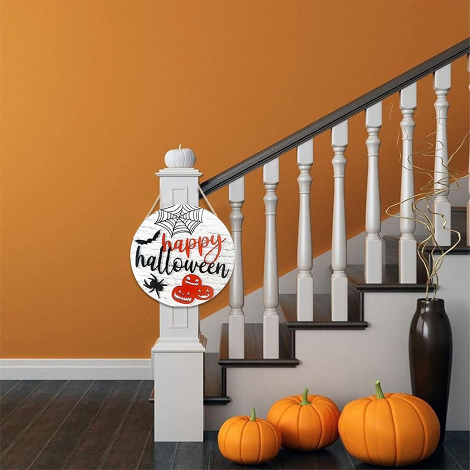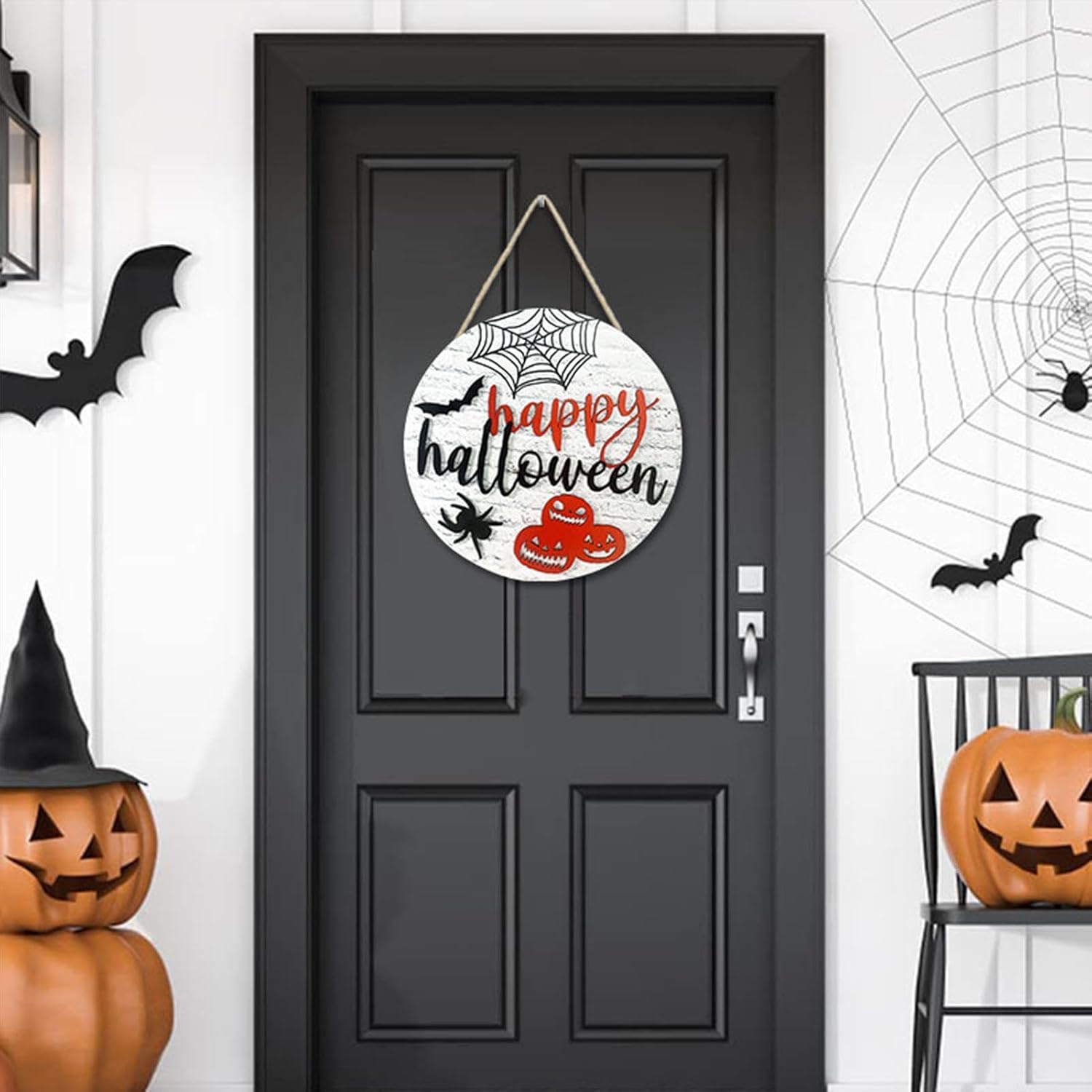 Saluti spettrali: saluta i tuoi dolcetti o scherzetti con questo cartello per porta a tema ragno e zucca di Halloween con la scritta "Buon Halloween". Senti tutta la gioia e l'orrore delle feste e porta l'atmosfera di Halloween alla tua porta di casa. Ampia applicazione: con la nostra targa per porta di Halloween puoi aggiungere un tocco di festa a qualsiasi stanza: sulla porta, sul muro, sulla finestra, sull'albero o altrove. La sua versatilità e il suo fascino sono perfetti per qualsiasi festa di Halloween. Buona resistenza: realizzata con un materiale robusto e durevole, questa targa per porta di Halloween offre un'opzione sicura e affidabile per la decorazione della tua porta. La sua struttura forte e robusta assicura che non si rompa facilmente, rendendolo una buona scelta per qualsiasi celebrazione di Halloween. Realizzato con cura: questo cartello per porta di Halloween presenta una squisita fattura che fornisce una superficie liscia e fantastica senza sbavature. La sua durata e resistenza alla deformazione lo rendono una scelta che vale il tuo miglior aggiornamento di Halloween. Regalo meraviglioso: migliora le tue decorazioni natalizie con questo cartello per porta dal design unico, ottimo per diffondere le benedizioni di Halloween e l'amore ai tuoi amici, familiari e persone care. È ideale per i compleanni e un ottimo regalo per accogliere gli ospiti e creare un'atmosfera festosa per le vacanze