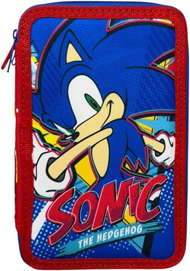 L’astuccio multiscomparto di Sonic è il compagno ideale per tutti i fan del celebre riccio blu più veloce del mondo. Pratico, dinamico e ricco di dettagli energici, questo astuccio unisce la funzionalità a un design grintoso ispirato all’universo di Sonic the Hedgehog, perfetto per affrontare ogni giornata scolastica con sprint e determinazione. Realizzato con materiali resistenti e di alta qualità, è progettato per durare nel tempo e accompagnare i bambini per tutto l’anno scolastico. L’astuccio è suddiviso in tre pratici scomparti, ciascuno dotato di chiusura a zip robusta, ideali per mantenere in ordine penne, matite e altri accessori. Nel primo scomparto sono inclusi gli strumenti essenziali per la scuola: una matita, una penna rossa, una penna blu, una gomma, un temperamatite, un righello, un paio di forbici in plastica (sicure per i più piccoli) e una tabella oraria settimanale per organizzare le lezioni in modo efficiente. Il secondo scomparto contiene 18 pastelli colorati Norex, ciascuno con uno spazio dedicato per scrivere il nome, perfetti per disegni creativi e pieni di dettagli. Il terzo scomparto ospita 18 pennarelli colorati Giotto Turbo Color, ideali per colorare con energia e vivacità. La copertina è decorata con una grafica accattivante che ritrae Sonic in primo piano in una posa da corsa, con dettagli nei toni del blu elettrico, giallo e rosso che richiamano i personaggi di Knuckles e Tails insieme ad Ami sul lato. Una grafica pensata per chi ama l’azione, l’avventura e lo stile iconico del protagonista SEGA. Con dimensioni di 20 x 13 x 6 cm, questo astuccio è compatto e facile da trasportare, ma abbastanza capiente da contenere tutto il necessario per la scuola. L’accessorio perfetto per vivere ogni giornata tra compiti, creatività e velocità… proprio come Sonic!