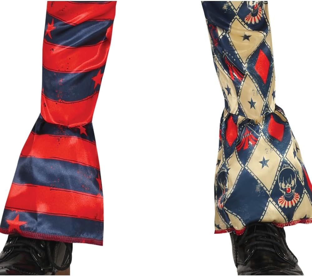 Il travestimento da Arlecchino Diamante ispirato alla prima versione di Harley Quinn dei fumetti è un costume colorato e originale pensato per bambine e ragazzine che vogliono un look divertente e dal carattere deciso. Realizzato interamente in poliestere si compone di camicia, pantaloni, colletto e copricapo, offrendo un outfit completo e pronto per feste in maschera, Carnevale o Halloween. La camicia a maniche lunghe ha una fantasia a rombi, alternata a righe rosse e blu notte, decorata con stelle, teschi clowneschi e motivi ispirati al mondo del circo. Le maniche sono asimmetriche, una rossa e una blu, mentre il colletto in raso aggiunge un tocco elegante e teatrale al travestimento. I pantaloni a zampa riprendono lo stesso motivo della camicia, con gambe diverse per colore e disegno, per un effetto dinamico e simmetrico. Il costume è completato da un copricapo a due punte in stile giullare, imbottito e decorato con pon pon neri alle estremità, che richiama l'inconfondibile cappello di Harley Quinn nella sua prima apparizione nei fumetti. Il look viene valorizzato ulteriormente da un trucco dark e fantasioso (non incluso nel set), che rende il personaggio ancora più riconoscibile e d’impatto. Un costume perfetto per chi ama i personaggi anticonformisti, dal cuore ribelle ma sempre pronti a divertirsi. Composizione: 100% PL Il travestimento include: Colletto, Pantaloni, Sombrero, Camicia Arriva come da foto, alcuni accessori presenti in foto potrebbero non essere presenti.