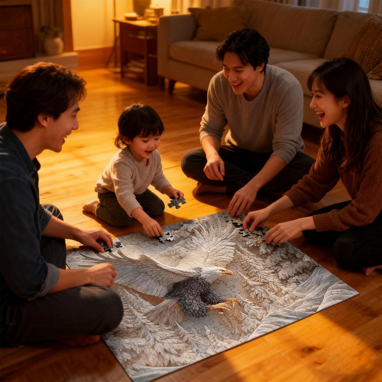 【Majestic Eagle Artwork】Experience the powerful image of a soaring bald eagle with this carved eagle jigsaw puzzle — a captivating art piece designed for those who appreciate beauty and precision. 【1000 Precision-Cut Pieces】Includes 1,000 interlocking pieces that fit perfectly for a satisfying and seamless assembly experience. Enjoy hours of relaxing and rewarding puzzle-solving fun. 【Premium Quality Construction】Made from durable, thick chipboard with high-definition printing. Each piece is sturdy, fade-resistant, and built to last for repeated enjoyment 【Challenging & Relaxing Puzzle Game】Ideal for adults, teens, and families, this puzzle enhances focus, patience, and hand-eye coordination while providing a calm, engaging pastime. 【Perfect Gift Choice】Packaged in a beautifully designed box, this carved eagle puzzle makes a thoughtful and elegant gift for birthdays, holidays, retirements, or home decoration.
