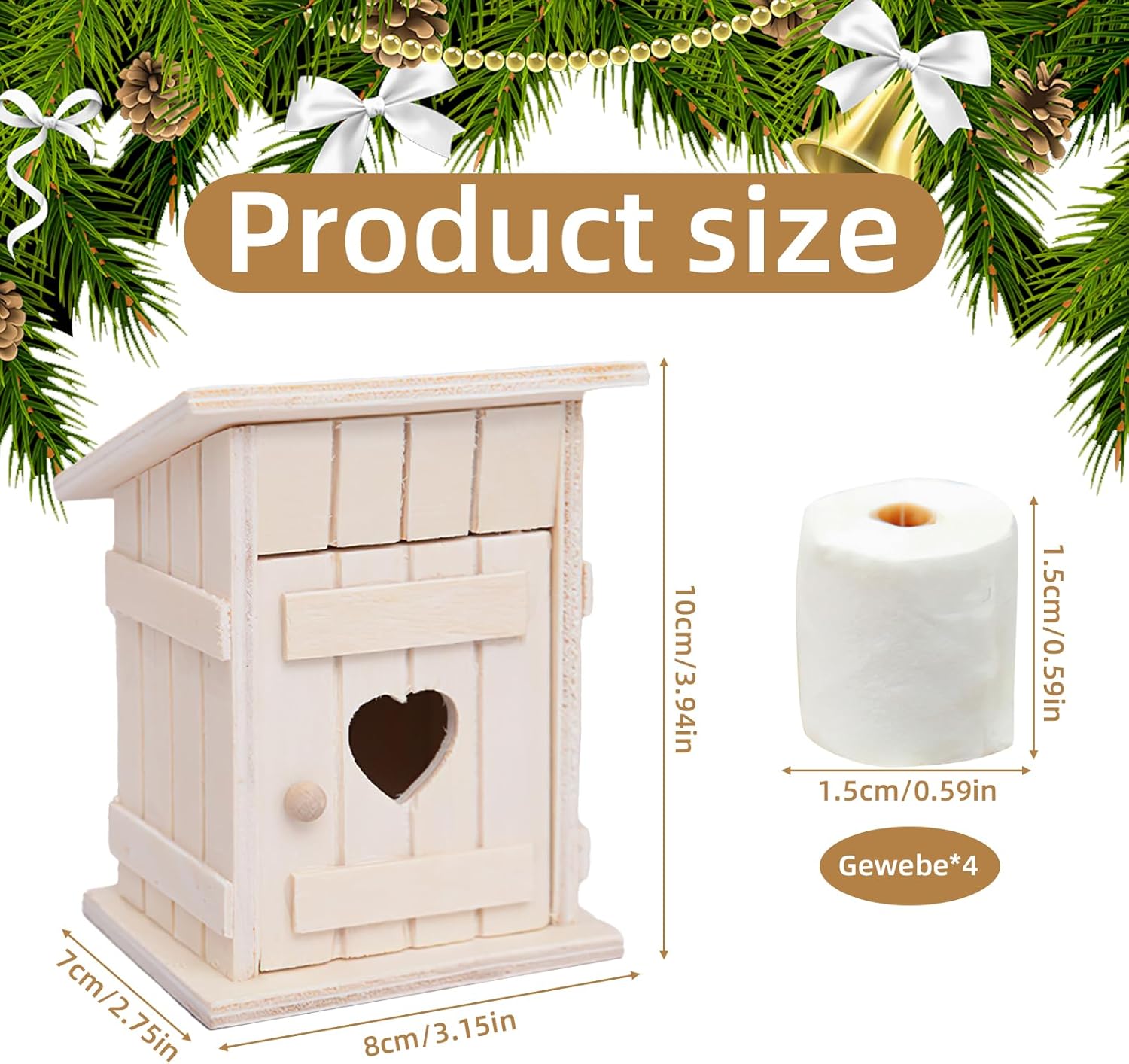 Mini toilette con 4 rotoli di carta: dipingi, attacca o aggiungi muschio alla casa come desideri e crea la "casa tranquilla" più accogliente nel tuo mondo degli gnomi. Intagliato a mano in legno di tiglio chiaro, finemente levigato e con una delicata maniglia della porta: niente spigoli vivi, solo superfici morbide che coccolano le mani di bambini e adulti. Esattamente in scala 1:12: si adatta come un guanto a qualsiasi casa delle bambole, piramide natalizia o paesaggio diorama invernale e passa immediatamente sotto i riflettori. Che si tratti di un bavaglio dietro l'albero degli gnomi, di un accogliente bagno nel bosco o di un regalo spontaneo per i collezionisti: in pochi secondi il Setchen inizia la sua piccola storia. Consegnato con un cartellino regalo stampato in inverno: un sorriso garantito sotto l'albero di Natale, per il giorno di San Nicola o semplicemente come sorpresa per chi ama le case delle bambole e le miniature.