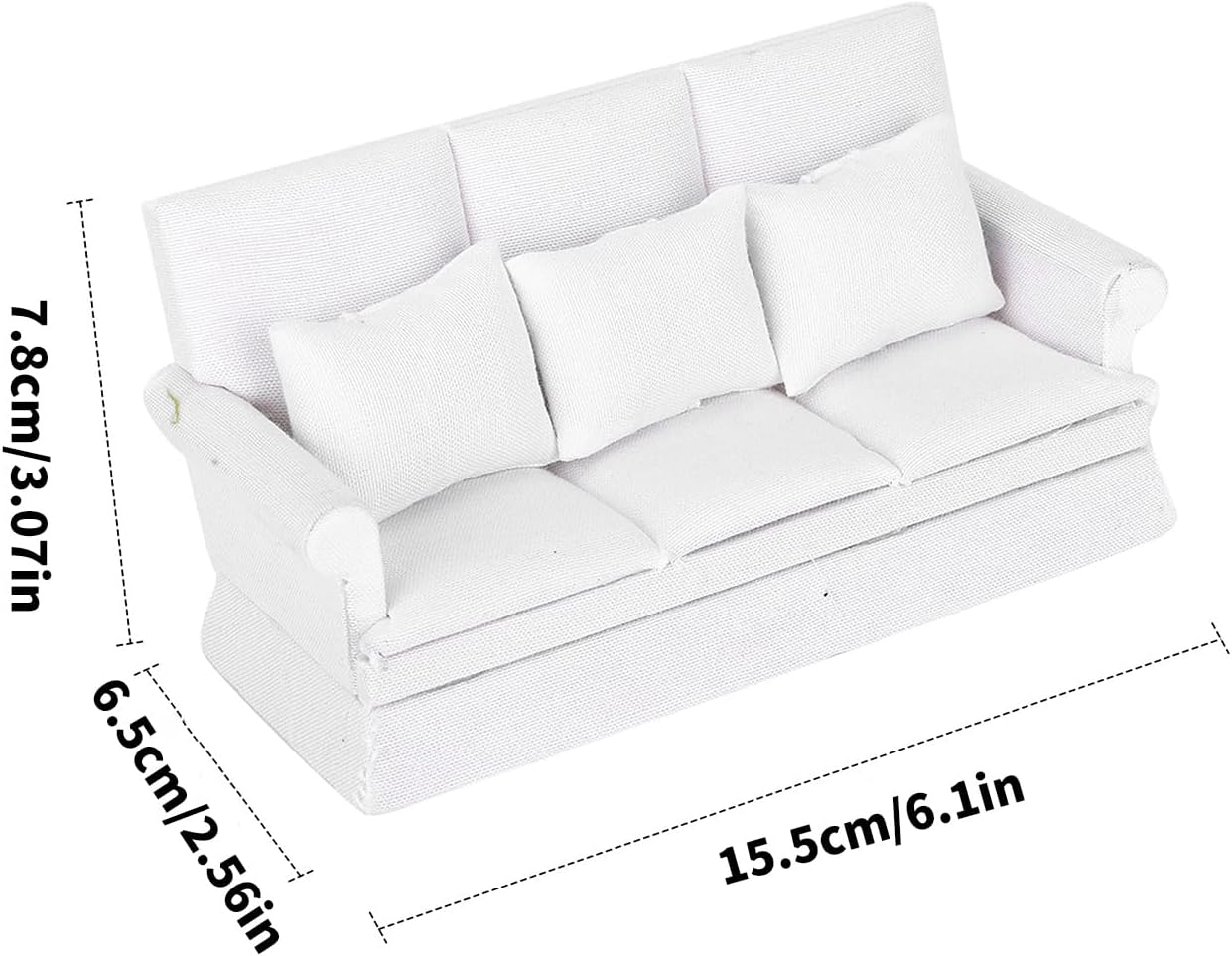 Materiali in legno. Non facile da deformare, artigianato innocuo realizzato con materiali in legno, questo divano visivamente accattivante, modello dall'aspetto eccellente molto vicino alla realtà. Gli ottimi oggetti di scena fotografici sono un regalo molto divertente per chi ama i decoratori di case delle bambole Modello di divano vintage e dettagliato, compatto e classico, studio ad alta riduzione