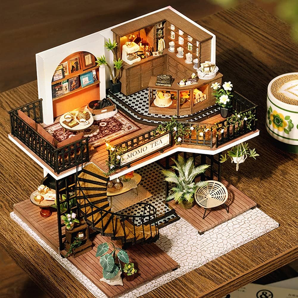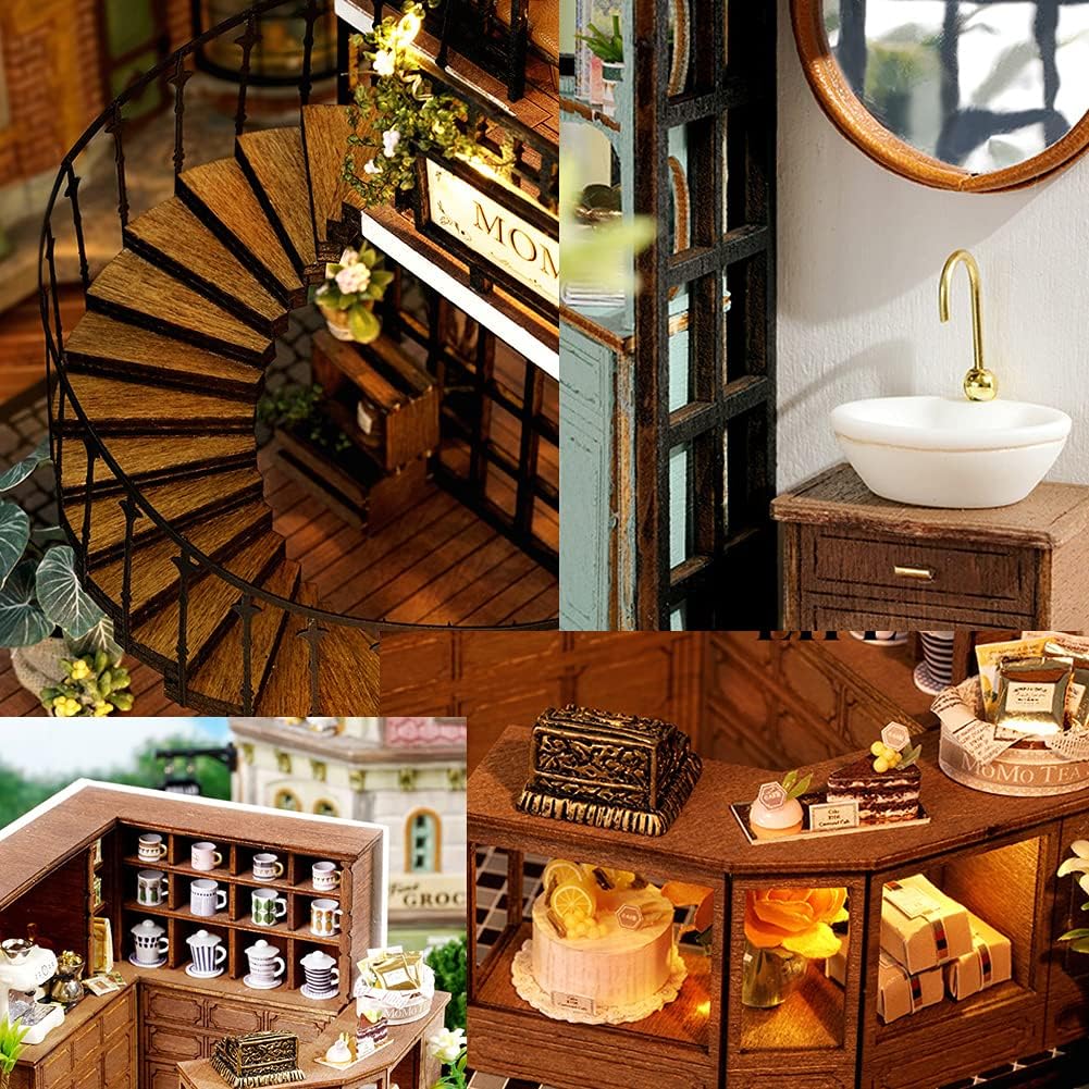 Questo set di casetta giocattolo in legno in miniatura è realizzato con materiali di alta qualità e tutti i mobili e gli accessori sono realizzati a mano, inclusi taglio, cucito e incollaggio. Richiede da 1 a 3 ore per essere completato ed è adatto a bambini dai 14 anni in su. È un ottimo modo per sviluppare abilità pratiche, pazienza e creatività. Questa squisita casetta giocattolo in miniatura è un regalo ideale per feste e compleanni, perfetta per occasioni come Natale e il Ringraziamento. Che venga utilizzata come oggetto decorativo o da collezione, questo regalo unico e pratico delizierà sicuramente amici e parenti. Il design vintage a due piani crea un affascinante mondo in miniatura, fondendo perfettamente un negozio di tè pomeridiano in giardino con un negozio di fiori e un ristorante. Gustate dessert e tè pomeridiano qui, immergendovi nella natura e creando un pomeriggio rilassante e confortevole. Il set viene fornito con un manuale di istruzioni illustrato dettagliato e colorato con istruzioni chiare e foto corrispondenti per ogni passaggio, rendendo il montaggio e il posizionamento facili e divertenti. Il prodotto include una custodia antipolvere e un movimento musicale. Vedere la confezione per dimensioni e peso. A causa di restrizioni di spedizione, utensili, colla e batterie non sono inclusi. Non esitate a contattarci per qualsiasi domanda.