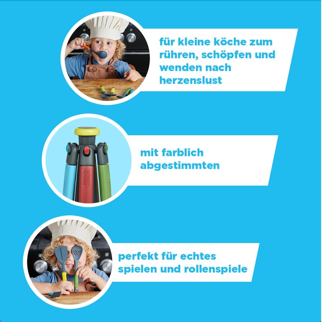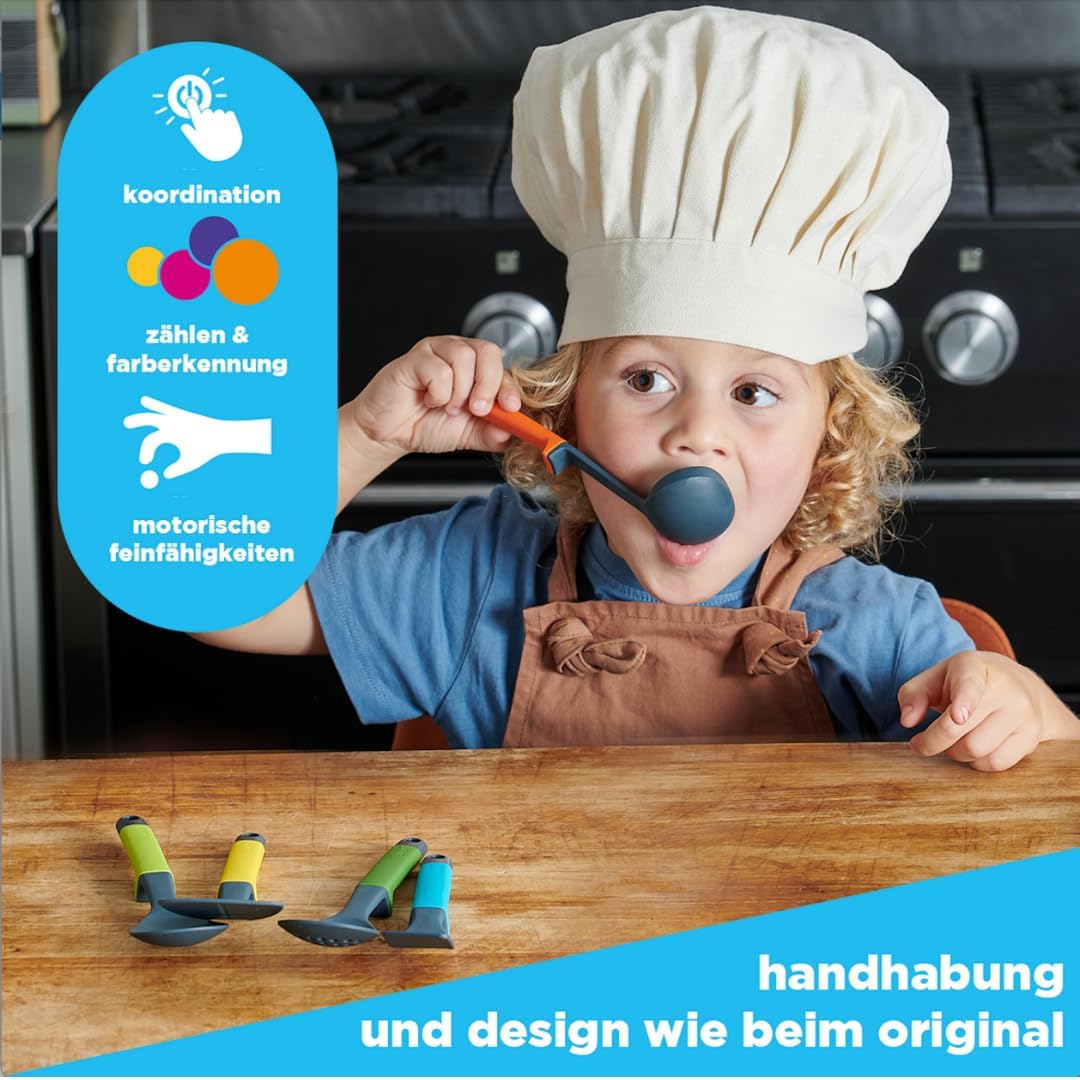 L'ARCOBALENO PERFETTO: i diversi colori di questi utensili si abbinano ai ganci sul supporto, aggiungendo un elemento di sviluppo al gioco. SUPPORTO 6 IN 1: sei diversi utensili da cucina possono essere utilizzati dal taglio al servizio! DIVERTIMENTO ROTANTE: appendi gli utensili sul supporto girevole e guardali girare! INCLUSO: Supporto girevole, cucchiaio di legno, cucchiaio per spaghetti, mestolo, spatola forata, spatola e schiumarola. Peso (kg): 0,183, lunghezza (cm): 7,50, larghezza (cm): 7,50, altezza (cm): 21,50