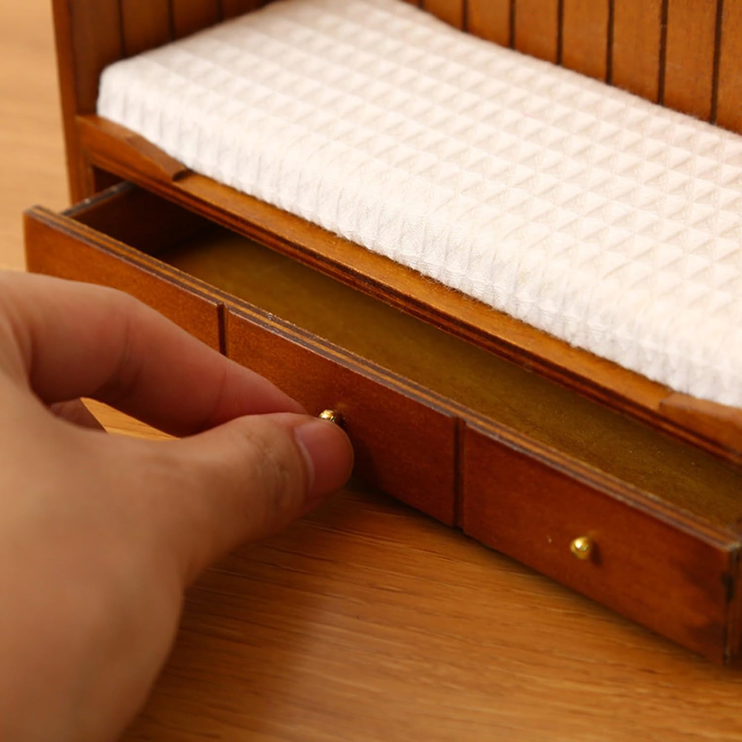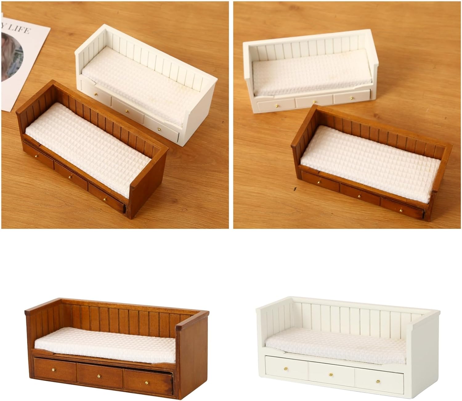 Modello di letto singolo elaborato e classico, compatto e classico, alto livello di riduzione dei materiali in legno. Non facile da deformare, innocuo, un regalo molto divertente per chi ama i decoratori di case delle bambole. Questo letto realizzato con materiali in legno visivamente accattivanti, l'eccellente aspetto del modello è molto vicino alla realtà. Ottimi oggetti di scena per foto