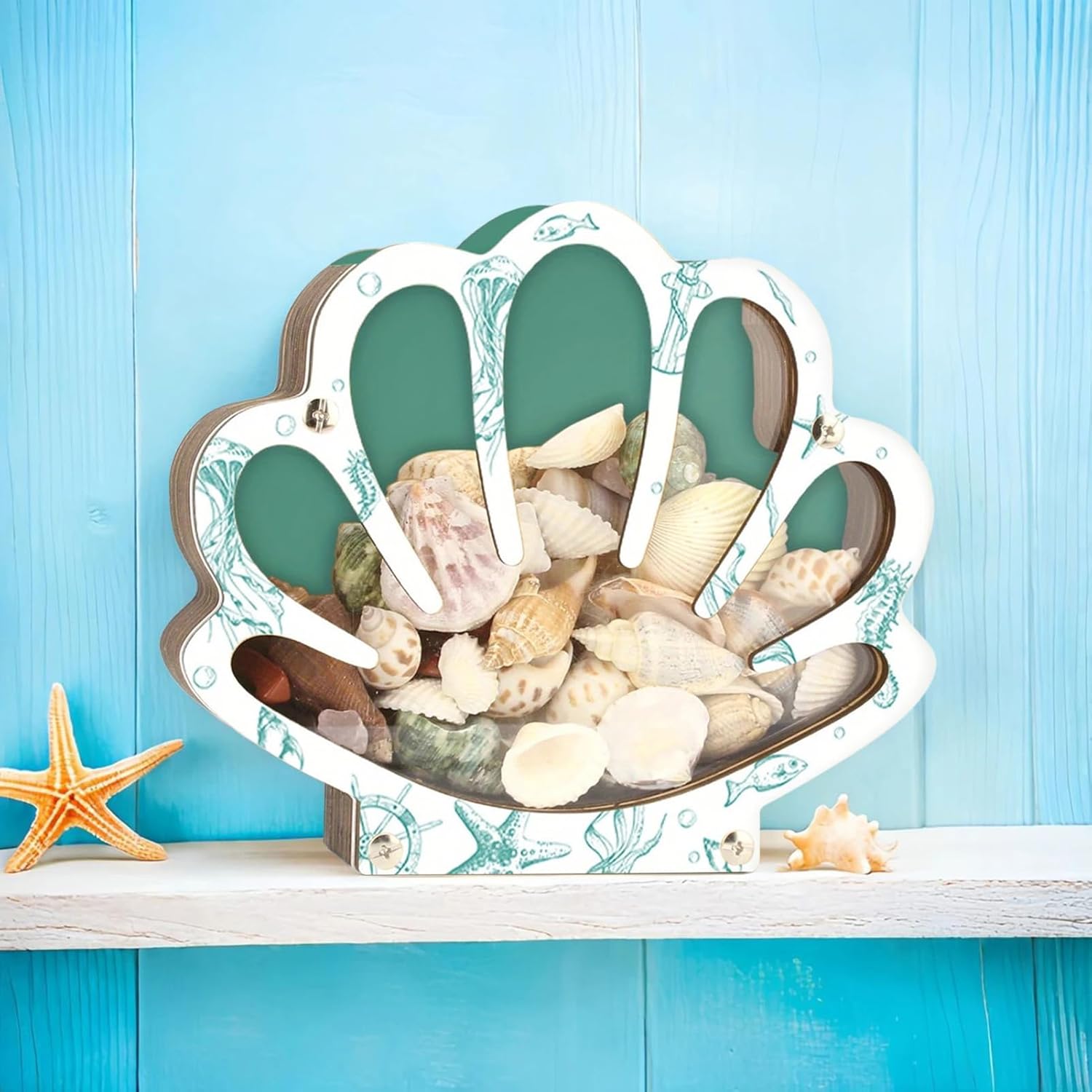 Sproty Seashell Showcase - Progettato con una barriera resistente alla polvere e all'umidità per aumentare le prestazioni protettive, mantenere le forme di conchiglie e garantire che i colori rimangano vivaci senza degradazione Dichiarazione di stile Seaside: Cattura lo spirito dell'estetica costiera, con intricate trame di gestione e affascinanti elementi decorativi in stile spiaggia, senza problemi Scena applicabile: migliora il tuo spazio o vetrina nella finestra del negozio con questa vetrina a tema mare, progettata per applicazioni versatili tra cui presentazioni festive e arrangiamenti creativi Facile da usare: con un design interno stratificato e un'apertura per vetrine, questa vetrina fornisce un deposito da collezione organizzato mantenendo l'accessibilità senza sforzo Costruzione robusta: progettata per adattarsi a varie dimensioni di conchiglie, questa vetrina presenta una solida struttura trasparente con una base naturale e una camicetta chiara, garantendo praticità e chiarezza visiva per mostrare tesori marini speciali