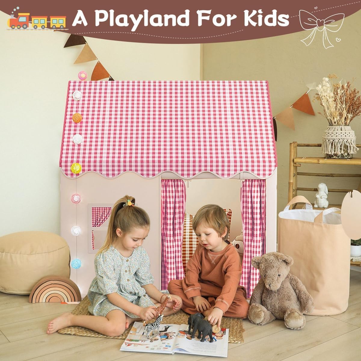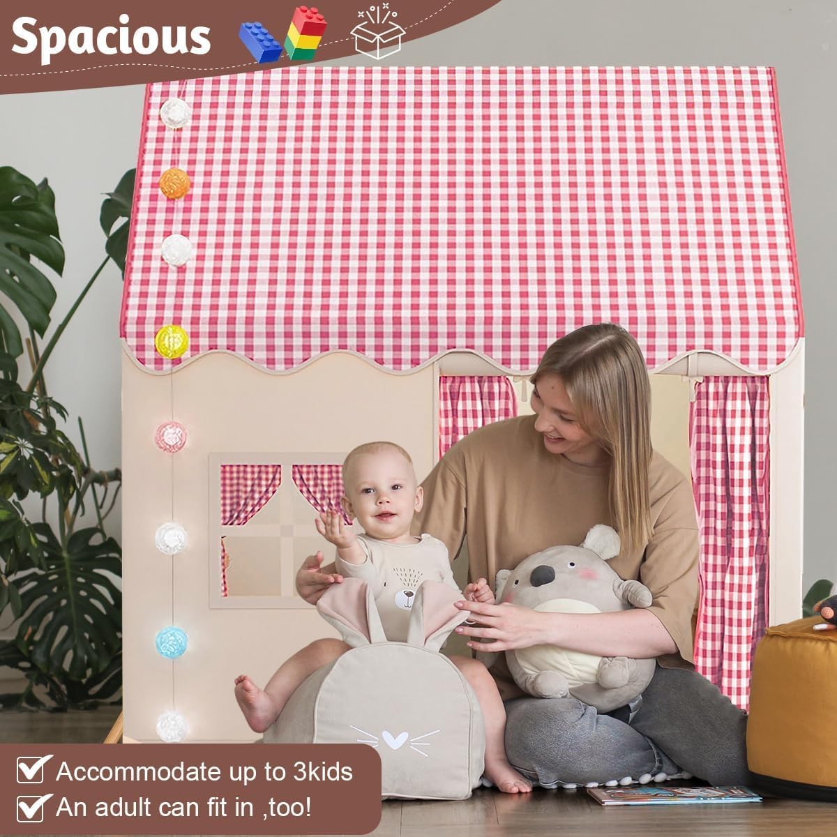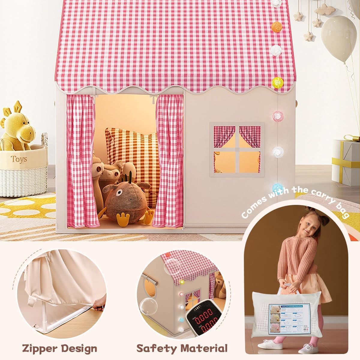 Campi di utilizzo: festa di compleanno, parco, picnic, cortile, parco divertimenti, campeggio, escursione, ecc. Può essere utilizzato tranquillamente a scuola, durante il carnevale, per giochi indoor e outdoor. Ideale per Natale, compleanni, feste in giardino e come regalo per i bambini. Informazioni sul prodotto: dimensioni della tenda aperta: 105 x 128 x 120 cm. Se ci sono molte bambole, anche i bambini possono dormire comodamente. Nella grande tenda per bambini possono stare comodamente due bambini. Divertiti nella tua base segreta con i tuoi amici. Materiale del tessuto sicuro: la tenda da intrattenimento per bambini è realizzata in tessuto di poliestere di alta qualità, durevole, resistente agli strappi, non tossico, insapore, inodore e sicuro per i bambini. Questa bellissima tenda rosa è progettata per aiutare sinceramente le tue ragazze a realizzare i loro sogni da piccole principesse. Facilità di montaggio: non sono necessari attrezzi speciali. La tenda può essere montata rapidamente e facilmente. Quando non lo usi, piegalo e mettilo nella custodia. In questo modo non occuperà spazio e non ti disturberà. Ciò ottimizza l'uso dello spazio. Grazie al suo peso leggero, è facile da trasportare e riporre e può essere utilizzato sia all'interno che all'esterno. Precauzioni: 1. Le aste devono essere inserite nel raccordo a T il più saldamente possibile. 2. Dopo aver installato le aste, coprirle con la copertura in tessuto. 3. La tenda non contiene luci o decorazioni con corde a sfera.