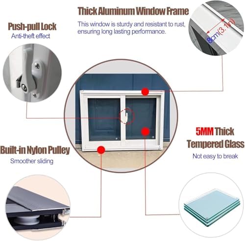 Migliora il tuo spazio esterno con la nostra finestra in alluminio, progettata per durare e stile. Il telaio in alluminio antiruggine garantisce prestazioni di lunga durata in varie condizioni atmosferiche, rendendolo perfetto per il tuo capanno o giardino. Goditi una migliore ventilazione e luce naturale mantenendo la sicurezza dei tuoi effetti personali. Aggiorna oggi la tua soluzione di archiviazione! Finestra in vetro temperato da 5 mm: il nostro vetro temperato spesso 5 mm offre una maggiore durata e sicurezza resistendo agli urti e riducendo al minimo i frammenti taglienti. Lo schermo integrato mantiene efficacemente i piccoli animali fuori consentendo la circolazione dell'aria fresca, garantendo un ambiente confortevole nel tuo capannone. Migliora il tuo spazio esterno con questa soluzione affidabile ed elegante per ventilazione e protezione. Applicazione versatile: questa finestra è perfetta per migliorare la luce naturale o sostituire vecchie finestre. Ideale per capannoni, casette, pollai, scantinati, fienili, garage e altre strutture all'aperto. Migliora il tuo spazio con questa finestra resistente e funzionale, progettata per soddisfare varie esigenze fornendo un ambiente luminoso e invitante. Facile installazione a incasso: questa confezione include la finestra in vetro temperato e un kit di viti per un'installazione semplice. Basta incorporare la finestra nell'apertura, fissare la parte superiore del telaio con le viti e utilizzare l'adesivo in schiuma per riempire eventuali spazi vuoti, rendendolo un progetto fai-da-te accessibile per i proprietari di case. Uso versatile: perfetta per sostituire vecchie finestre o aggiungere luce naturale, questa finestra è ideale per varie applicazioni tra cui capannoni, casette, pollai, scantinati, fienili, garage e altre strutture esterne.