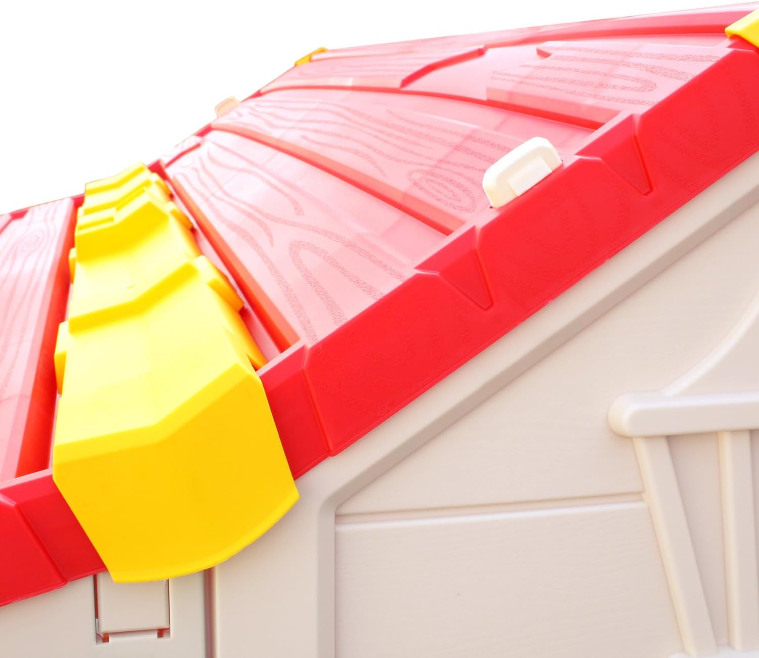🏡 Design Accattivante - La casetta da gioco Fantasy di GioPlay by Giodicart offre un ambiente sicuro e stimolante per bambini dai 3 anni in su. Dotata di tetto rosso, finestre blu e una porta funzionante, invita i piccoli a vivere entusiasmanti avventure e giochi di ruolo creativi. Le dimensioni generose permettono a 4 bambini di giocare comodamente insieme, sia all’interno che all’esterno. 🌱 Materiali Ecologici - Realizzata in PP ecologico, la casetta è atossica e inodore, garantendo la massima sicurezza per i tuoi bambini. I materiali ecocompatibili assicurano un ambiente di gioco sano, rispettando l’ambiente e promuovendo la sostenibilità. 🎨 Design Vivace - Con una porta blu e un tetto rosso in tegole, la casetta offre un’atmosfera da vero cottage. Il design vivace e colorato cattura l’immaginazione dei bambini, rendendo ogni gioco un’esperienza magica e coinvolgente. La combinazione di colori brillanti e dettagli curati rende la casetta un elemento decorativo perfetto per qualsiasi giardino. 🛠️ Facile da Assemblare e Pulire - Grazie al manuale utente dettagliato, l’assemblaggio è semplice e veloce, permettendo ai genitori di montare la casetta in pochi minuti. La superficie liscia facilita la pulizia, permettendo di mantenere l’area di gioco sempre pulita e igienica con il minimo sforzo. 🛡️ Sicurezza Garantita - La casetta Fantasy è progettata con angoli arrotondati, pareti robuste e finestre ampie per una ventilazione ottimale e una facile supervisione. La struttura solida e stabile assicura che i bambini possano giocare in tutta sicurezza, permettendo ai genitori di stare tranquilli mentre i piccoli esplorano e giocano. 🌟 Stimolazione Creativa - Incoraggia il gioco di ruolo e la socializzazione, sviluppando l’immaginazione e le abilità sociali dei bambini. Il design spazioso consente a più bambini di interagire e collaborare, promuovendo il lavoro di squadra e le amicizie. La casetta diventa un centro di attività dove ogni gioco è un’opportunità di apprendimento.