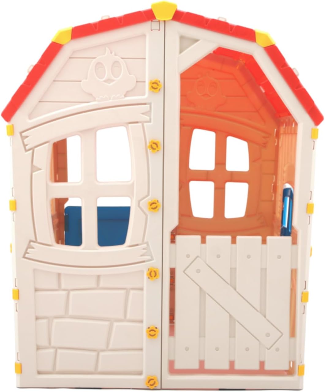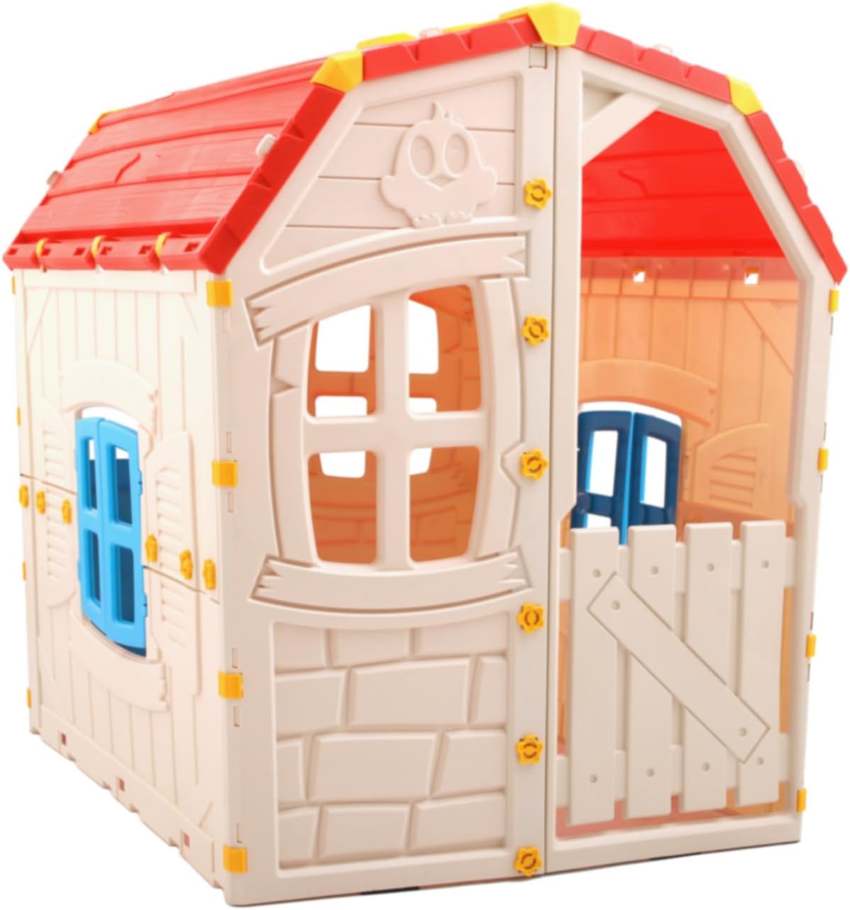 🏡 Rifugio Perfetto - La Casetta Happy di GioPlay by Giodicart è il rifugio ideale per i piccoli esploratori!Perfetta per bambini dai 2 anni in su, offre uno spazio sicuro e accogliente dove l'immaginazione può prosperare, trasformando ogni gioco in un'avventura emozionante e coinvolgente. 🌱 Materiali Ecologici- Realizzata in PP ecologico, la Casetta Happy è atossica e inodore, garantendo un ambiente di gioco sano e sicuro per i bambini. I materiali sostenibili assicurano che i tuoi piccoli possano giocare liberamente, mentre tu contribuisci alla tutela dell'ambiente. 🎨 Design Vivace- La casetta presenta un design colorato con una porta blu e un tetto rosso in tegole, che ricrea l'atmosfera di un vero cottage. Questo design vivace cattura l'attenzione dei bambini e li invita a immergersi in mondi di fantasia, rendendo ogni momento di gioco un'esperienza magica. 🛡️ Sicurezza Prima di Tutto- La Casetta Happy è progettata con angoli arrotondati, pareti robuste e finestre ampie per garantire una ventilazione ottimale e una supervisione facile. La struttura stabile e sicura permette ai bambini di giocare liberamente senza rischi, assicurando la tranquillità dei genitori. 🌟 Stimolazione Creativa- La casetta incoraggia il gioco di ruolo e la socializzazione, sviluppando l’immaginazione e le abilità sociali dei bambini. Il design spazioso e aperto permette ai piccoli di esplorare e inventare storie, stimolando la loro creatività e promuovendo il lavoro di squadra. 📏 Dimensioni Ideali- Con dimensioni di cm 88x103x106 h., la Casetta Happy è perfettamente dimensionata per consentire a più bambini di giocare insieme comodamente. La sua struttura compatta ma spaziosa è ideale per qualsiasi giardino o area giochi, offrendo uno spazio divertente e stimolante per i tuoi piccoli.