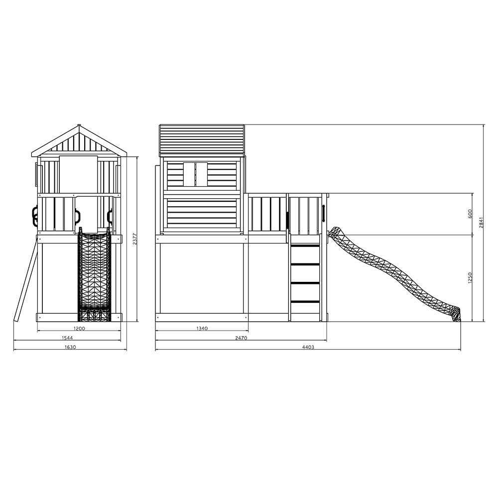 Casetta in legno da giardino con scivolo, volante e tetto a due falde Include porta, persiane, scala in metallo e maniglie di sicurezza Design compatto con molteplici funzioni in poco spazio Scivolo blu da 2,2 m incluso, resistente a sole e pioggia Adatta a 7 bambini dai 3 ai 10 anni (max 50 kg per bambino) Facile da montare con kit e manuale illustrato inclusi Conforme alla normativa UNI EN 71 per uso privato