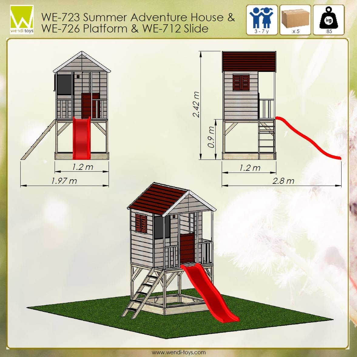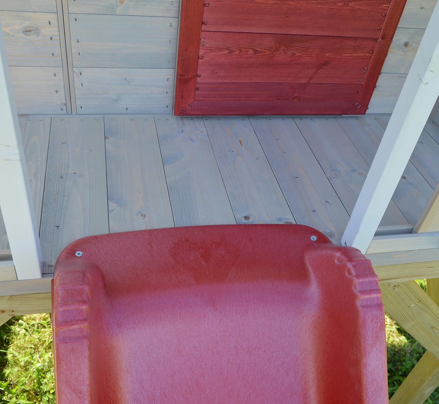 Casetta con scivolo in legno FSC: casetta con scivolo da 175 cm, altezza piedistallo 90 cm, scala, terrazza e pavimento, perfetta torre da gioco all'aperto per bambini dai 3 ai 7 anni. Sicuro e stabile: realizzato in legno FSC con bordi arrotondati, robusti palafitte da 45 × 45 mm e finestre infrangibili, conforme allo standard di sicurezza EN-71. Resistente alle intemperie e durevole: piattaforma impregnata a pressione, legno protetto con vernice a base d'acqua – resiste a pioggia, sole e insetti per uso tutto l'anno. Torre da gioco per giardino: con tetto impermeabile e design classico, offre divertimento e avventura all'aperto per più bambini contemporaneamente. Facile da montare e servizio: i pannelli preforati e premontati consentono il montaggio senza attrezzi speciali. Istruzioni dettagliate illustrate incluse (lingua italiana non garantita). La casetta viene consegnata in più pacchetti e può essere montata in poche ore. Pezzi di ricambio e un servizio clienti UE affidabile sono disponibili per garantire anni di divertimento. La casa in legno favorisce la creatività, il movimento e l'immaginazione, un vero e proprio punto forte per ogni giardino.
