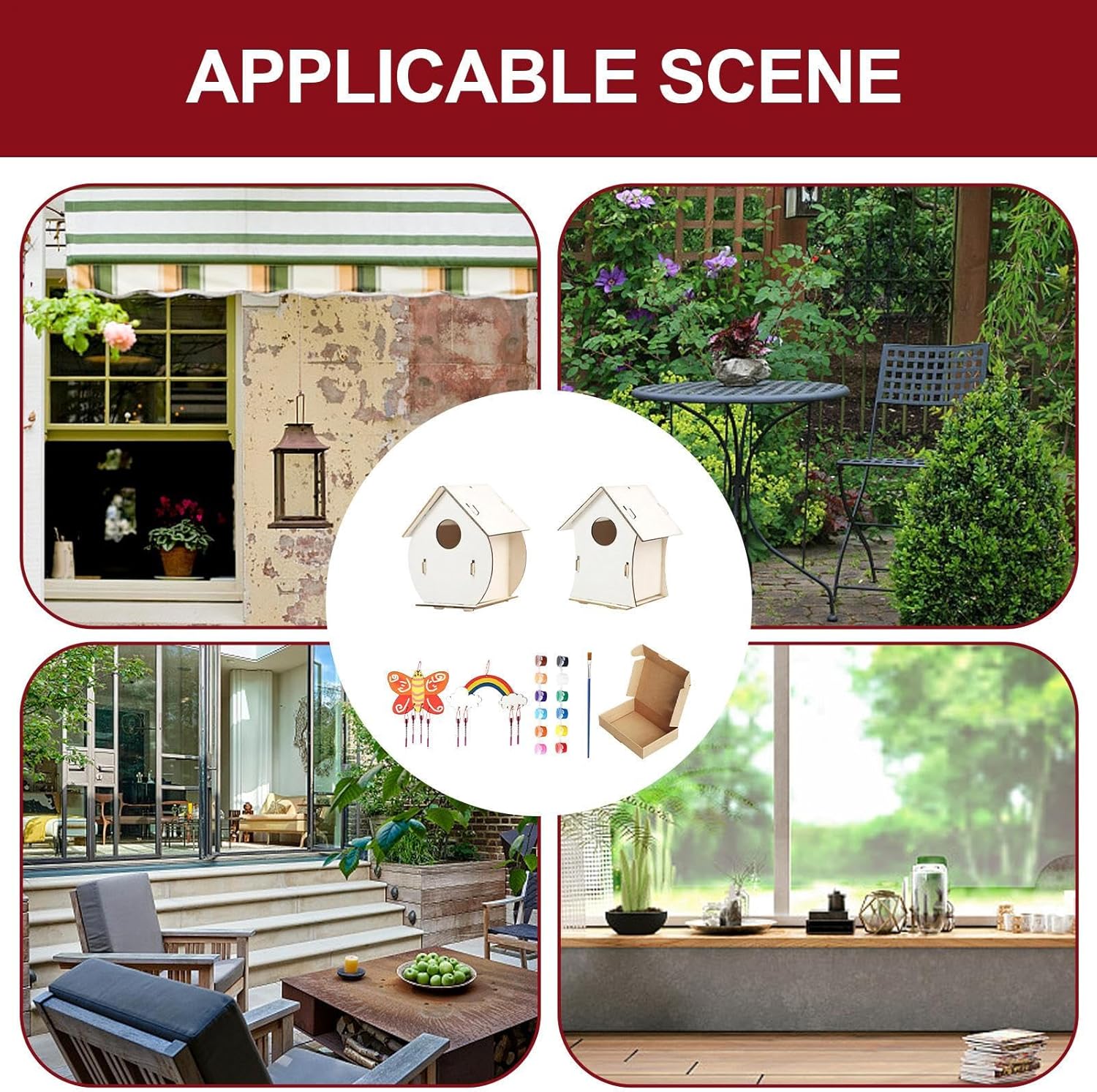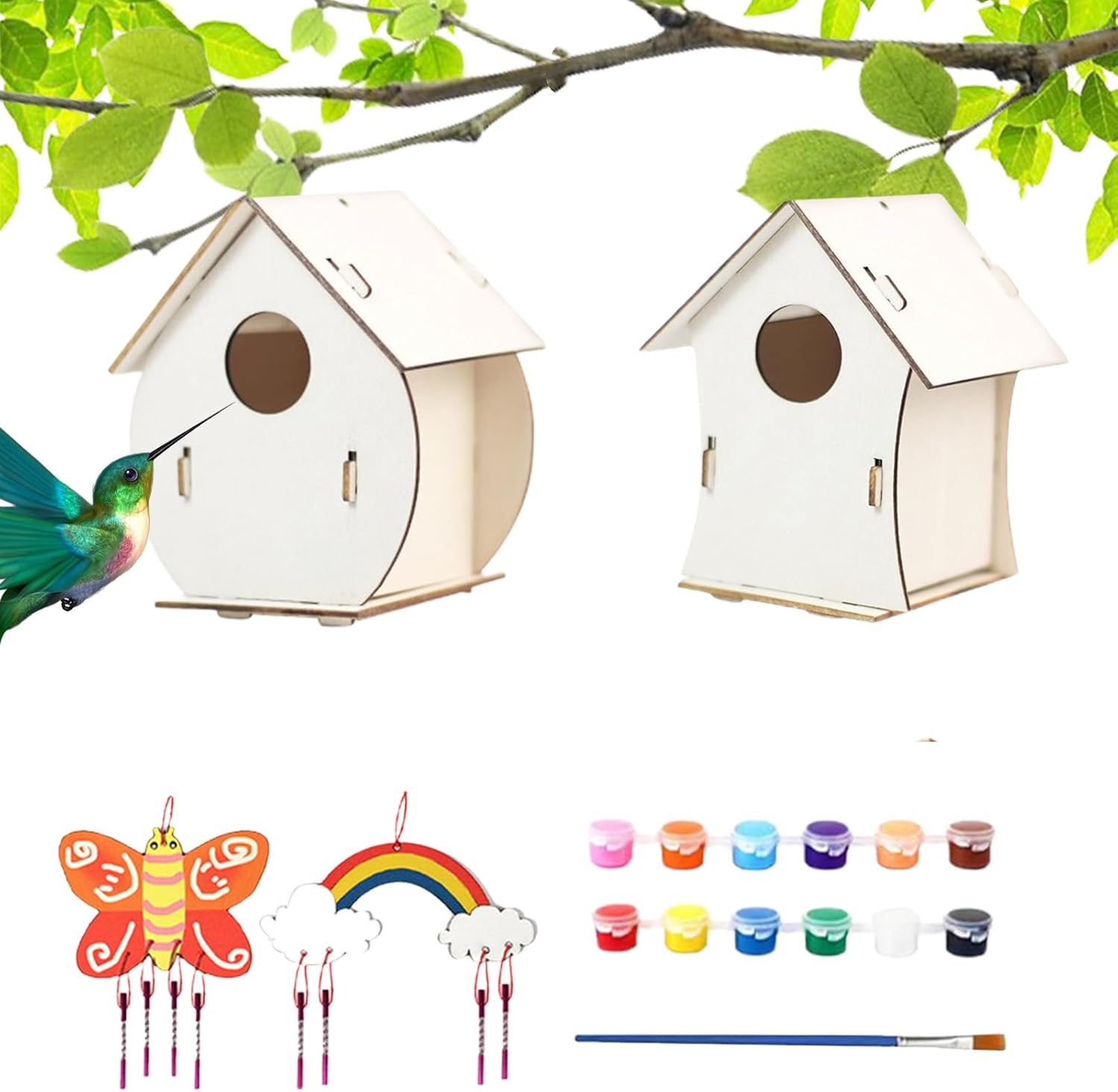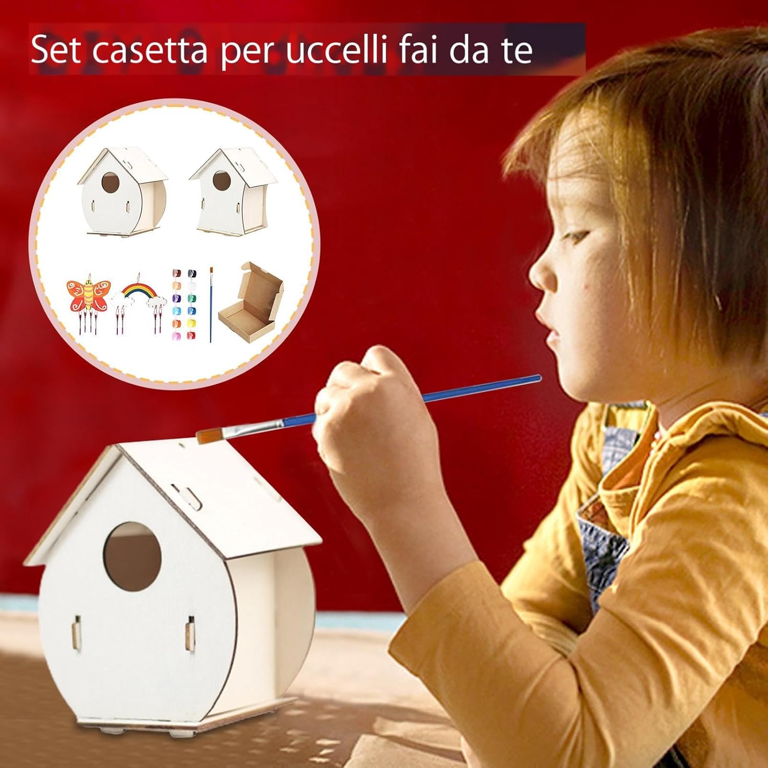 familiare creativo: partecipa a una divertente attività artigianale con 2 casette per uccelli in legno, 12 colori vivaci di vernice e 1 pennello per un divertimento fai-da-te che suscita gioia e creatività. Rifugio robusto: realizzata in legno resistente, questa casetta per uccelli promette sicurezza e un rifugio resistente alle intemperie per i tuoi amici pennuti, garantendo una facile installazione e una robustezza duratura. Connessione con la natura: costruisci una casetta per gli uccelli con tuo figlio e connettiti con la natura. Migliora la loro creatività, pazienza e abilità pratica approfondendo la loro comprensione e il con l'ambiente attraverso l'intrattenimento educativo. Alloggio per tutti gli uccelli: con un habitat accogliente e confortevole progettato per uccelli di tutte le dimensioni, questa casetta per uccelli è perfetta per progetti artistici e artigianali fantasiosi. Per gli amanti degli uccelli: goditi le meraviglie della natura con questa casetta per uccelli educativa e divertente che è un fantastico regalo di compleanno, vacanza o ringraziamento. per le aule, l'istruzione domestica e l'ornamento di giardini o spazi interni.