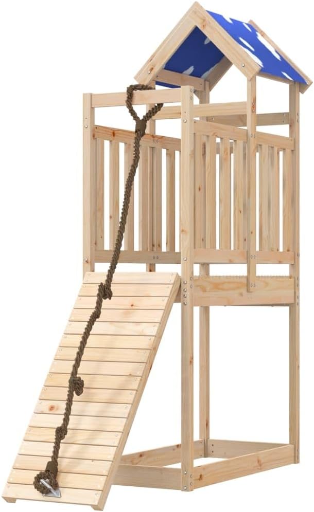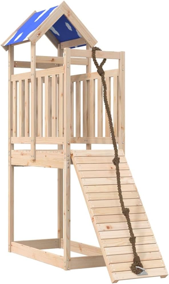 Volete dare ai vostri figli la libertà di giocare a casa? Questo set da gioco per esterni in legno trasforma il vostro cortile in un parco giochi per avventure fantasiose! Materiale resistente: Questo parco giochi è realizzato in legno massello di pino. Il legno massello di pino è noto per la sua resistenza e durata. Le sue venature dritte e i suoi nodi caratteristici contribuiscono al suo fascino rustico. Telaio robusto in legno: La struttura in legno della casetta da giardino garantisce robustezza e stabilità. Centri multiattività: Il parco giochi è dotato di una piattaforma alta 90 cm e si distingue per la parete da arrampicata e la sabbiera.