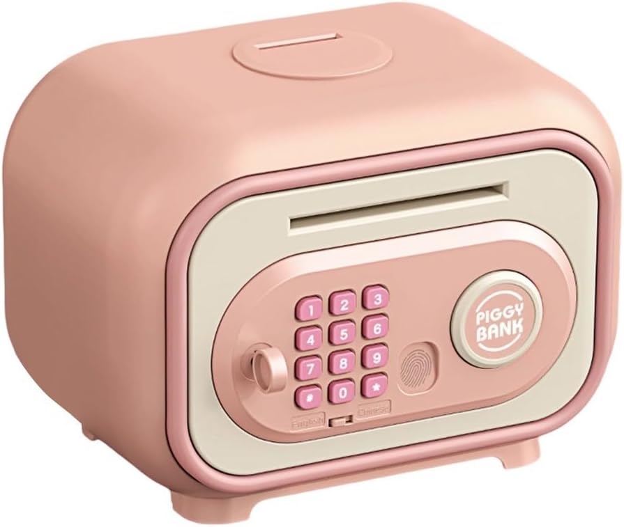 [SISTEMA DI BLOCCO PASSWORD SICURO] Dotato di protezione intelligente con password con un codice predefinito di 0000, questo salvadanaio si apre automaticamente dopo aver verificato l'impronta digitale, i tuoi risparmi sono sempre al sicuro. [Design in plastica ABS] Realizzato in resistente materiale ABS, questo salvadanaio è costruito per resistere a cadute e giochi ruvidi, rendendolo un ottimo strumento per insegnare ai bambini a risparmiare responsabilmente mantenendo l'affidabilità. [Strumento di apprendimento per bambini] Più di una semplice soluzione di archiviazione, questo salvadanaio aiuta a educare i bambini sull'alfabetizzazione finanziaria e sull'importanza di risparmiare fin dalla tenera età in modo divertente. Funzionamento a batteria con supporto multilingue: richiede 3 batterie AA non ricaricabili; la bassa potenza può ripristinare la password predefinita. Passa facilmente dalla modalità cinese a quella inglese per un maggiore divertimento con le filastrocche.