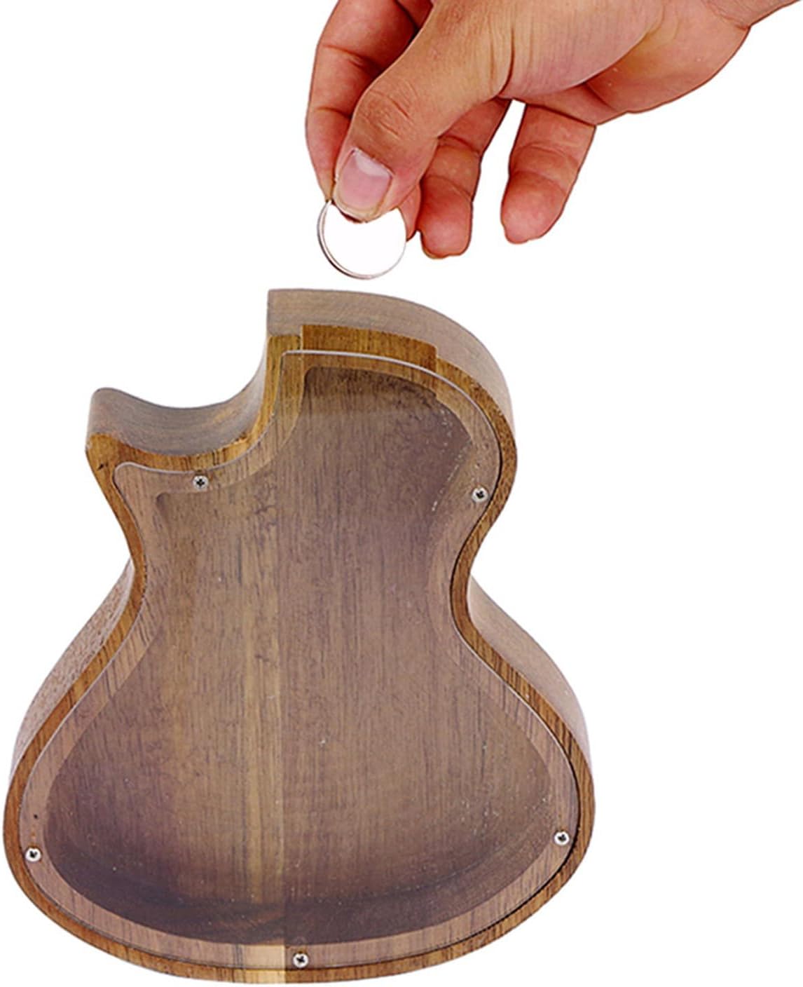 Il barattolo per monete presenta l'aspetto della chitarra, che è bello e interessante, possiede una buona funzione decorativa Il barattolo per monete con corpo trasparente consente agli utenti di conoscere il numero interno della moneta Realizzato principalmente in legno naturale, resistente all'usura e durevole, per un uso a lungo termine Le banche in legno si adattano a scrivania, comodino o libreria, possono essere un ottimo regalo per doccia, battesimo o compleanno Adatto per casa, camera da letto, ufficio, soggiorno e così via, pratico e decorativo