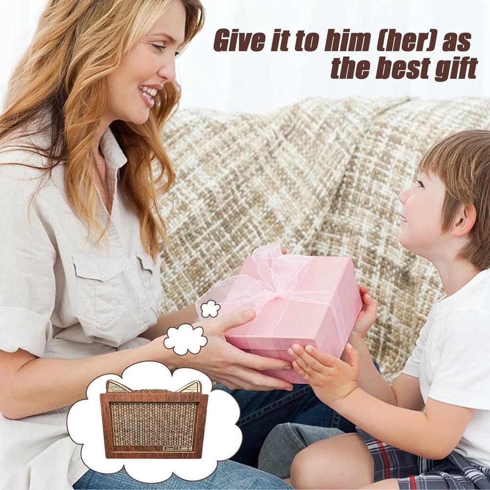 [Meravigliosa sorpresa] Il regalo perfetto per bambini e amici è questa banca di deposito di denaro. Che si tratti di compleanni, lauree o occasioni speciali, incoraggia le abitudini di risparmio e aiuta le persone a realizzare gli acquisti o le esperienze desiderate. Adatto a tutte le età, promuove la consapevolezza del risparmio. [Design pratico] Questo salvadanaio in legno è dotato di strumento di conteggio integrato che tiene traccia di quanto posizionato e rende semplice per i bambini imparare a risparmiare denaro. Rimani organizzato con il nostro salvadanaio in legno, con numeri e indicatori chiari per conteggio dei soldi facile. Tieni controllo l'andamento dei tuoi risparmi con un semplice colpo d'occhio. [Materiale Premium] Realizzato in legno di alta qualità, resistente e non facile da danneggiare, lavorazione squisita, in modo che i bordi del legno siano lisci, delicati e privi di sbavature. Risparmia spazio ed è portatile e leggero. [Scatola salvadanaio] L'esclusivo salvadanaio in legno rende il risparmio più interessante, puoi sempre vedere il successo sul salvadanaio. in modo che il risparmio non noioso. è un modo semplice per risparmiare denaro e puoi risparmiare perdere la motivazione. Seleziona l'importo da pagare nel tuo salvadanaio e, tutte le caselle saranno barrate, avrai raggiunto la tua destinazione. [Multiuso] Non solo un salvadanaio, ma anche una bellissima decorazione per la casa, il piano di , la camera da letto, il soggiorno, la toeletta.