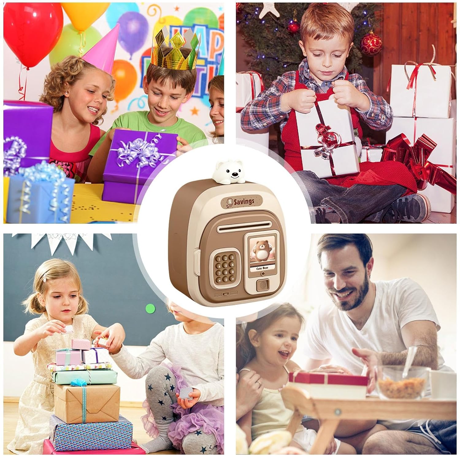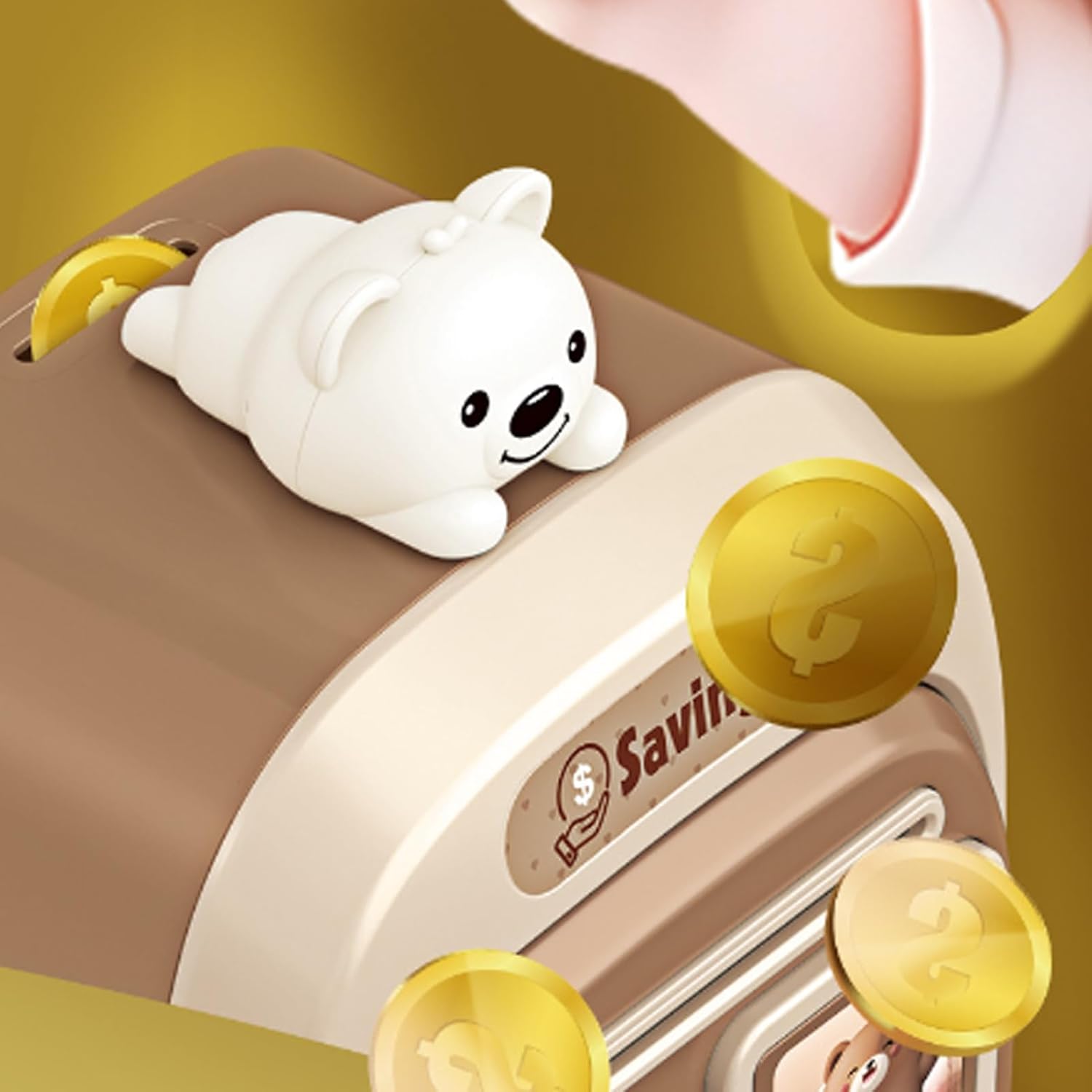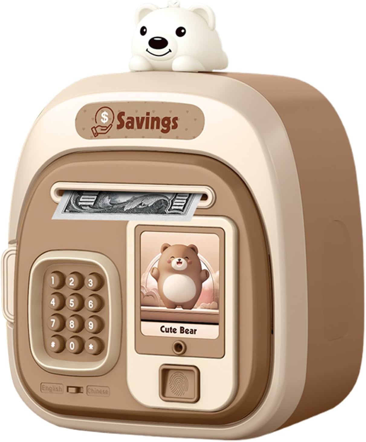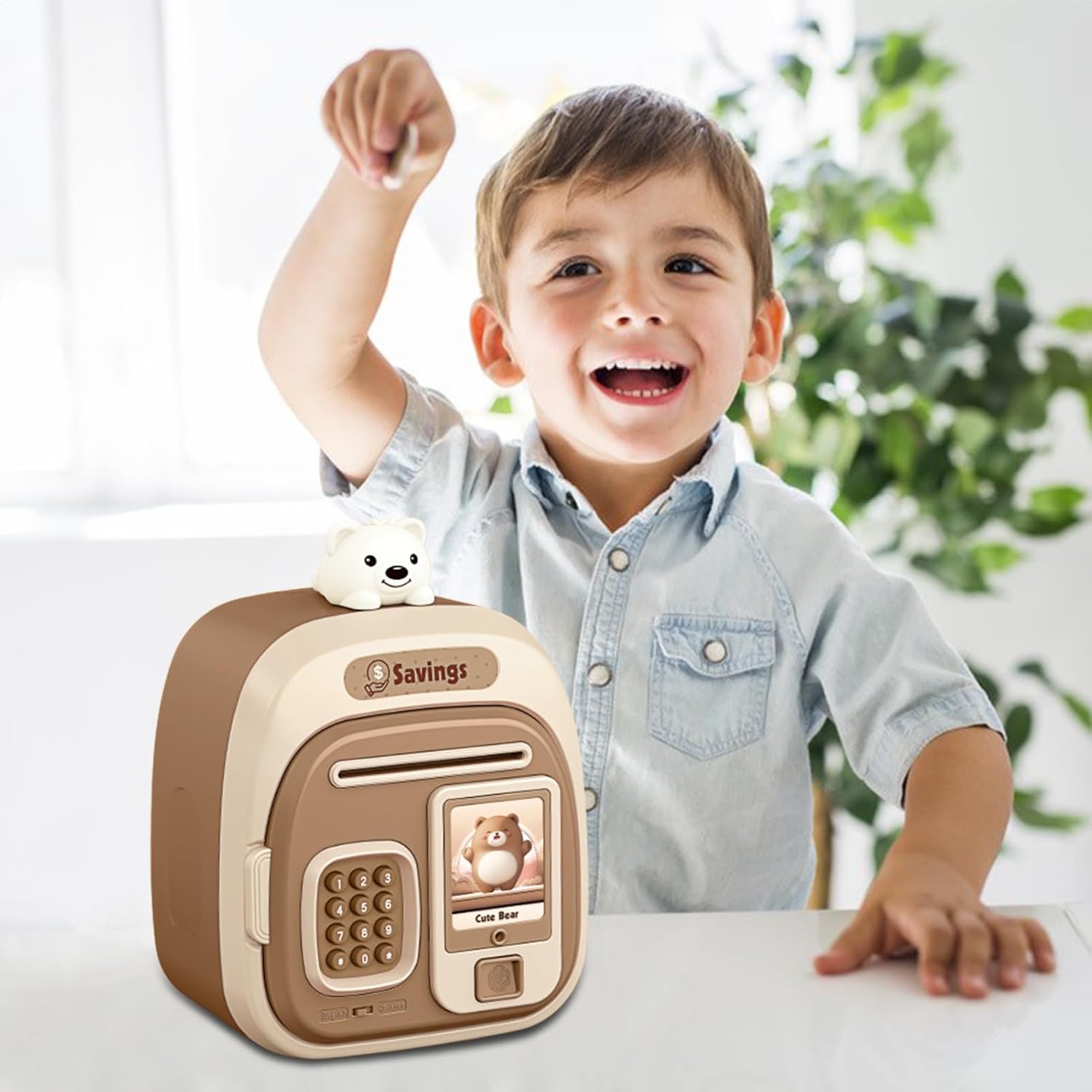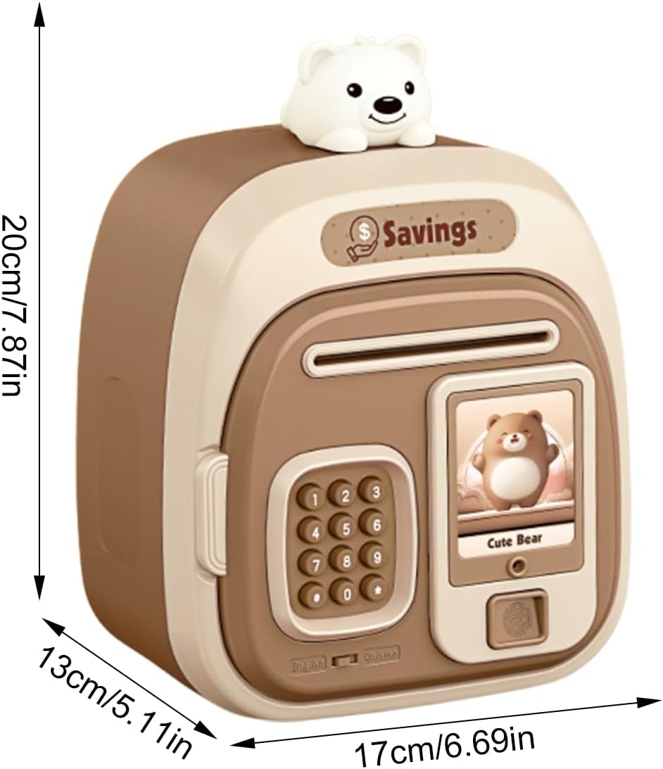 Cartoni animati interattivi per bambini al sicuro con effetti sonori: presenta un simpatico design da cartone animato con divertenti effetti sonori quando vengono inserite monete o banconote, fornendo ai bambini un modo coinvolgente e divertente per imparare a risparmiare denaro mentre giocano Salvadanaio digitale protetto da password: dotato di blocco password sicuro che consente ai bambini di proteggere le loro monete e banconote incoraggiando la responsabilità, insegnando l'importanza di risparmiare e gestire il denaro fin dalla tenera età Slot per presa automatica delle banconote per depositi facili: l'innovativo slot per presa automatica riconosce e protegge le fatture cartacee in modo rapido e semplice, rendendo divertente per i bambini depositare denaro mentre si esercitano nella gestione del denaro e nelle abilità finanziarie Giocattolo educativo e divertente per risparmiare denaro per bambini: incoraggia i bambini a sviluppare abitudini finanziarie, a conoscere monete, fatture, conteggio e responsabilità attraverso il gioco, mantenendo i soldi al sicuro e organizzati in modo e interattivo Regalo per bambini di tutte le età: ideale per compleanni, vacanze o occasioni speciali, offre a ragazzi e ragazze un modo divertente, sicuro e coinvolgente per risparmiare denaro, apprendere abilità finanziarie e divertirsi con il gioco interattivo con amici o familiari