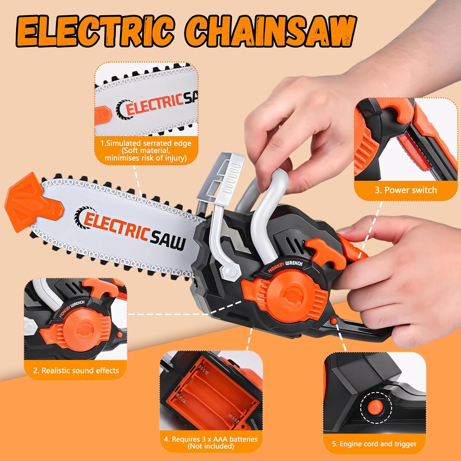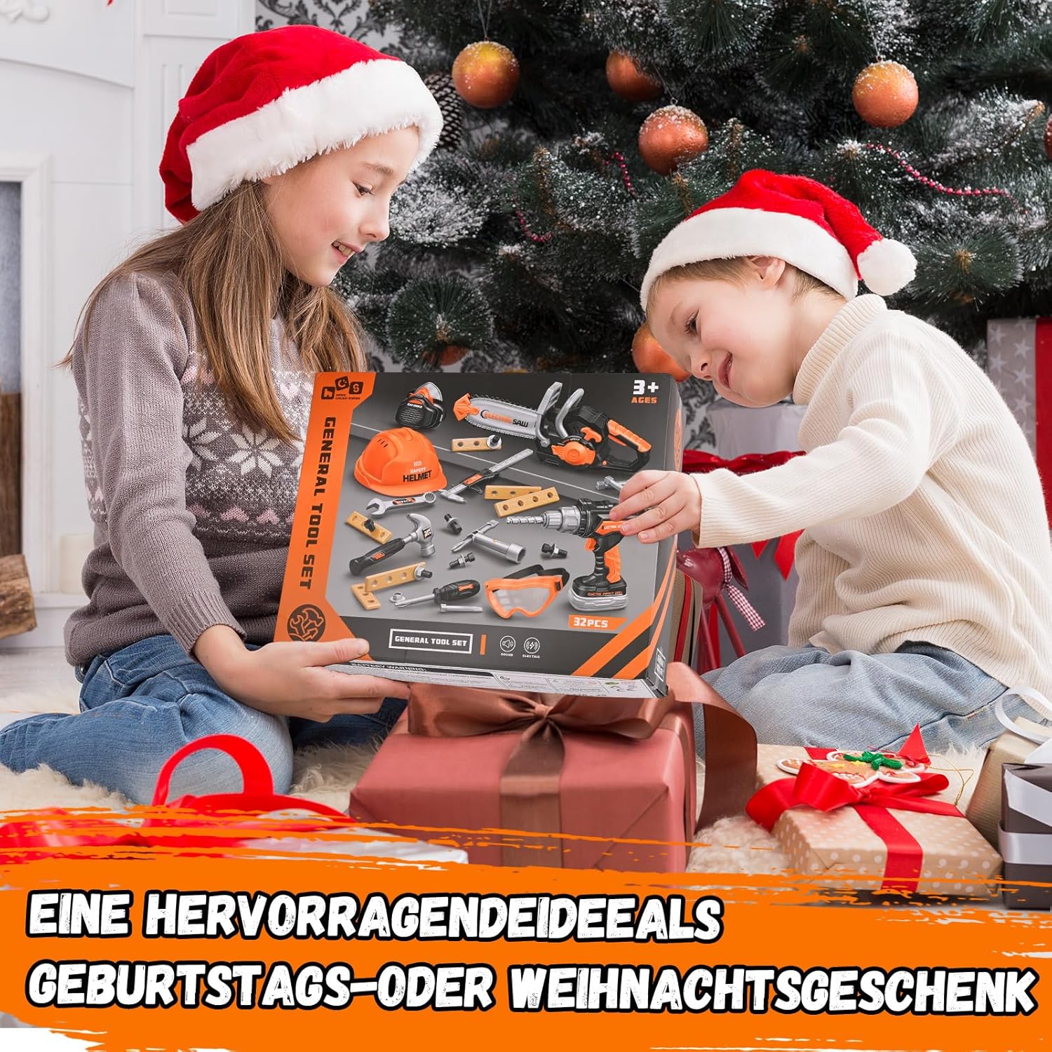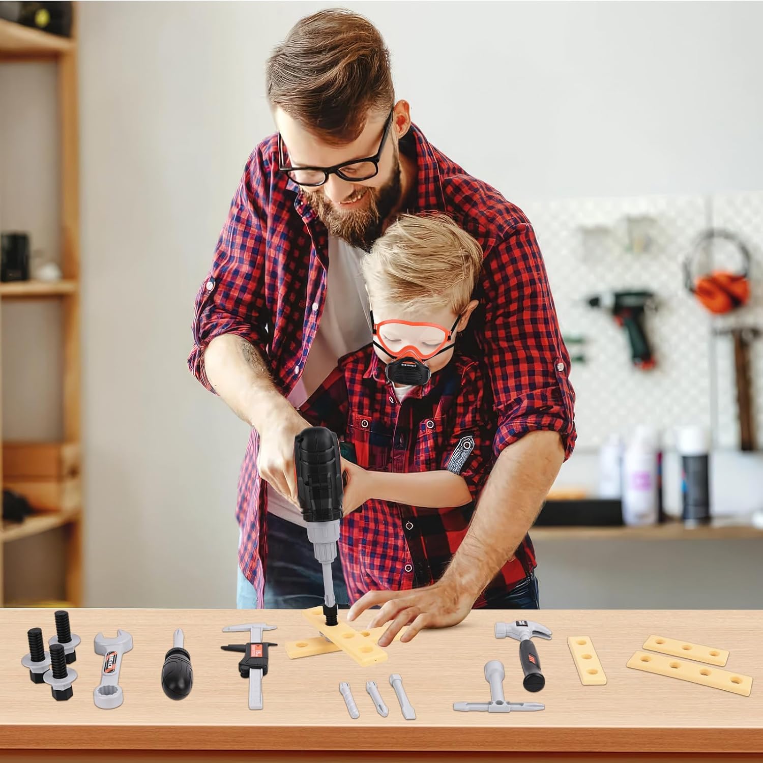 【Gioco di riparazione】 Set di utensili educativi per bambini: Questa cassetta degli attrezzi mira a stimolare la creatività e sviluppare le competenze di base attraverso scenari di costruzione ludici. È un giocattolo eccellente per bambini e bambine di 3, 4, 5 e 6 anni. 【Esperienza realistica con gli attrezzi】 Il set di utensili per bambini da 32 pezzi include una sega, un trapano (con tre punte intercambiabili), un casco di sicurezza, occhiali protettivi, una maschera, 2 chiavi inglesi, un cacciavite, un martello, listelli di plastica, viti e dadi, un calibro misurabile e un set completo di utensili. I bambini possono ricreare un cantiere edile realistico e imparare tutto sugli attrezzi attraverso il gioco di ruolo. 【Design sicuro】 Tutti gli utensili per bambini sono realizzati in robusta plastica ABS con bordi levigati e lisci. Adatto a bambini dai 3 anni in su. Il vano batteria è fissato con viti per prevenirne l'apertura facile. Avvitare, segare e costruire in sicurezza promuove la coordinazione occhio-mano e le abilità motorie fini. 【Vari accessori fai-da-te】 La cassetta degli attrezzi per bambini include viti, chiodi, dadi e listelli di plastica: perfetti per insegnare ai bambini le basi della meccanica, creare le loro opere creative e costruire la fiducia in se stessi. 【Regalo perfetto】 Che sia per un compleanno o per una festa, questo set di utensili giocattolo è il regalo ideale per i piccoli costruttori. Stimola la creatività e offre opportunità di apprendimento divertenti. Un regalo adatto per bambini e bambine di 3, 4, 5 e 6 anni.