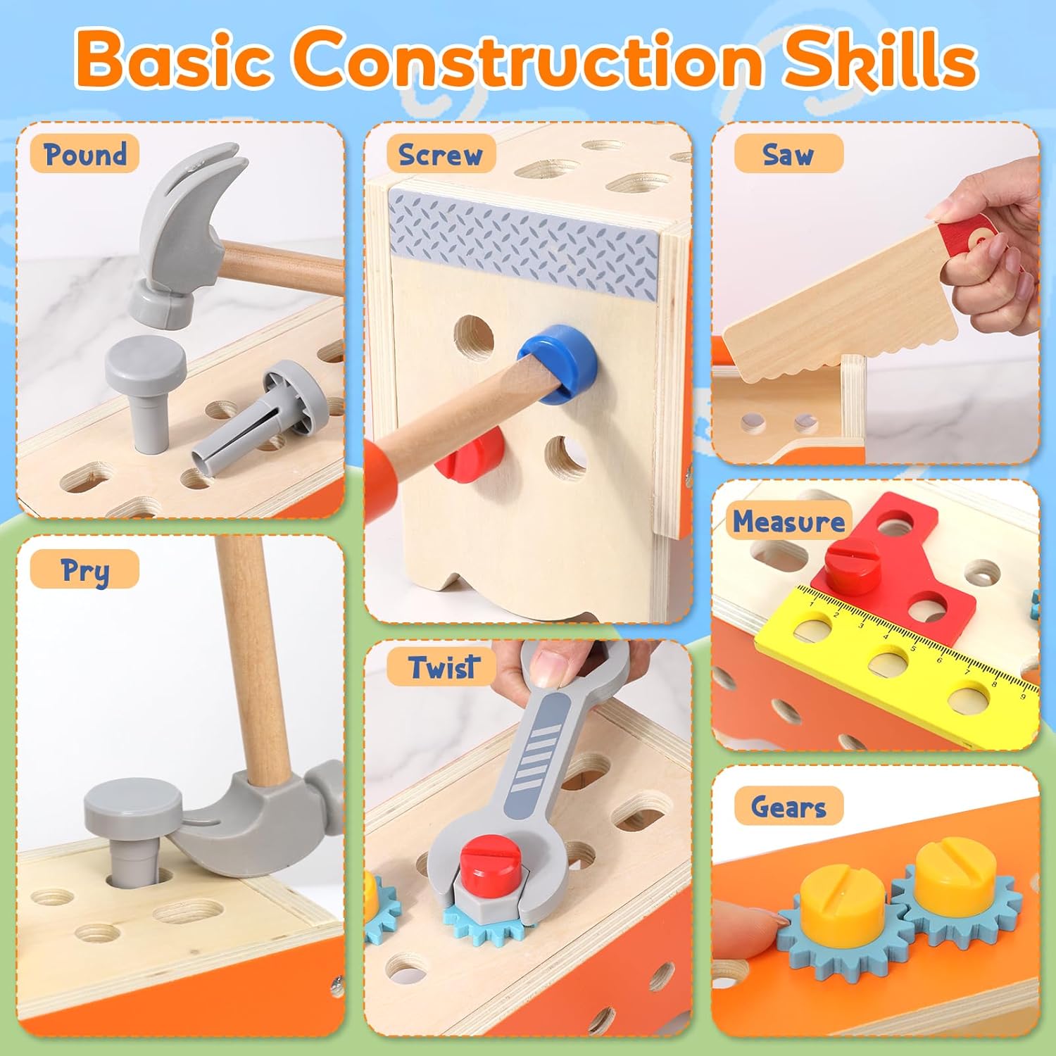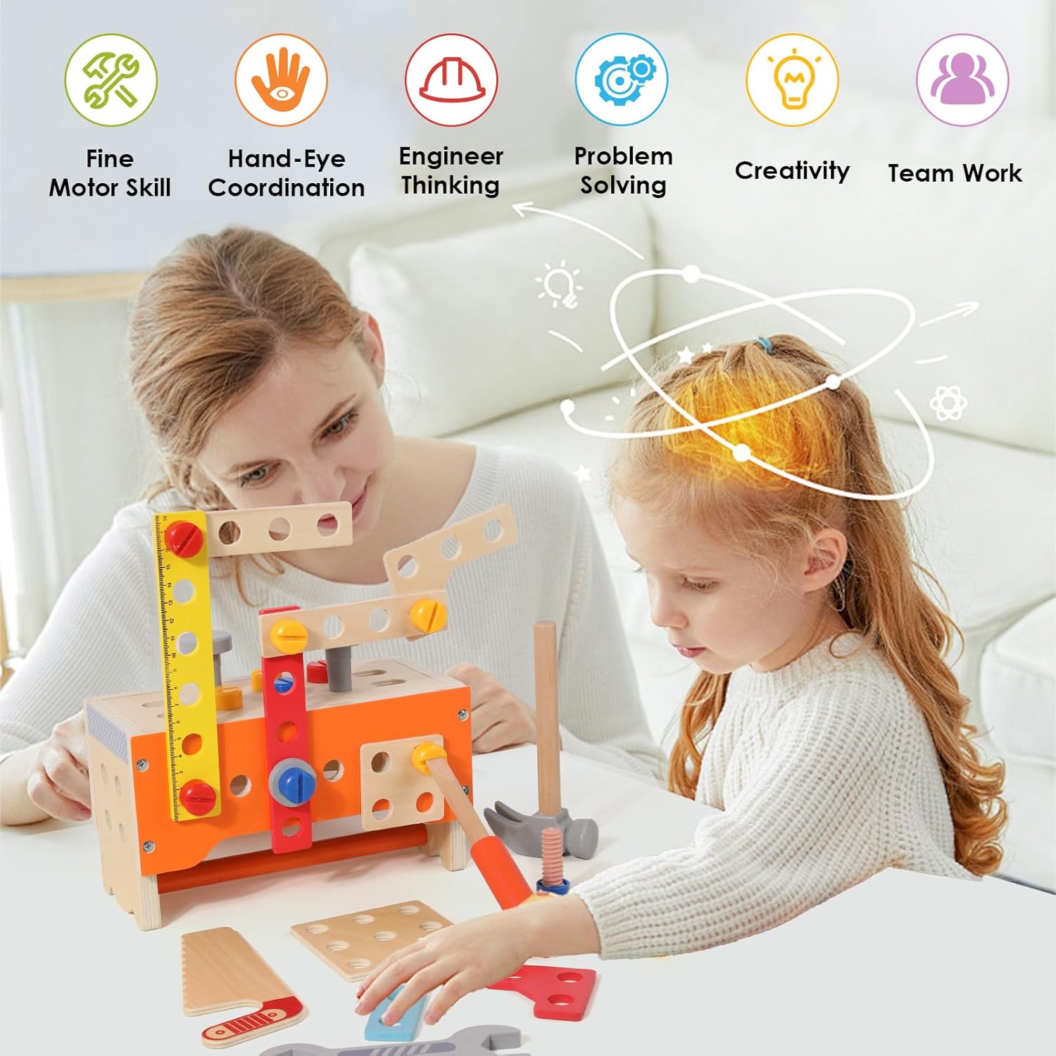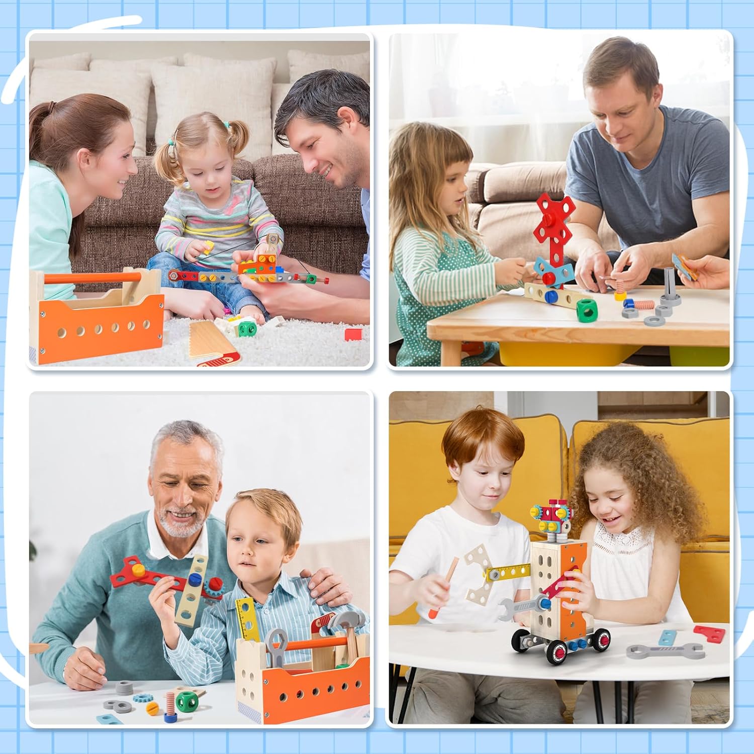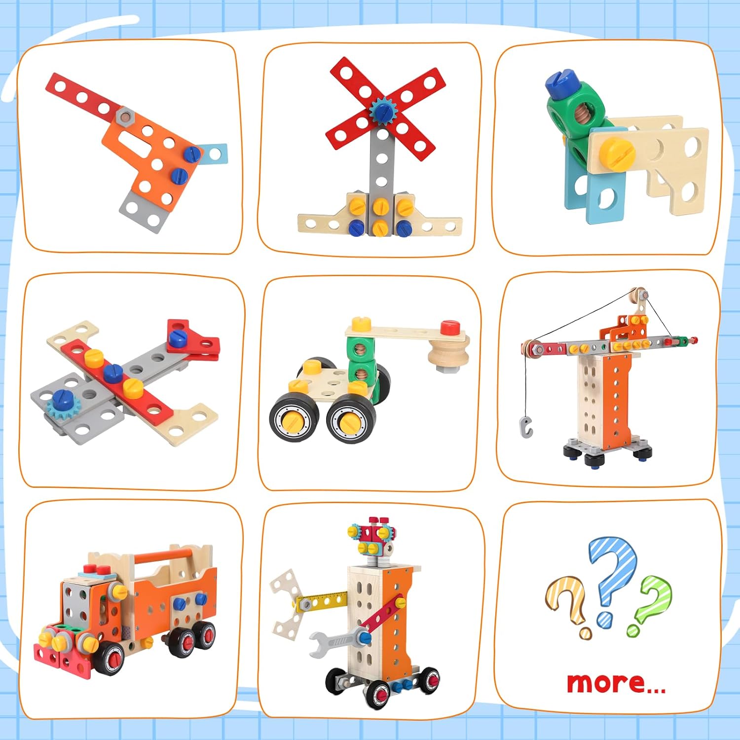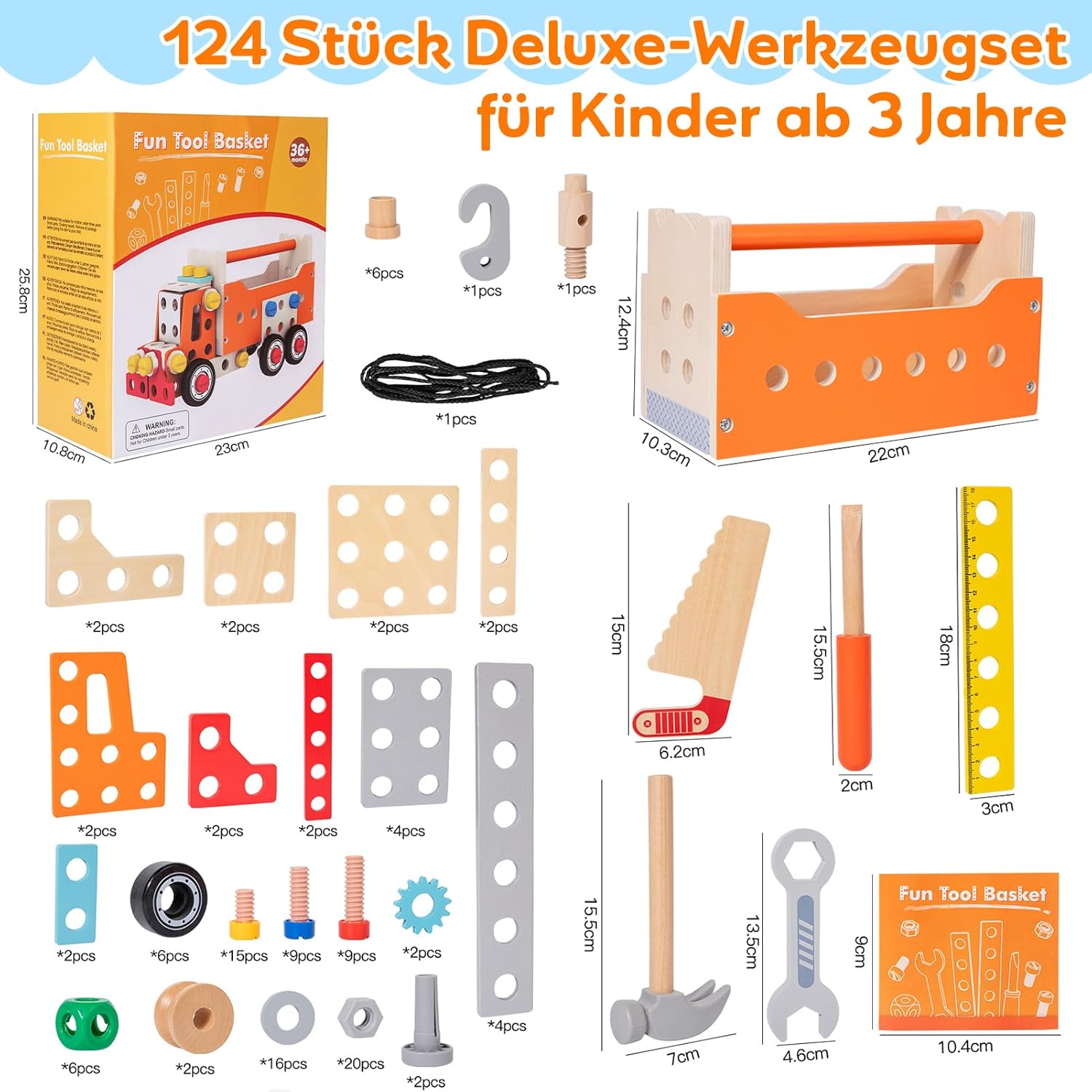 Set deluxe da 124 pezzi: doppio del divertimento: Rispetto alla maggior parte dei prodotti della concorrenza, che contengono solo 30-60 parti, la nostra cassetta degli attrezzi offre impressionanti 124 pezzi! Con più strumenti, viti e componenti, ci sono infinite possibilità di essere creativi e imparare, la scelta perfetta per il gioco fantasioso. Design extra grande per progetti più grandi: la cassetta degli attrezzi in legno spaziosa e robusta offre spazio per più accessori e consente ai bambini di lavorare su costruzioni più grandi e complesse. Realizzato con materiali ecologici e sicuri per i bambini, questo giocattolo unisce resistenza e divertimento. Creatività e versatilità senza pari: costruisci di più con 124 pezzi! Che si tratti di camion, robot o altre costruzioni, questo set di strumenti ispira la creatività e offre ore di divertimento. Perfetto per l'apprendimento STEM e la soluzione pratica dei problemi. Promuove abilità importanti: appositamente progettato per le mani piccole, questo giocattolo aiuta a sviluppare le capacità motorie, la coordinazione occhio-mano e il pensiero logico. Ideale per giocare da soli o in gruppo, un modo divertente per imparare le abilità essenziali. Regalo premium per bambini dai 3 anni in su: sia come regalo di compleanno, sorpresa per Natale o giocattolo educativo, questo set di attrezzi da 124 pezzi è la scelta migliore per bambini dai 3 anni in su. Ricco di funzioni e accessori, garantisce ore di divertimento costruttivo!