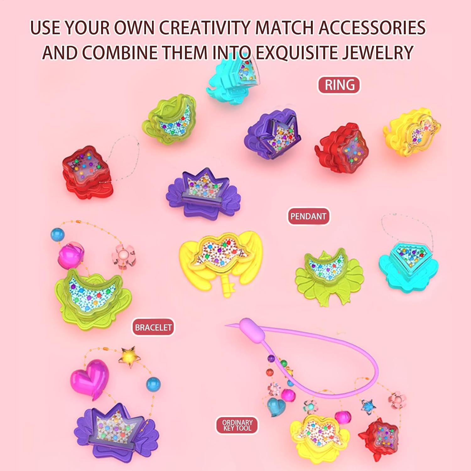Libera l'immaginazione: con collane, braccialetti, anelli e portachiavi abbinati, potranno divertirsi con il fatto a mano. Basta aprire il cassetto, scegliere la forma dello stampo e le perline colorate e premere il pulsante centrale per completare la creazione Potenzia le abilità manipolative: il nostro set da gioco per bambini con gioielli da principessa è progettato per migliorare le capacità motorie, coltivare abilità pratiche ed esercitare la flessibilità delle dita, aiutando il tuo bambino a sviluppare una migliore coordinazione e destrezza Migliora l'attenzione: il nostro set da gioco per bambini Princess Jewelry è un ottimo strumento per migliorare la concentrazione dei bambini, aiutandoli a stare lontani dai prodotti elettronici e coltivando anche la pazienza Sicuro per i bambini ed ecologico: il nostro set da gioco per bambini con gioielli da principessa è realizzato in materiale PP ecologico senza sbavature. Può essere smontato e riciclato, il che lo rende una scelta riutilizzabile e a prova di senso di colpa per un gioco innocuo e lavabile Booster di riconoscimento del colore: ispira i bambini a migliorare le loro capacità artistiche imparando la coordinazione dei colori con il nostro set da gioco per bambini con gioielli da principessa. Questo giocattolo li aiuta anche a sviluppare lo stile personale e la percezione dei colori