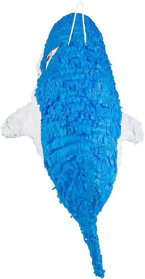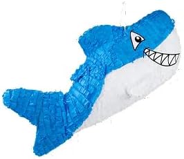 Stai attento squalo. La piñata animale della Boland fa brillare gli occhi degli ospiti Il corpo dell'animale è in cartapesta e ricoperto di carta bianca e blu La piñata misura 27 x 60 cm ed è vuota Per riempirla c'è un foro nascosto nella piñata, questo foro deve essere premuto per riempire la piñata La piñata può essere facilmente appesa utilizzando il pratico passante