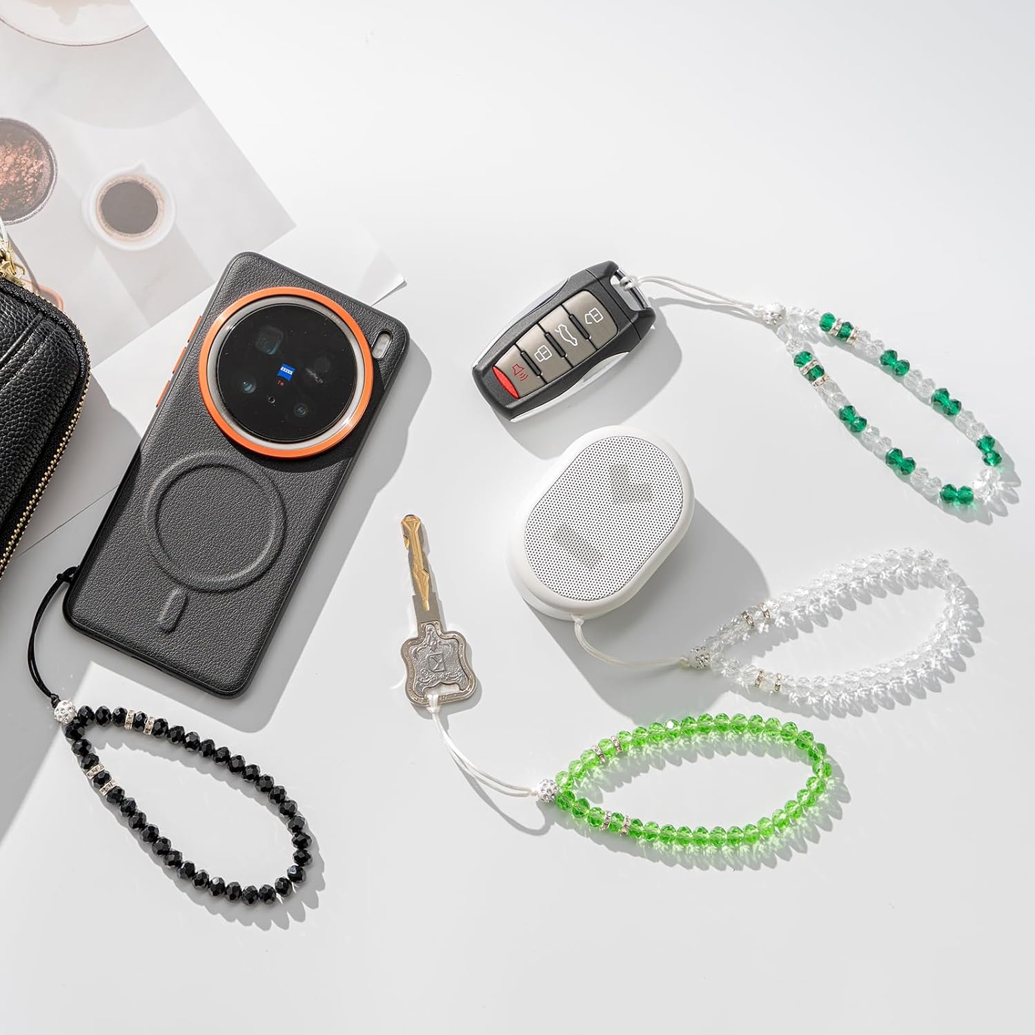 Llevo unos días usándola y la verdad es que me encanta. Es ligera, no molesta nada y queda muy mona colgada del móvil o en la muñeca. Me ha venido genial para no estar todo el rato buscando el teléfono en el bolso, sobre todo cuando salgo a pasear o voy de compras. Además, las perlitas no se han desgastado y siguen brillando como el primer día.