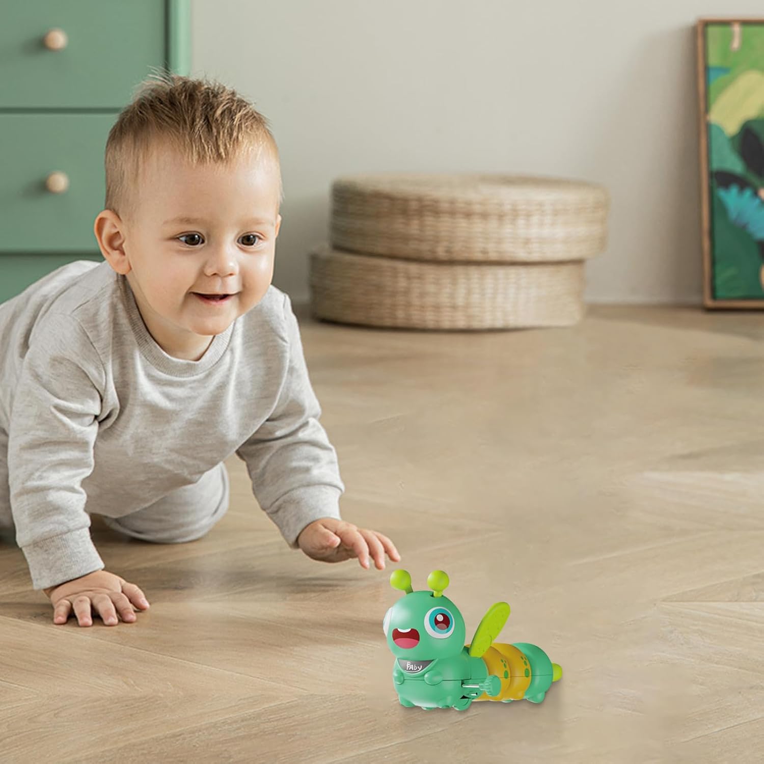 di gioco migliorato: migliora il fattore divertente nel di gioco con il nostro giocattolo strisciante. vibrante. I suoi irresistibili colori vivaci attirano immediatamente l'attenzione del bambino, stimolando la sua percezione dei colori grazie alla sua combinazione di colori vivaci, il che rende un must da giocare come mai prima. e coinvolgente: con il suo aspetto dei cartoni animati e gli angoli arrotondati, questo giocattolo strisciante è progettato a forma di per catturare l'attenzione del tuo bambino senza sforzo. Il design sicuro e divertente incoraggia l'esplorazione, soddisfacendo la curiosità naturale e di suonare il tuo bambino. Usa senza problemi: coinvolgi tuo figlio con questo giocattolo strisciante sia ecologico che semplice da usare; Basta girare il meccanismo di orologeria per un movimento piacevole: non è necessaria una batteria. Incoraggia il gioco attivo: con un movimento accattivante che guida e motiva i bambini striscianti a seguire, questo giocattolo di binario stimola il coordinamento e promuove lo sviluppo delle capacità motorie. Un compagno essenziale per i bambini piccoli che imparano a strisciare ed esplorare il mondo che li circonda. Sostenitore dello sviluppo: promuovere le capacità cognitive, l'osservazione, la coordinazione 'occhio e la muscolare con il nostro giocattolo strisciante stimolante a forma di un . Preparali per il passo futuro.