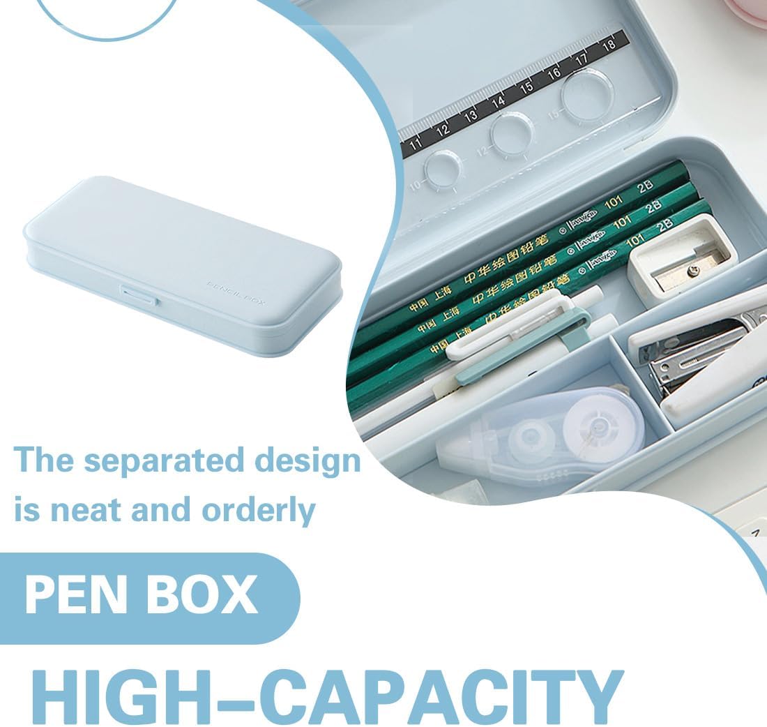 Dimensioni compatte: dimensioni esterne di 20,5 cm x 9,3 cm x 3 cm, compatto e portatile, non occupa spazio, sia che venga collocato nello zaino o sulla scrivania, si adatta facilmente. Design sicuro: design flessibile dell'interruttore, si apre e si chiude dolcemente e saldamente; angoli arrotondati e lisci, per evitare urti e graffi, per proteggere l'uso della sicurezza. Stoccaggio diviso: il design interno di separazione, lo spazio di pianificazione ragionevole, può essere matite, gomme, temperamatite, cucitrici e altri articoli di cancelleria classificazione di stoccaggio, ordinata e ordinata, facile da accedere. Grande capacità di stoccaggio: l'aspetto apparentemente semplice ha un sacco di spazio interno, che può ospitare più penne e cancelleria di uso comune, per soddisfare le esigenze di studio quotidiano e ufficio. Facile da trasportare: materiale leggero e forma adatta, facile da inserire in tutti i tipi di zaini, sia che gli studenti vadano a scuola sia che gli impiegati escano dall'ufficio, possono essere facilmente trasportati.