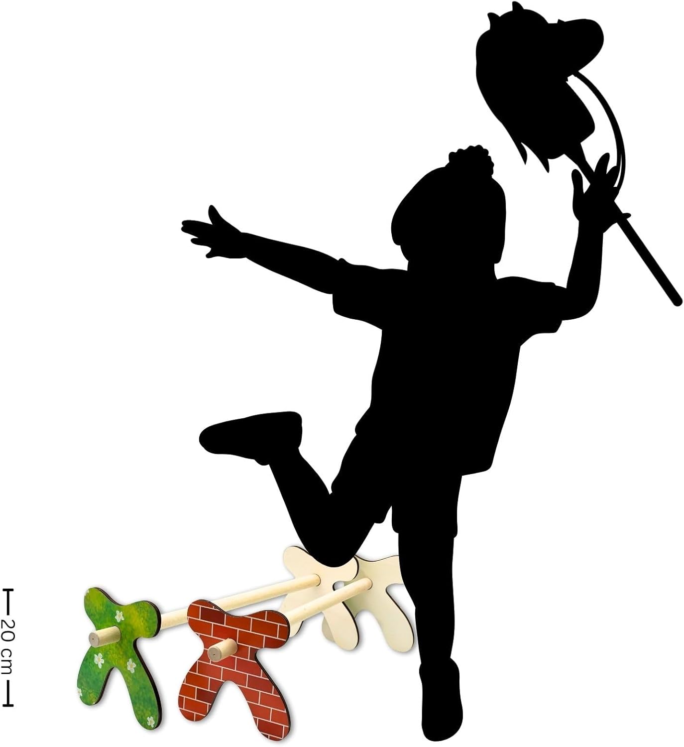 Il percorso perfetto: Cavaletti in legno – divertimento per bambini e cavalli da hobby. Gli ostacoli in legno stabili sono costituiti da un palo di legno inserito in due blocchi. Ciò li rende facili da installare e posizionare a diverse altezze ruotando le parti laterali. Ora i bambini possono allenare le proprie abilità e agilità in modo giocoso. L'addestramento perfetto per cavaliere e cavallo Non c'è quasi un aiuto più versatile nell'addestramento del cavallo del Cavaletti. Saltare o superare questo ostacolo basso favorisce l'attenzione, l'agilità, l'equilibrio e la coordinazione ed è un ottimo allenamento per i cavalli. – Il gioco di ruolo perfetto per cavalieri e cavalli. Due versioni progettate con amore I Cavaletti sono disponibili in due diversi design che rendono il gioco ancora più reale. I pannelli laterali della Cavaletti sono stampati con il motivo del muro di un castello o di una siepe. Ciò significa che i bambini possono creare i propri piccoli tornei, proprio come su un vero percorso. Flessibili in altezza e larghezza I Cavaletti sono progettati per soddisfare le esigenze dei piccoli ciclisti. Di altezza variabile, possono essere regolati a seconda dell'età e delle capacità dei bambini. Questa flessibilità garantisce che sia i principianti che gli appassionati esperti di cavalli da hobby possano divertirsi. La larghezza dell'ostacolo è scelta in modo che i bambini possano saltarlo con facilità, sfidandoli allo stesso tempo a migliorare la loro coordinazione. Imparare giocando - con la tradizione alle spalle L'idea dei Cavaletti nasce originariamente dall'addestramento dei cavalli, ma offrono anche tanto esercizio e divertimento nella cameretta dei bambini o in giardino. Ispirati ai veri ostacoli dei cavalli, questi Cavaletti in legno permettono ai bambini di immergersi nel mondo degli sport equestri e di dare libero sfogo alla propria fantasia giocando.