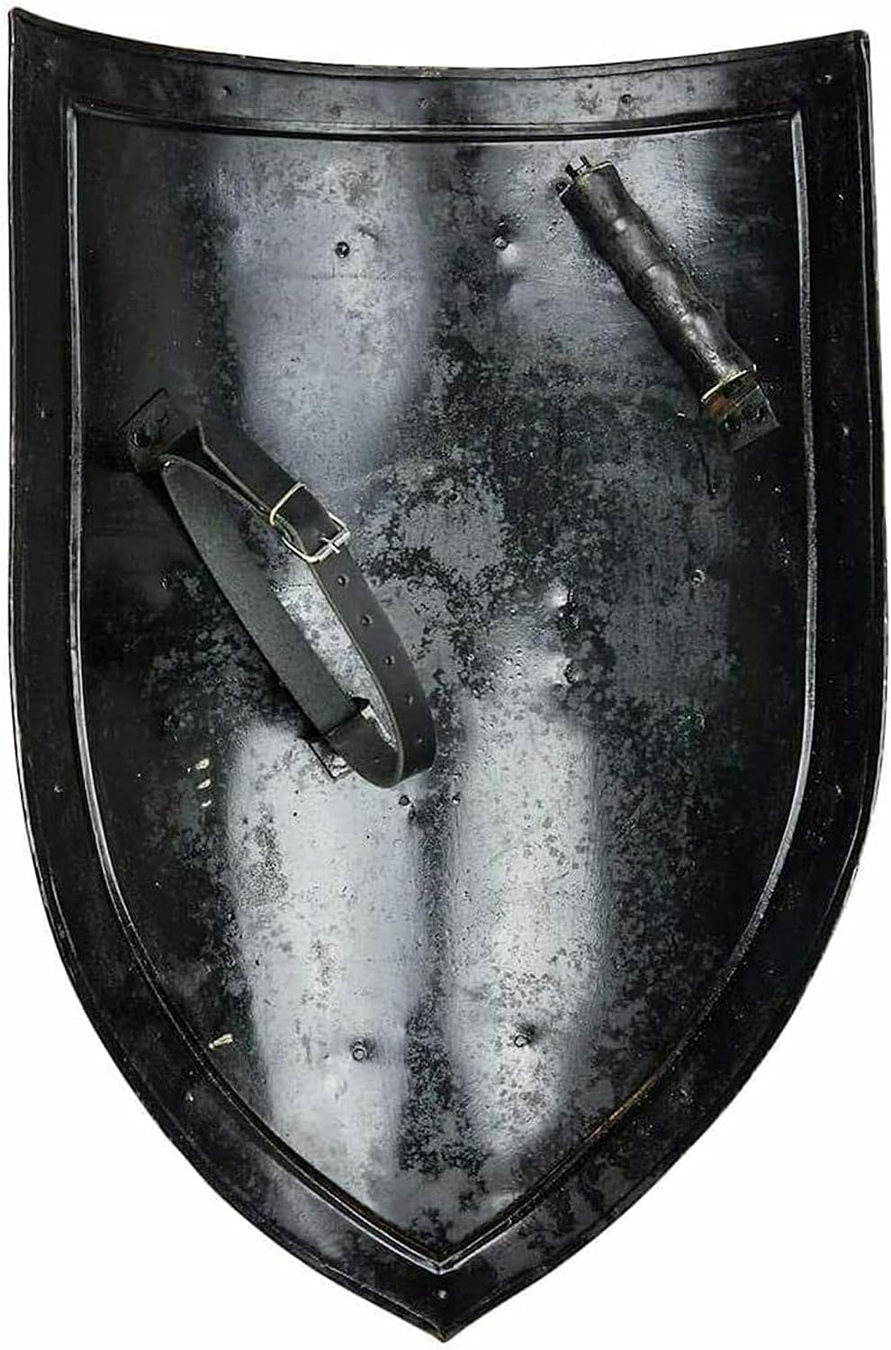 Lo scudo è realizzato in acciaio calibro 18 di alta qualità Altezza: 71 cm Larghezza: 40,6 cm Impugnatura liscia dal retro Finitura come mostrato nella foto Lo scudo è utile per il costume di combattimento Larp di rievocazione storica Lo scudo è splendidamente progettato e ha un bell'aspetto