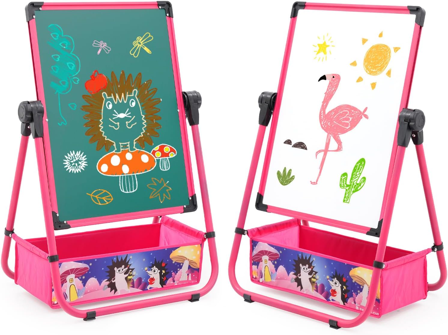 Altezza regolabile: è possibile regolare l'altezza del cavalletto ruotando le manopole su entrambi i lati del telaio. È possibile regolarlo all'altezza più adatta in base all'altezza del bambino. La gamma di regolazione dell'altezza è di 74,9 - 111,8 cm, con una tavola più grande di 47-62 cm, fornendo ai bambini più spazio per disegnare. Rotazione a 360: il cavalletto può ruotare di 360 gradi. I bambini possono regolare l'angolo della tavola in base alle loro esigenze e usarlo come tavolo da disegno. Design su entrambi i lati: la lavagna cancellabile a secco e la lavagna sono perfette per sviluppare le capacità motorie dei bambini e la corretta presa della matita. Il miglior regalo per i bambini: questo cavalletto è un ottimo regalo per i bambini. Può aiutare a stimolare l'immaginazione e la creatività e anche consentire ai bambini di esprimere le loro idee attraverso disegni, schizzi e scarabocchi. Facile installazione: il cavalletto per bambini non richiede alcuna installazione. Dopo aver installato il sacchetto di stoffa, è possibile utilizzarlo immediatamente. È possibile assemblare la borsa di stoffa secondo le istruzioni fornite. Il design della borsa di stoffa con elementi pianeti può ispirare ancora di più l'immaginazione dei bambini e le abilità di disegno Nota: si prega di strappare la pellicola protettiva prima se la superficie della tavola non è facile da pulire, è possibile utilizzare un panno umido per pulirla