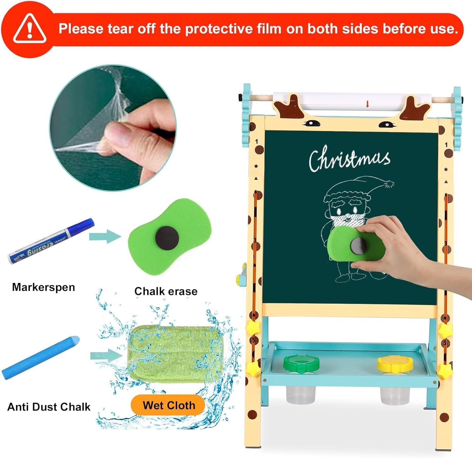 Cavalletto per bambini 3 in 1: questo cavalletto in legno ha una lavagna su un lato e una lavagna bianca sull'altro, che può essere utilizzata anche tirando il rotolo di carta superiore. Diversi metodi di pittura danno ai bambini più spazio per giocare. Fornire una varietà di metodi di pittura per stimolare la creatività e l'immaginazione dei bambini Altezza regolabile: questo cavalletto per bambini può essere regolato tra 81 e 110 cm, adatto per bambini dai 3 agli 8 anni ed è molto adatto per le loro esigenze di crescita in altezza. Il cavalletto per bambini è molto adatto per bambini, ragazzi, ragazze per imparare, praticare abilità, coordinare occhi e mani e coltivare l'arte dei bambini. È un buon regalo per accompagnare la crescita dei bambini Accessori ricchi: la lavagna è progettata come un simpatico cervo con colori vivaci e carini. Ricchi accessori: 3 fibbie a ventosa, 6 adesivi con animali dei cartoni animati, 2 tazze di vernice, 1 gomma per lavagna, 1 gomma per lavagna, 26 lettere inglesi, 9 numeri e diversi animali e altri accessori ricchi, lascia che i bambini si godano felicemente il tempo di creazione Cavalletto educativo e divertente: questo set di cavalletti in legno offre una grande opportunità per i bambini piccoli di iniziare l'istruzione di base della pittura, della grafica e del riconoscimento dei colori e ispirarli a esplorare il mondo. Questo cavalletto per bambini è adatto per due bambini o genitori. I genitori possono sviluppare relazioni attraverso divertenti interazioni genitore-figlio Facile da montare e piegare: seguire le istruzioni semplici e dettagliate (lingua italiana non garantita), è possibile assemblare il cavalletto molto direttamente. Quando il cavalletto per bambini non è in uso, puoi piegarlo e appoggiarlo al muro o metterlo sotto il divano senza occupare troppo spazio. Nota: Se avete ancora domande su questo prodotto, vi preghiamo di contattarmi via e-mail e farò del mio meglio per fornirvi una soluzione