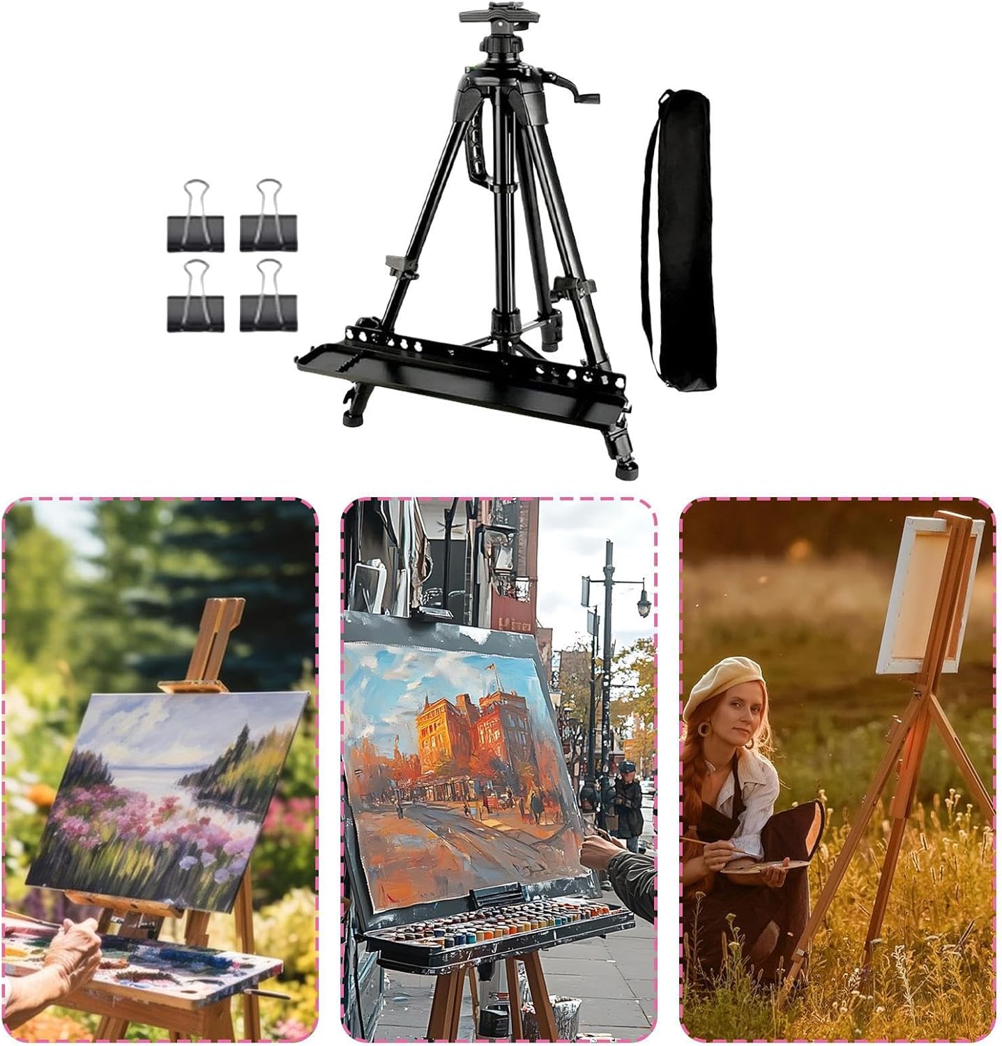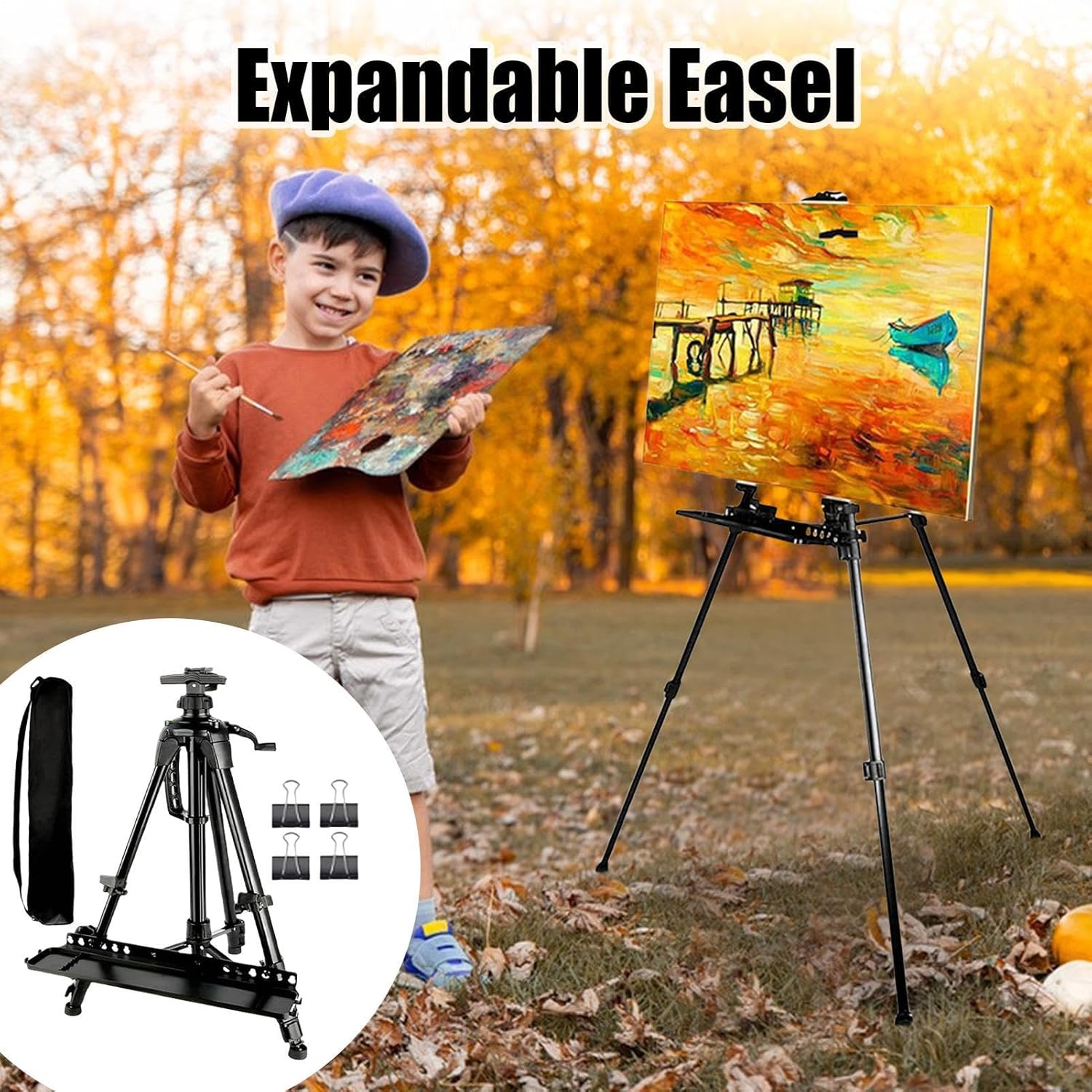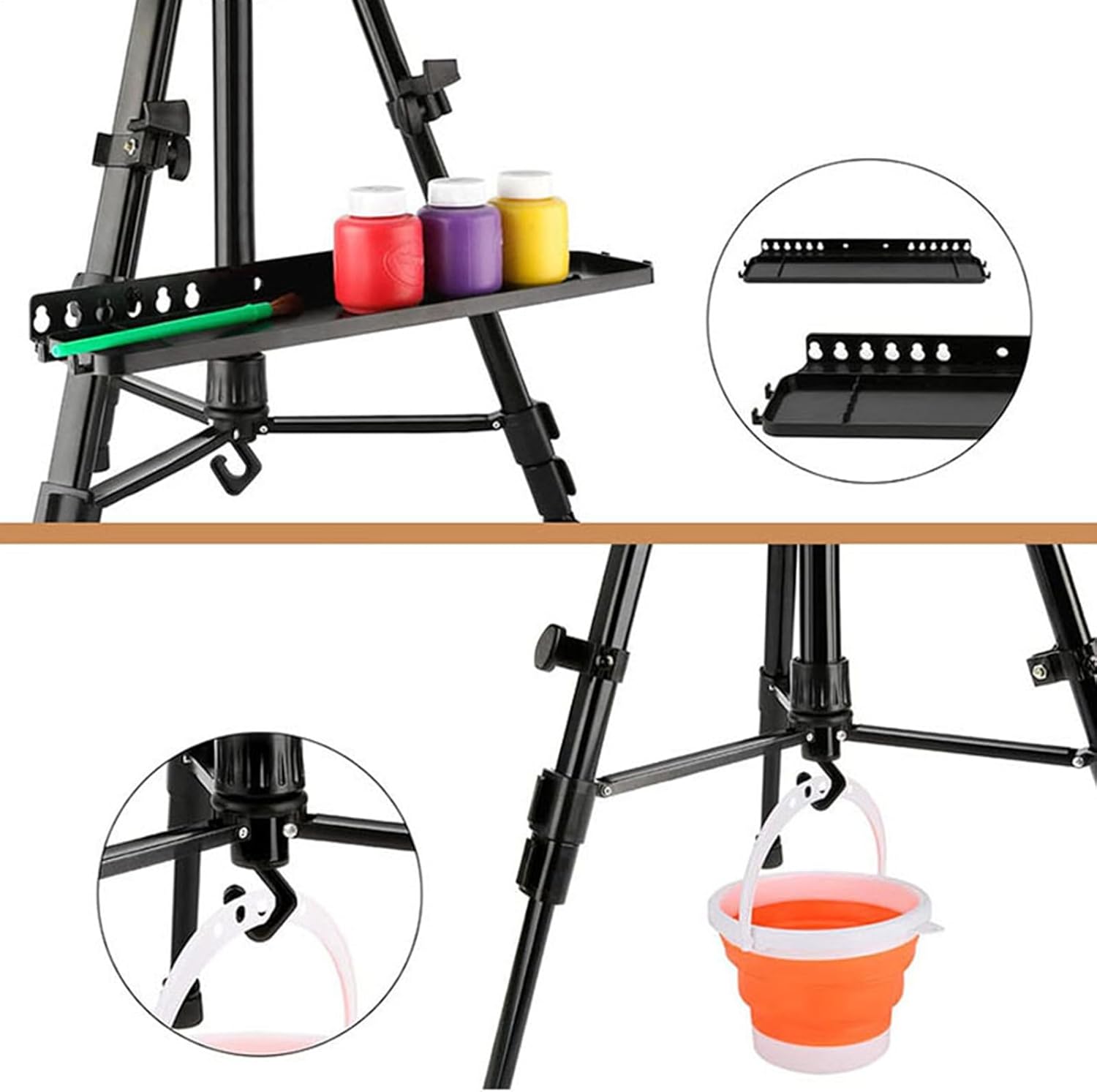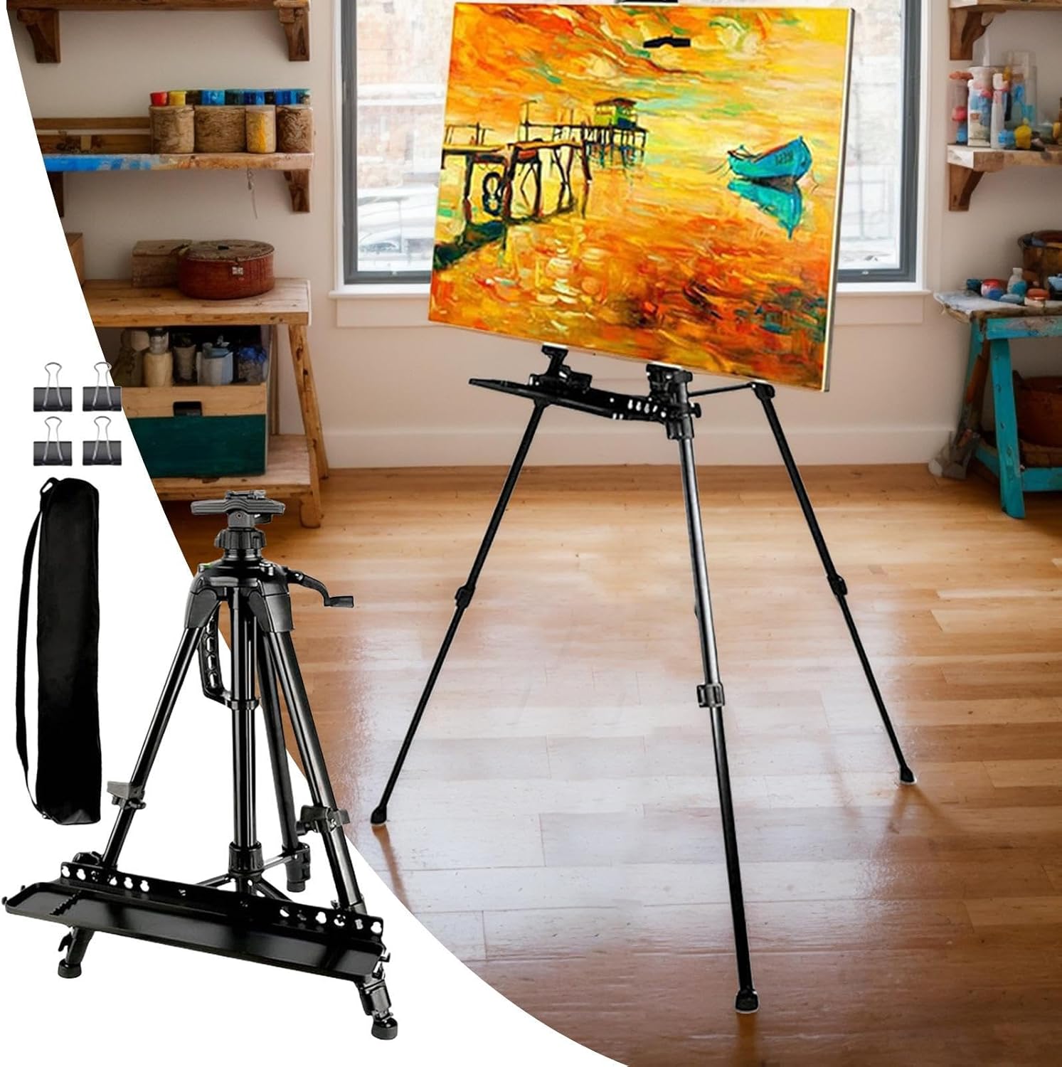 Pratico layout: Con il suo vassoio posizionato strategicamente e lo spazio sufficiente per riporre tubi di vernice e pennelli, questo cavalletto ottimizza l'organizzazione della postazione di lavoro Comfort creativo: il design ergonomico con gamma di regolazione 52-160 cm elimina la tensione muscolare. Gli artisti possono mantenere una postura naturale per ore grazie alla regolazione micrometrica dell'angolo della tela. Intelligente: meccanismo di trasformazione senza attrezzi con blocco sicuro. Consente di passare istantaneamente tra modalità officina (altezza regolabile 110-150 cm) e modalità di trasporto, con impugnatura ergonomica integrata per viaggi artistici. Stabilità professionale: struttura portante in lega resistente con ancoraggio triangolare, appositamente studiata per mantenere le tele e il materiale di verniciatura in posizione sicura senza oscillazioni. Adattabilità: struttura modulabile adatta a progetti artistici personali e professionali, facilita l'esposizione in spazi pubblici come laboratori privati, mentre funge da supporto educativo per corsi di creazione visiva