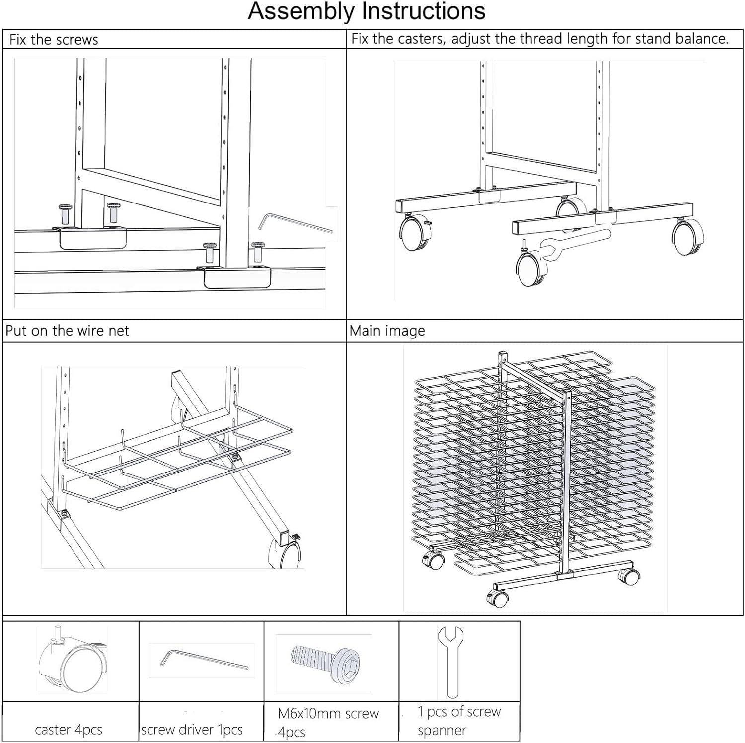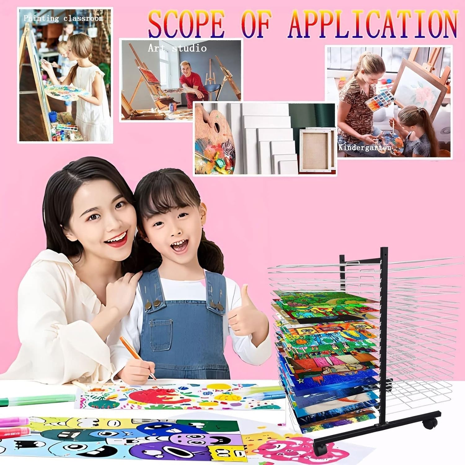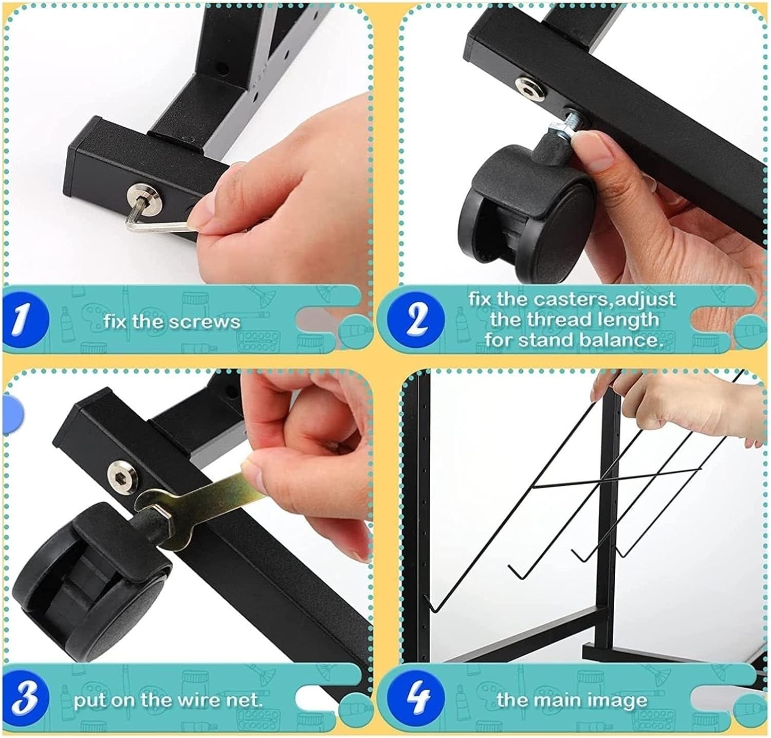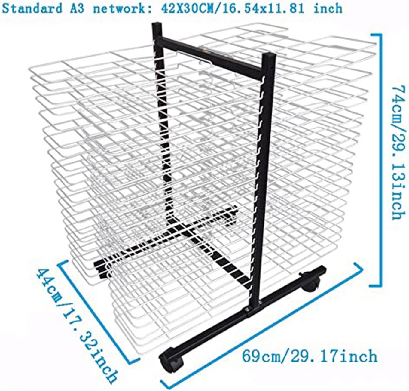 Materiale robusto: questo stendibiancheria for aule scolastiche ha una robusta struttura in metallo saldato, la struttura in acciaio può sopportare un uso intenso, con una capacità di carico massima di 12 libbre, il nostro stendibiancheria in metallo può aiutarti a mantenere i tuoi dipinti, schizzi e altri progetti artistici ordinati e organizzati! Stenditoio for opere d'arte: è facile asciugare le opere d'arte e occupa meno spazio. Lo stendino for opere d'arte ha 40 ripiani, ogni strato misura 42x30CM (16,53 x 11,81) pollici e la sezione trasversale può facilmente posizionare immagini piccole e grandi for l'asciugatura. Facile asciugatura delle opere d'arte: il nostro stendino for opere d'arte in metallo di alta qualità assicura un flusso d'aria ottimale for un'asciugatura rapida e pura, preservando l'integrità dell'opera Facile da montare: questo organizer for opere d'arte include istruzioni di montaggio e viti. Può essere installato in pochi minuti. for la pulizia, basta passare un panno umido o un qualsiasi detergente standard. Supporto mobile salvaspazio: questo cavalletto con ruote girevoli può soddisfare le esigenze di qualsiasi artista in fatto di pannelli. 4 ruote for un facile spostamento. I freni delle ruote lo mantengono fermo. Supporto for l'asciugatura artistica a scala a maglie cave for aule, ideale for l'uso con pannelli dipinti a umido; pannelli non finiti, appena intonacati e recentemente lucidati.