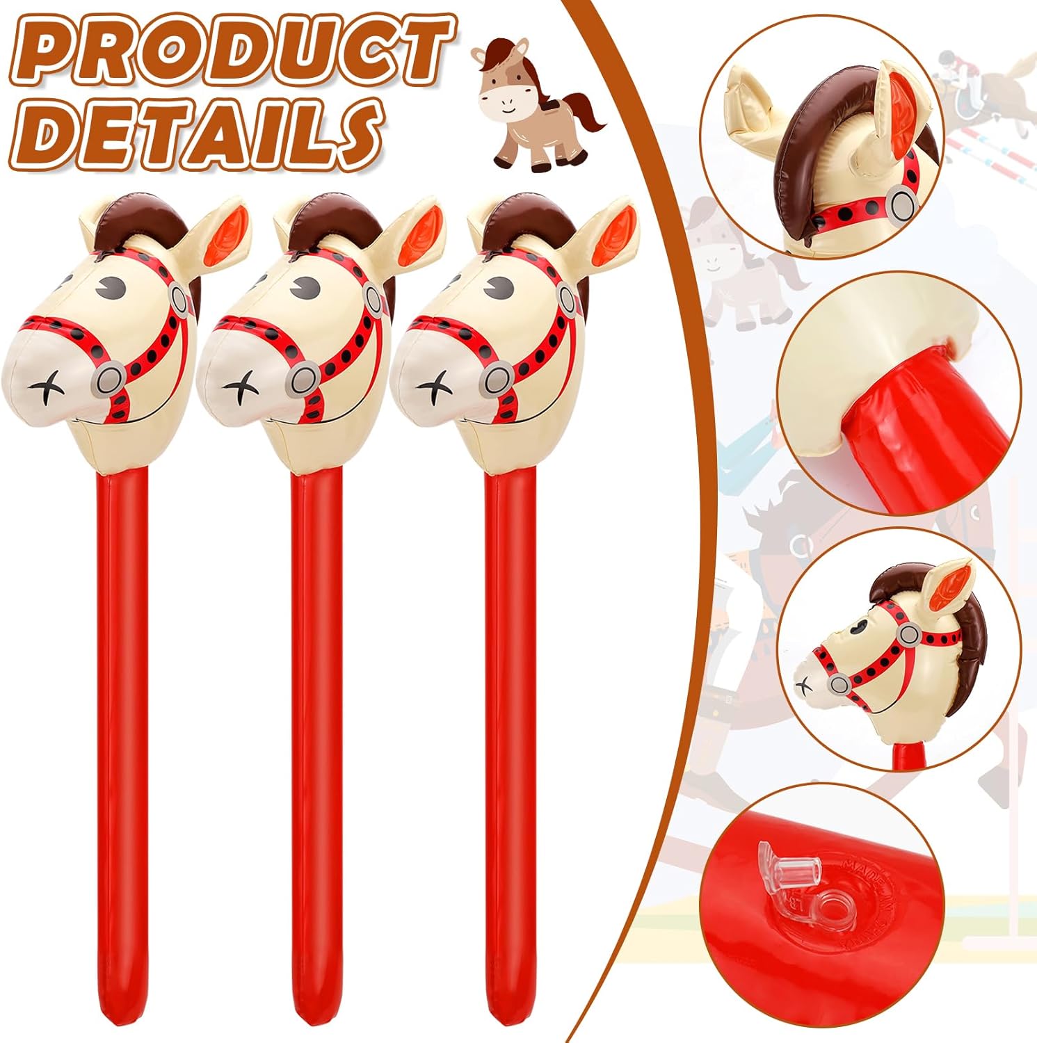 Materiale di alta qualità: le nostre aste gonfiabili per cavalli sono realizzate in PVC di alta qualità, sicure e inodori, morbide al tatto e durevoli, stampa sicura e buona per i bambini. Facile da usare: il cavallo gonfiabile dispone di connettori di gonfiaggio e sgonfiaggio di alta qualità, che possono essere utilizzati e riutilizzati in modo semplice e comodo per gonfiare e sgonfiare. Interessanti oggetti di scena - Questo cavallo gonfiabile è realistico, puoi cavalcarlo come un vero cavallo. Molto adatto per spettacoli comici con motivi di cavalli, decorazioni per feste e oggetti di scena con motivi di cavallo. Contenuto della confezione: riceverete 3 bastoncini gonfiabili per cavalli, la dimensione dopo il gonfiaggio è di 95 x 26 cm, per feste come decorazione, il divertimento di giochi e oggetti di scena. Ampiamente utilizzato: il cavallo gonfiabile è ideale come accessorio per feste a tema, carnevale, Natale, costumi da ballo, Halloween o come accessorio per cabine fotografiche.