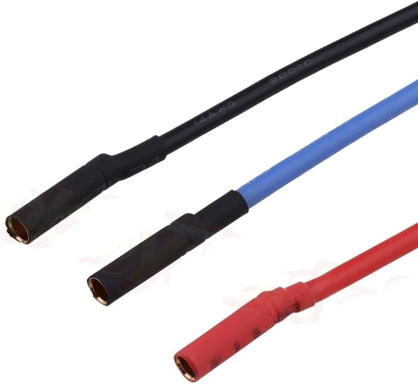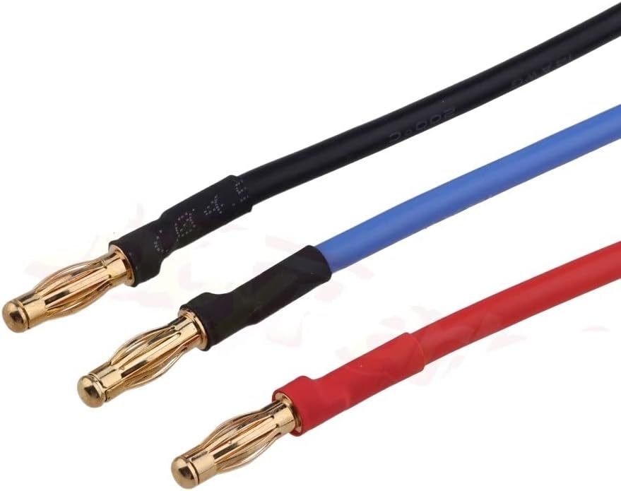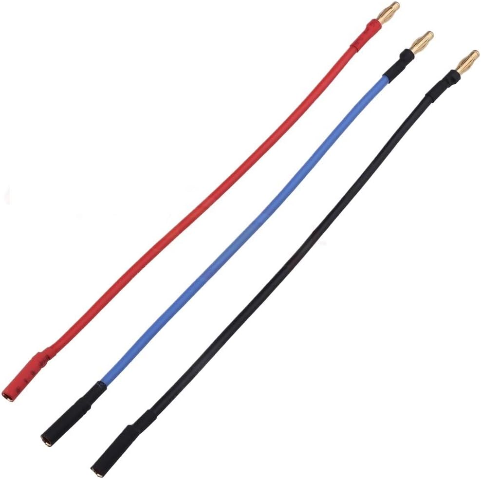 Articolo: cavo di prolunga con spina a banana. Il pacchetto include: 3 pezzi (1 per ogni colore) Lunghezza del cavo: ca. 200 mm/7,87"; 14 Awg. Materiale: filo in silicone calibro 14, conduttore in rame conduttore in stagno. Bassa resistenza. Compatibile con: ESC motore brushless Rc