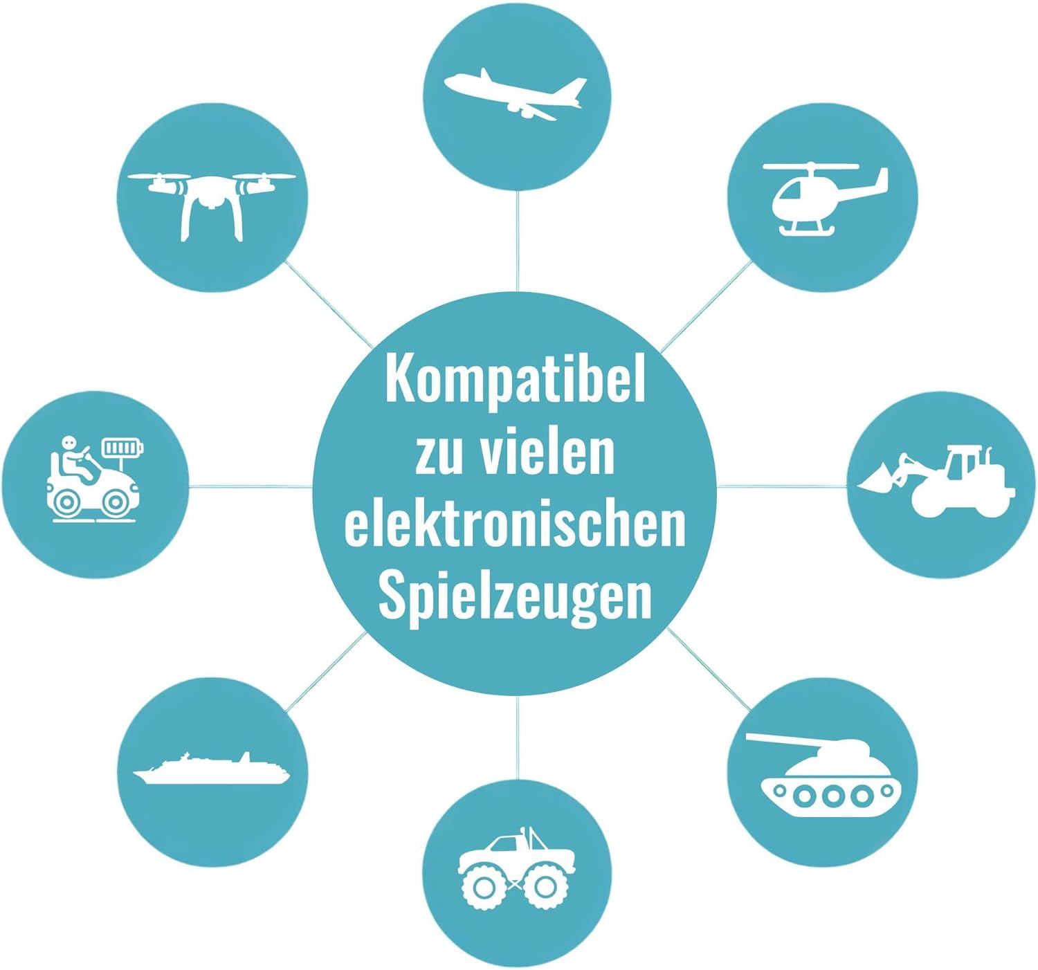 Compatibilità versatile: supporta batterie agli ioni di litio e NiMH per numerosi dispositivi: dall'elettronica, al modellismo RC e agli elettrodomestici. Perfetto come caricabatterie universale per varie applicazioni. Veloce e a risparmio energetico: carica le batterie in modo rapido ed efficiente senza sovraccaricarle. Prolunga la durata grazie alla ricarica delicata e garantisce prestazioni a lungo termine. Sicuro con display LED: la protezione da sovraccarico integrata protegge le batterie da eventuali danni. Il LED integrato indica lo stato di carica, mentre il robusto cavo di alimentazione garantisce un trasferimento affidabile dell'energia. Durevole e di alta qualità: lavorazione robusta per un utilizzo sicuro e affidabile. I materiali durevoli garantiscono un'elevata durata: ideali per giocattoli, dispositivi elettronici e casalinghi. Compatto e potente: design leggero e salvaspazio per gli spostamenti. Fornisce un'alimentazione stabile e una ricarica efficiente. Si prega di verificare in anticipo la compatibilità della batteria. Compatibile anche con giocattoli, auto telecomandate RC, veicoli, escavatori, passeggini, carri armati, aeroplani, droni, quadricotteri, barche, monster truck, cingolati, auto da drift, camion, camion, elicotteri, veicoli anfibi, auto da corsa, dinosauri, action figure, kit fai da te ed elettrici. Dispositivi come illuminazione, telefoni, utensili, lampade da tavolo, aspirapolvere portatili, robot aspirapolvere, ecc. Compatibile anche con Pmgud, Fivejoy, MidiVix, Mojino, Kizeefun, Haiboxing, CMJ, DeeRC, Pengbu, SupKonXi, Simrex, Perbabe, RC Tech, MaxTronic, Monster Jam, Hot Bee, Thedttoy, Kiytarboo, Yabtf, Carson, Dexinco, Snookids, Joytreky, Amewi, Korffe, Plegble, Avialogic, Wipkviey, Mold King, Mostop, Revell, s-idee, Henakmsl e altri. Compatibile anche con Hawks Work, Kinsam, Fremego, Vevor, efaso, Volantex-RC, Bezgar, Joyin, Tomoroy, Nexbox, Vatos, Tecnock, Ayiquty, Nauotk, Hosim, WL-Toys, HSP Himoto, UDI-RC, Huina, Xinlehong, Shadowhawk, Weilax, G8DS e altri. Modelli.