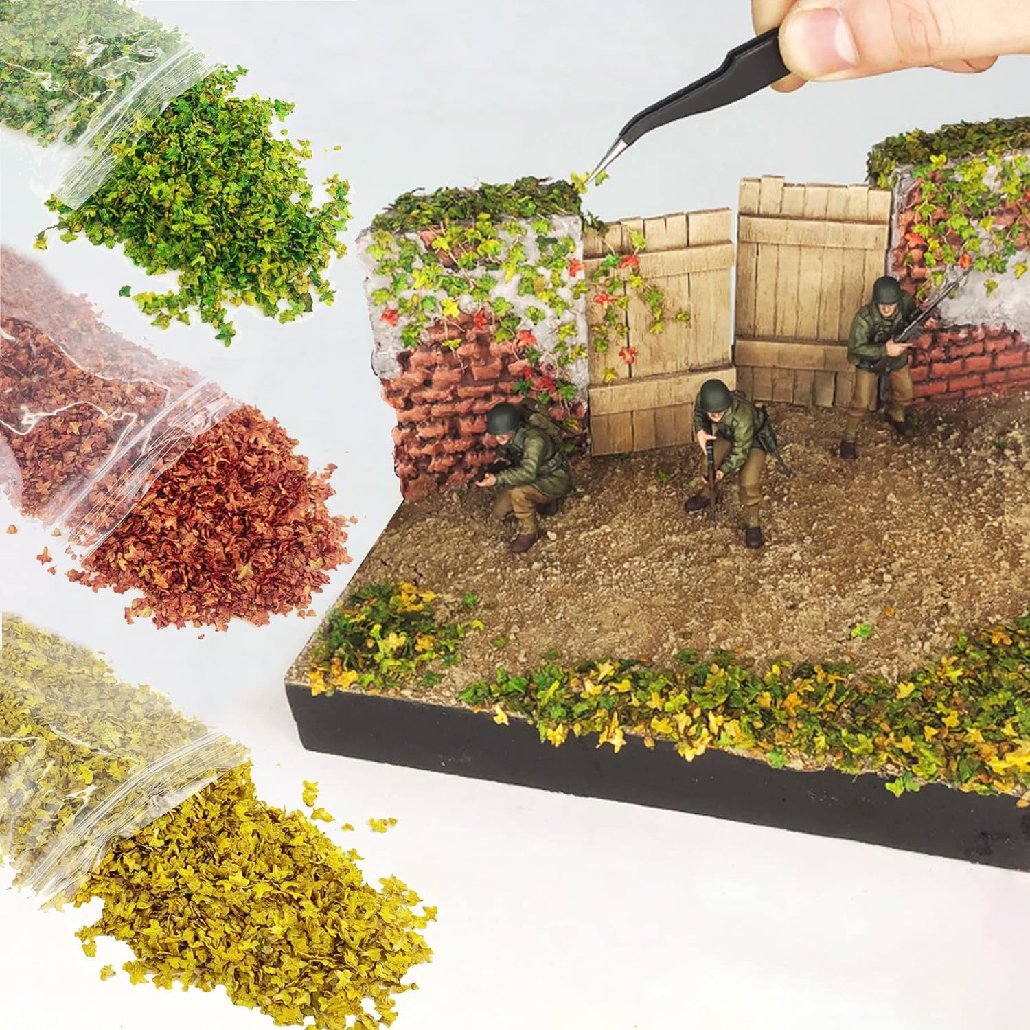 Cosa otterrai: 4 fogli realistici a colori, 33 ml per colore. Foglie realistiche, adatte per produrre più scene, quattro colori di foglie possono essere abbinati a diverse stagioni per rendere il tuo paesaggio architettonico più realistico. Fai da te il tuo paesaggio: questo set è adatto per scenari paesaggistici più naturali fai-da-te, puoi fare il tuo fai-da-te come preferisci. È utile per il tuo scopo e rende il tuo layout o diorama più autentico. Facile da usare: applica la colla (non inclusa) sulla base del tuo modello paesaggistico, quindi posizionalo nella posizione desiderata. Ampiamente usato: perfetto per modellismo ferroviario, diorama, modello di edificio, layout di scena, decorazioni paesaggistiche, decorazioni paesaggistiche per giardini fatati, ecc.