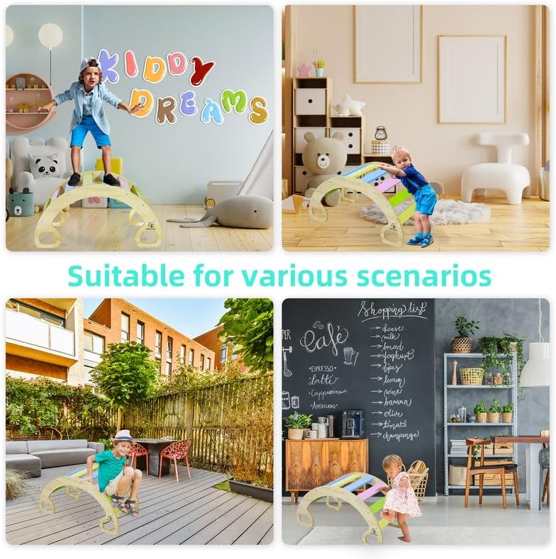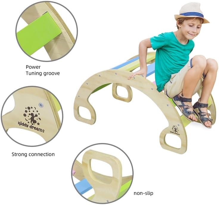Telaio da arrampicata curvo e sicuro per i bambini: Struttura da arrampicata sicura per bambini: Angolo ridotto, maggiore sicurezza. Portata massima di 150 kg. ECOLOGICO E SALUTARE: Ecologico e salutare: Legno di pino, vernice ecologica. Protegge la salute del tuo bambino. Esercizio fisico: Movimento fisico: Le strutture da arrampicata promuovono la salute e lo sviluppo dei bambini attraverso l'arrampicata attiva. Interazione sociale: Interazione sociale: Più bambini possono utilizzare le strutture da arrampicata insieme, rinforzando le loro competenze sociali e il lavoro di squadra. Regalo perfetto: Il set di giocattoli da arrampicata in legno è ideale per i bambini a partire da 1 anno. Favorisce lo sviluppo dell'equilibrio, della coordinazione e del coraggio attraverso il gioco, supporta la crescita globale e sviluppa importanti abilità sociali – un regalo fantastico per lo sviluppo della prima infanzia.