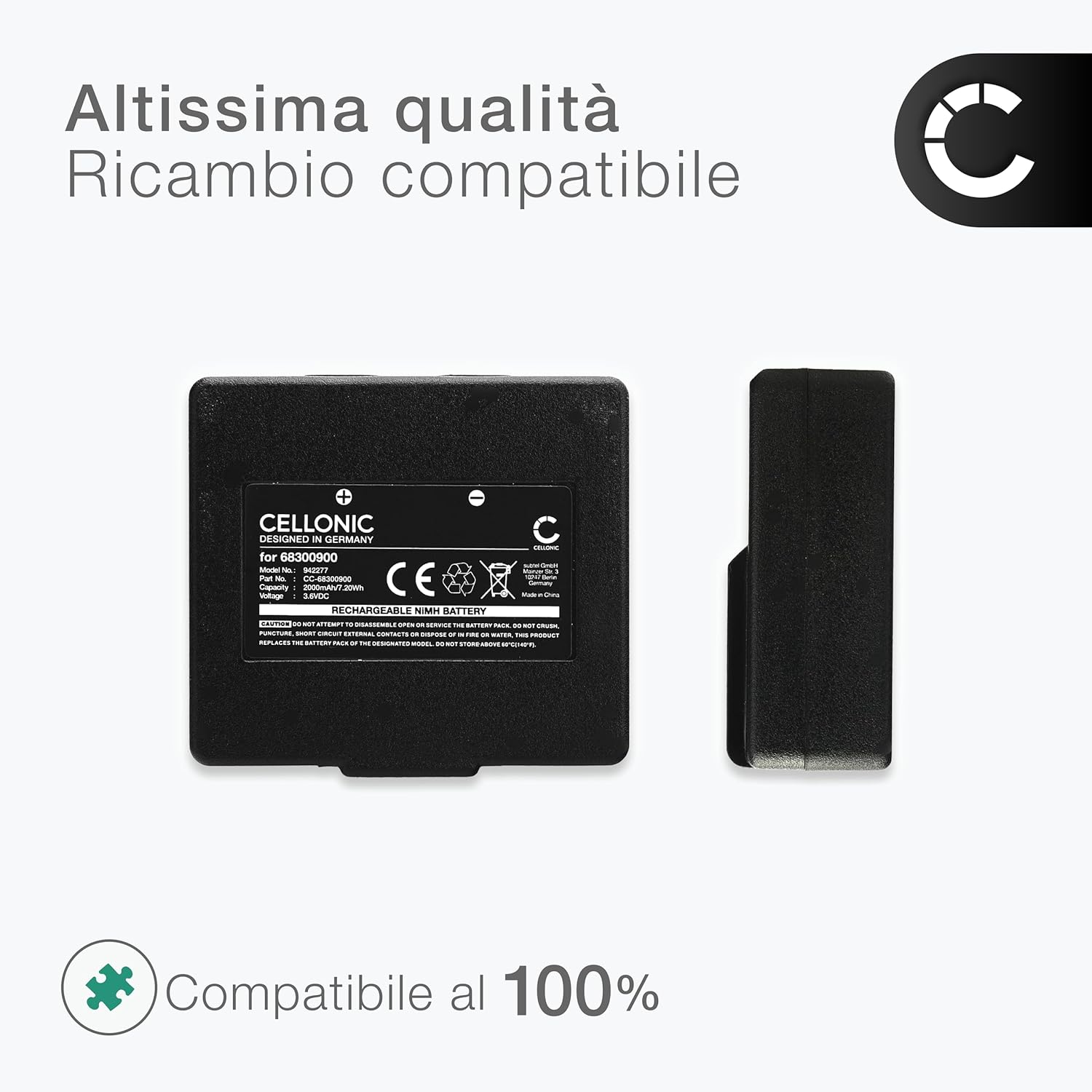 Perfetta compatibilità & adattabilità – compatibile con Hetronic 68300900, 68301000, 68300600, Potain P-63418-95, compatibile con Abitron Mini. Consulta l'elenco completo nella nostra scheda prodotto. Prestazioni premium & lunga durata – Batteria NiMH di alta qualità con numerosi cicli di ricarica e bassa autoscarica per un utilizzo prolungato. Alta capacità & alimentazione affidabile – 2000mAh di energia efficiente e duratura per prolungare la vita del dispositivo. Ricambio affidabile con ottime prestazioni. Progettata per affidabilità – Testata secondo rigorosi standard tedeschi per garantire durata ed efficienza. Alternativa conveniente con prestazioni pari o superiori all’originale. Scelta intelligente & conveniente – Sostituire la batteria prolunga la vita del dispositivo e riduce i tempi di inattività. Alternativa affidabile per evitare i costi di sostituzione completa.