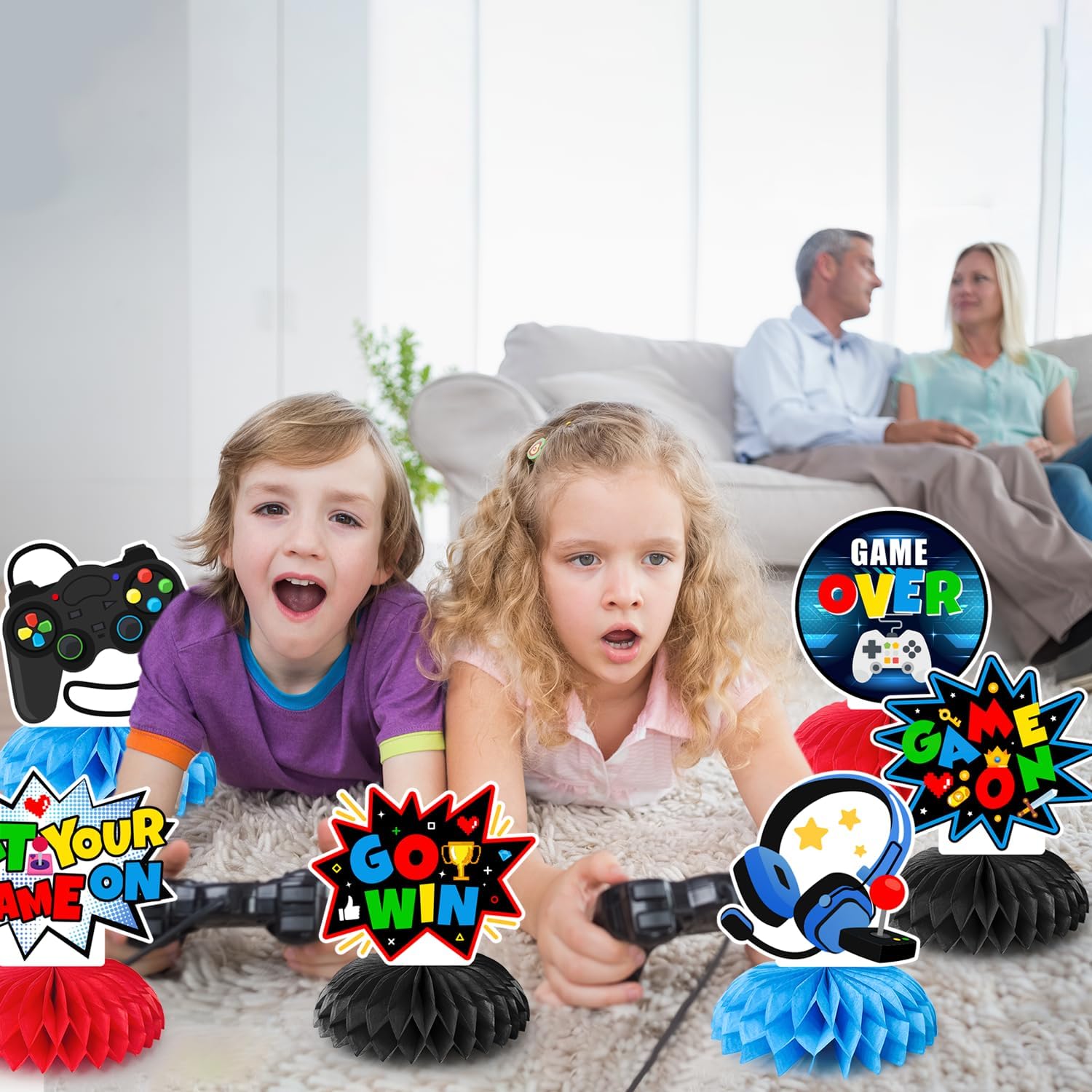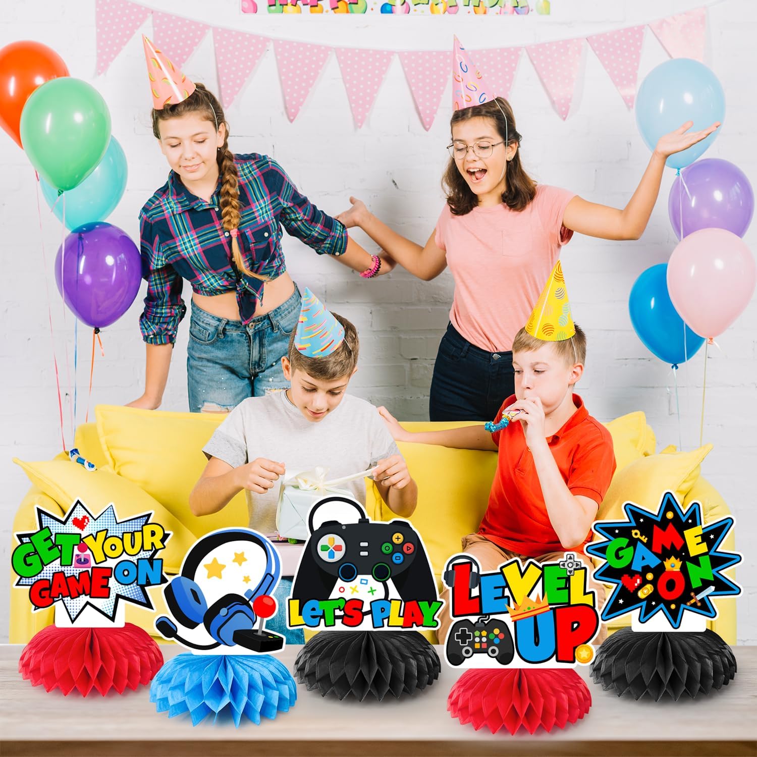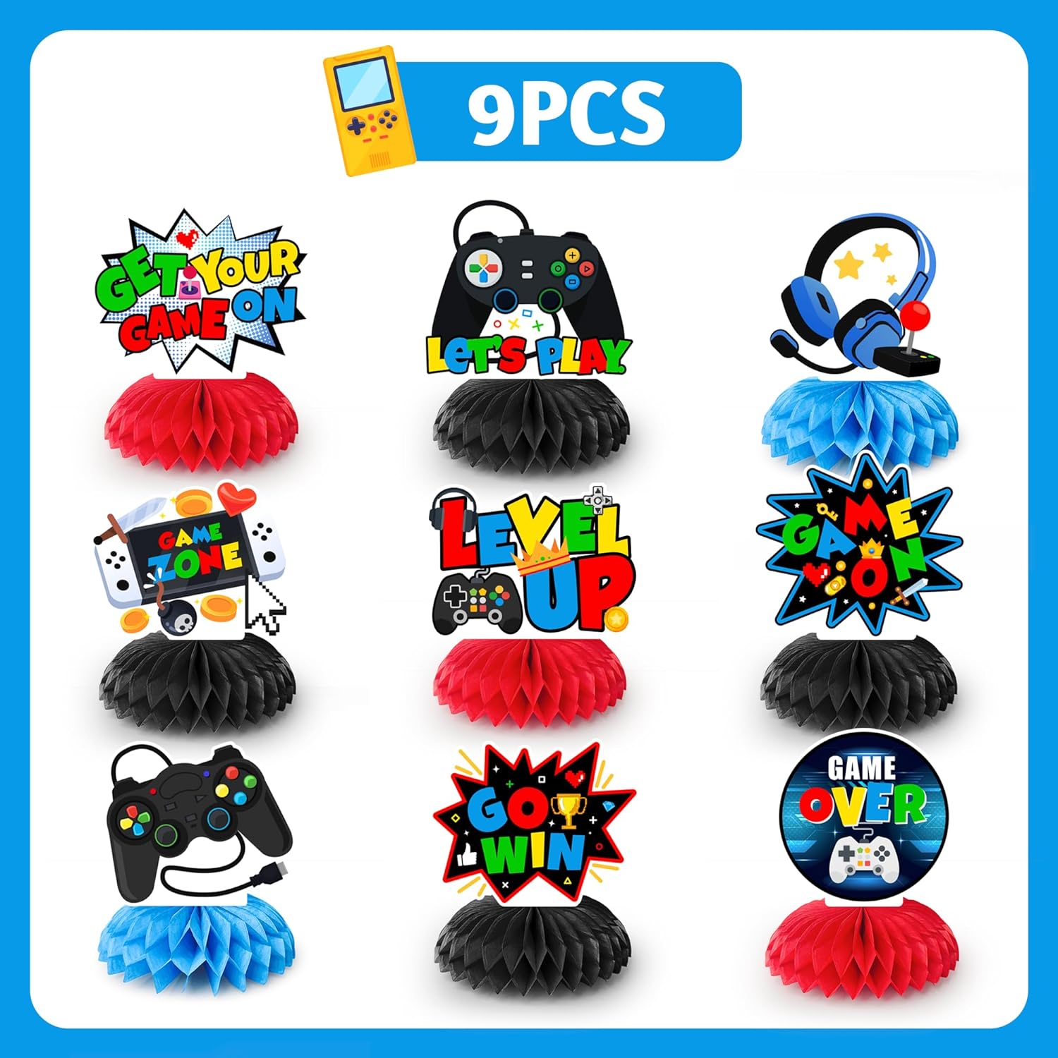 Centrotavola a nido d'ape per videogiochi: questo set centrotavola da tavolo a nido d'ape per videogiochi include 2 centrotavola a nido d'ape per feste di compleanno blu gioco, 3 centrotavola rosso per feste da gioco per tavoli e 4 giochi neri su centrotavola da tavolo. Design unico: le nostre decorazioni per feste per videogiochi a nido d'ape sono piene di elementi per videogiochi, come controller di gioco, cuffie, console di gioco, ecc., che possono aggiungere più fascino e divertimento alla tua festa di videogiochi. Alta qualità: i centrotavola a nido d'ape per videogiochi nelle decorazioni di compleanno dei videogiochi sono realizzati con materiali di alta qualità, con una buona durata, stabilità e supporto, che possono decorare la tua stanza e la tua festa di videogiochi per un lungo periodo di tempo. Facile e veloce: 1. Staccare le decorazioni per feste di gioco adesivi a nido d'ape; 2. Attaccare la palla a nido d'ape all'area fissa sulla carta; 3. Ripeti dall'altro lato della carta; 4. Posizionare le decorazioni per feste di compleanno da gioco a nido d'ape sul tavolo della festa del videogioco. L'arredamento per feste con videogiochi non è mai stato così facile! Ampia applicazione: queste decorazioni per feste di compleanno per videogiochi sono perfette per feste di videogiochi, feste a tema giochi, feste di compleanno per giocatori, competizioni sportive elettroniche e altre occasioni speciali.