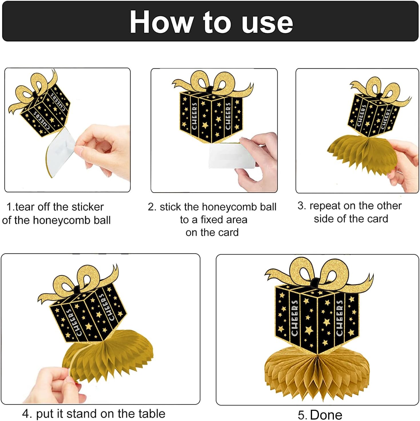 Materiale: Fatto di carta di alta qualità, stampa trasparente, leggera e durevole, non facile da sbiadire Si otterrà: Contiene 9 diversi cartoni a modello e 9 nidi di miele di carta, come champagne, torta di compleanno, scatola regalo, stelle, palloncini, corone, ecc Facile da usare: Ogni base a nido d'ape viene fornita con un adesivo, devi solo staccare l'adesivo e attaccarlo all'area fissa su un lato della carta, quindi espandere la palla a nido d'ape e infine attaccarlo all'altro lato della carta Regalo Celebrazione: Con la sua unica decorazione in nido d'ape nero e oro, crea una festa di compleanno significativa per il compleanno. Ogni decorazione di tavolo mostra un modello unico, progettato per creare ricordi indimenticabili per voi Decorazione di compleanno: questo è un elemento di decorazione a tema di compleanno perfetto, perfetto per decorare tavoli da pranzo, pareti, soffitti, torte, ecc., aggiungendo un'atmosfera gioiosa