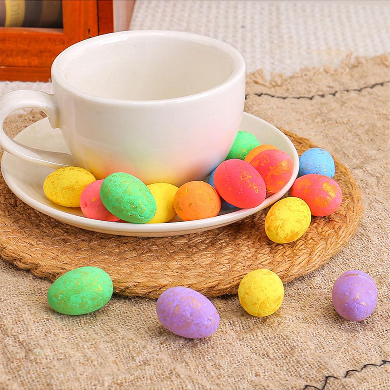 Ravviva la celebrazione del tuo festival con il nostro colorato set di uova maculate con uova maculate colorate che aggiungeranno fascino festivo a qualsiasi riunione. Realizzate in schiuma, leggere, di buona durata, queste piccole uova colorate sono adatte a varie esigenze decorative. Molto adatto per famiglie, adulti, bambini o scuola, asilo e organizzatori di eventi. Questo colorato set di decorazioni per uova è per gli utenti che desiderano aggiungere un tocco di divertimento alla festa. Ampiamente usato per feste di festival, riempitivi di cestini, riunioni di famiglia, decorazioni in classe e artigianato. Queste piccole uova di schiuma sono un'aggiunta essenziale a varie occasioni festive. Con queste accattivanti decorazioni per le feste assicurerai celebrazioni indimenticabili e gioiose per tutti i soggetti coinvolti.