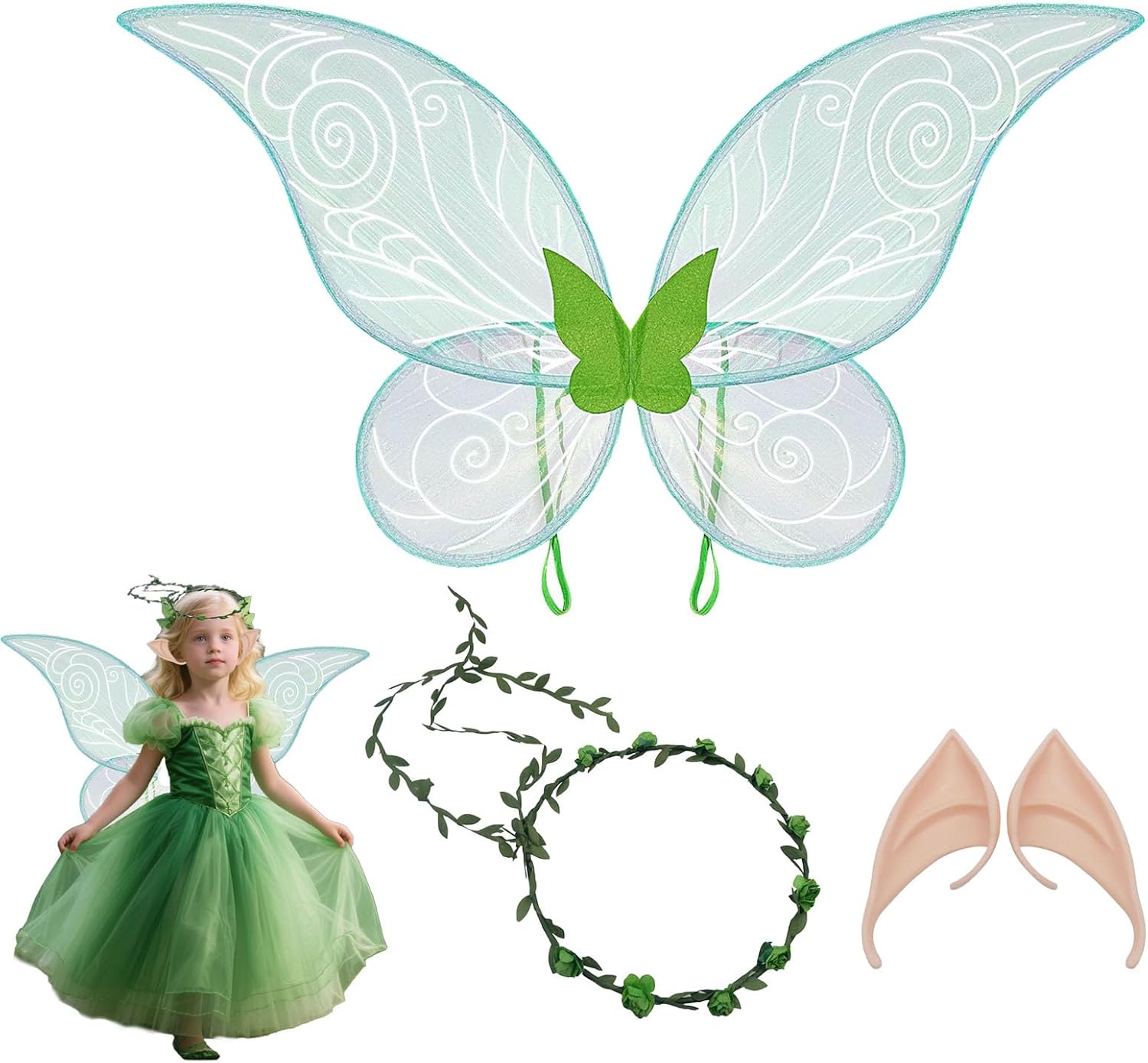 Costume da principessa con ali di farfalla, cinturino elastico, fascia per capelli, cinturino elastico consente un completo migliore per la maggior parte dei bambini. Tessuto confortevole, delicato sulla pelle, morbido, leggero da indossare, facile da spostare, cosplay e danza, comodo da indossare. Contenuto della confezione: 1 ala da fata o fascia per capelli con 1 fascia per capelli. Ampie applicazioni: festival all'aperto, feste a tema fatato, costumi di Halloween, oggetti di scena fotografici, regali di compleanno per ragazze, spettacoli di danza, cosplay di principesse, abbigliamento quotidiano, spettacoli scolastici. Meraviglioso, la migliore sorpresa per le bambine in occasione di compleanni, feste di Halloween o altri festival speciali.