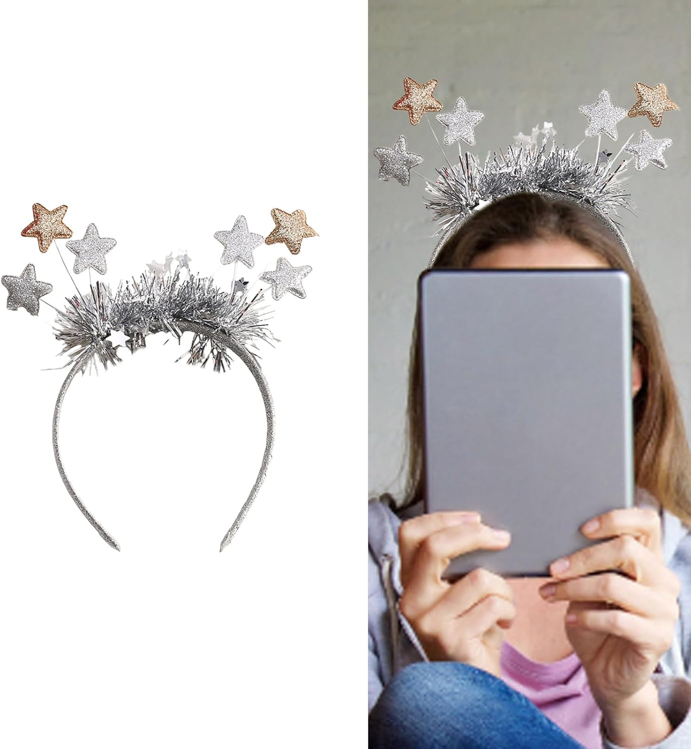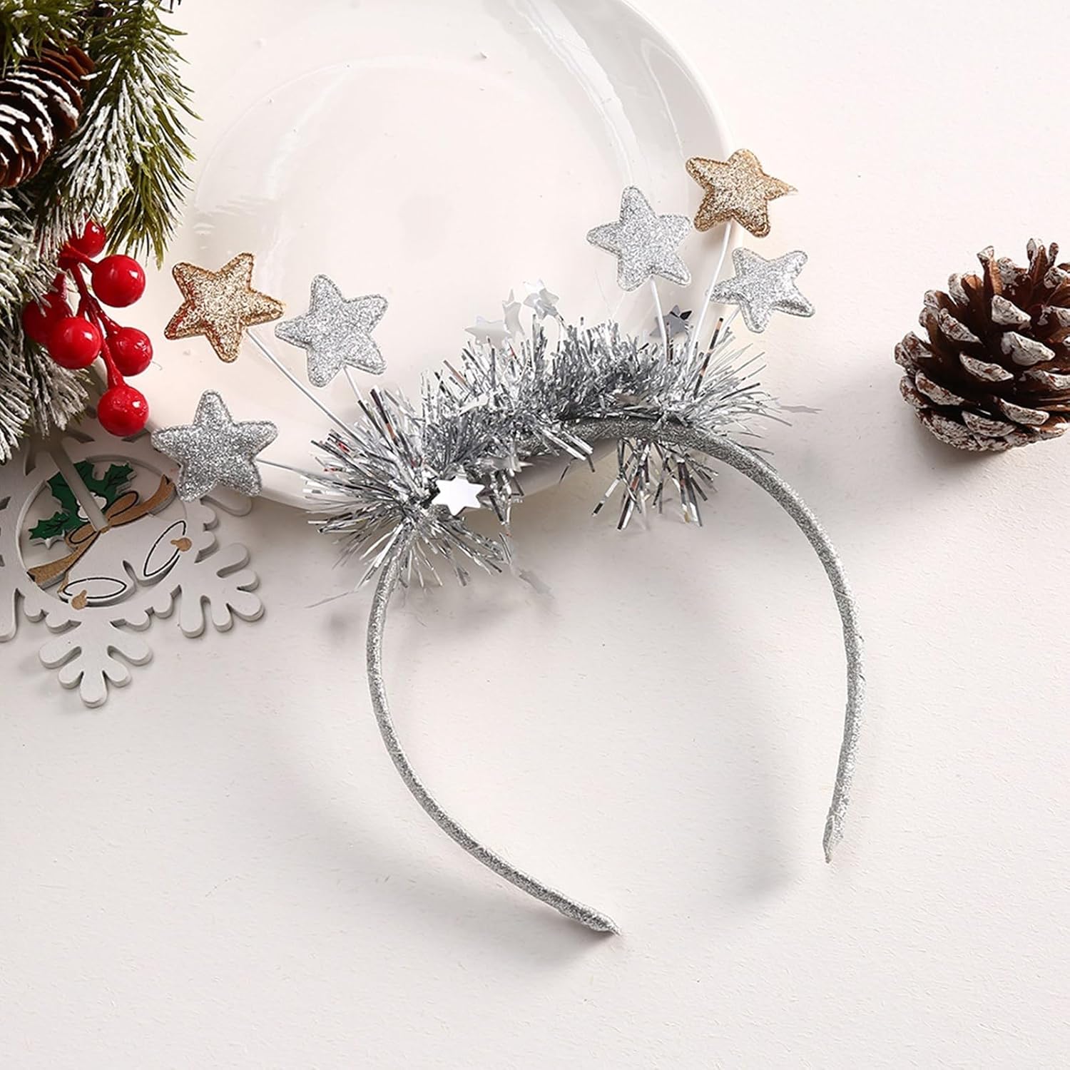 Star Capodanno Natale copricapo fascia foto puntelli festa cosplay costumi danza festa fascia Natale Caratteristiche: Pronto per andare alle feste di Natale? Indossa la nostra fantastica fascia! Adulti e bambini possono indossarli, e queste fasce per capelli sono perfette per le feste. Le nostre fasce sono ideali per feste di Natale, feste di Natale e altre occasioni a cui parteciperai. Ottimo anche per riempire sacchetti regalo, feste, omaggi e premi di gioco. Che tu sia adulto o che ti stia preparando per i tuoi bambini, i frequentatori di feste di tutte le età saranno intrattenuti Con questa accattivante fascia, questi attireranno sicuramente la testa degli altri! Specifiche tecniche: Componente: Tessuto Circonferenza della testa: ca. 55-60 cm. Colore: Oro/Argento Quantità: 1 pezzo. La confezione include: 1 fascia natalizia. Nota: 1. Si prega di considerare un margine di errore di 1-2 cm dovuto alla misurazione manuale. 2. A causa delle differenze tra i diversi monitor, l'immagine potrebbe non riflettere esattamente il colore reale.